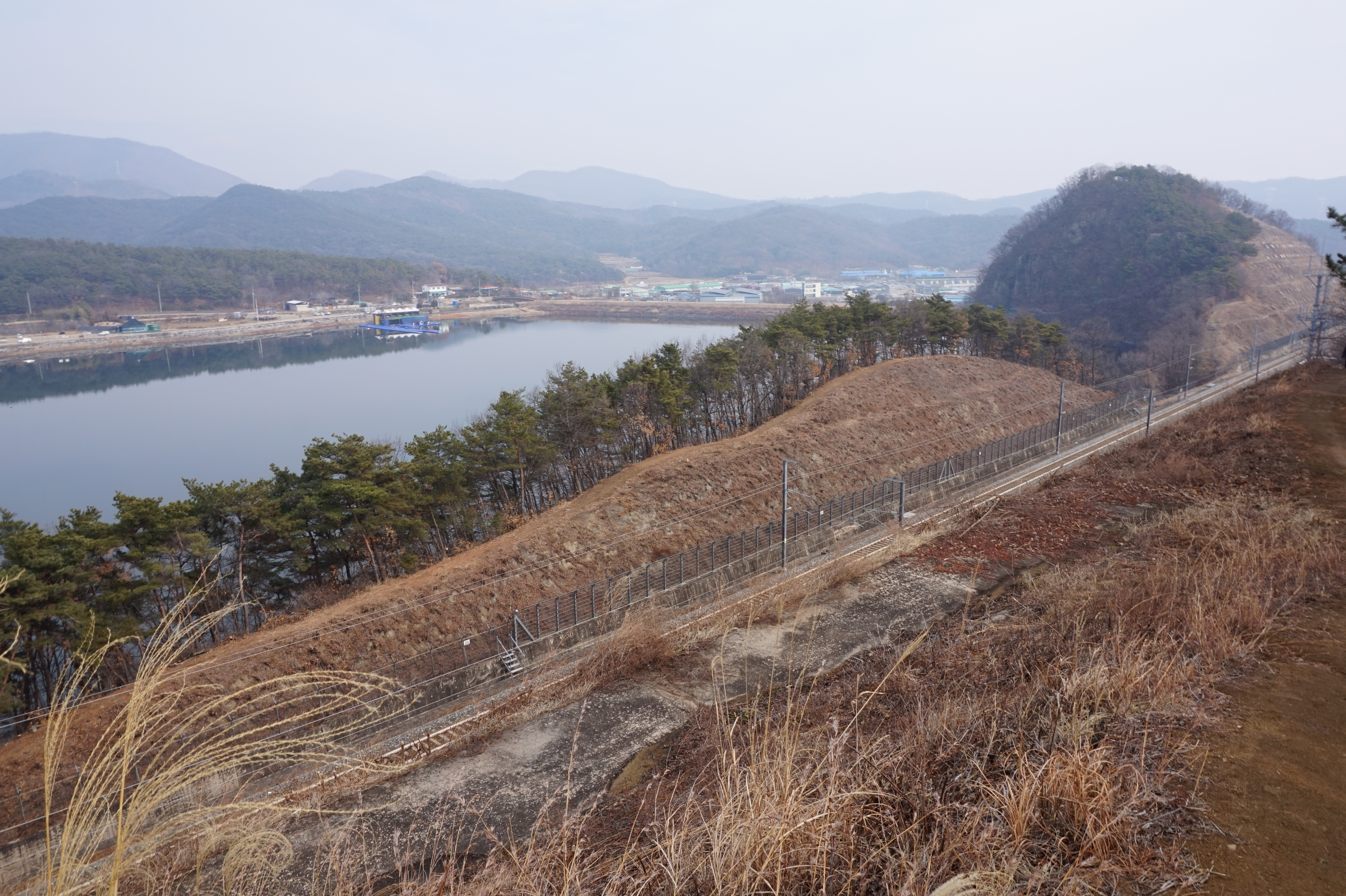 좌측에 지천지가 보이고 밑에는 경부고속철도입니다