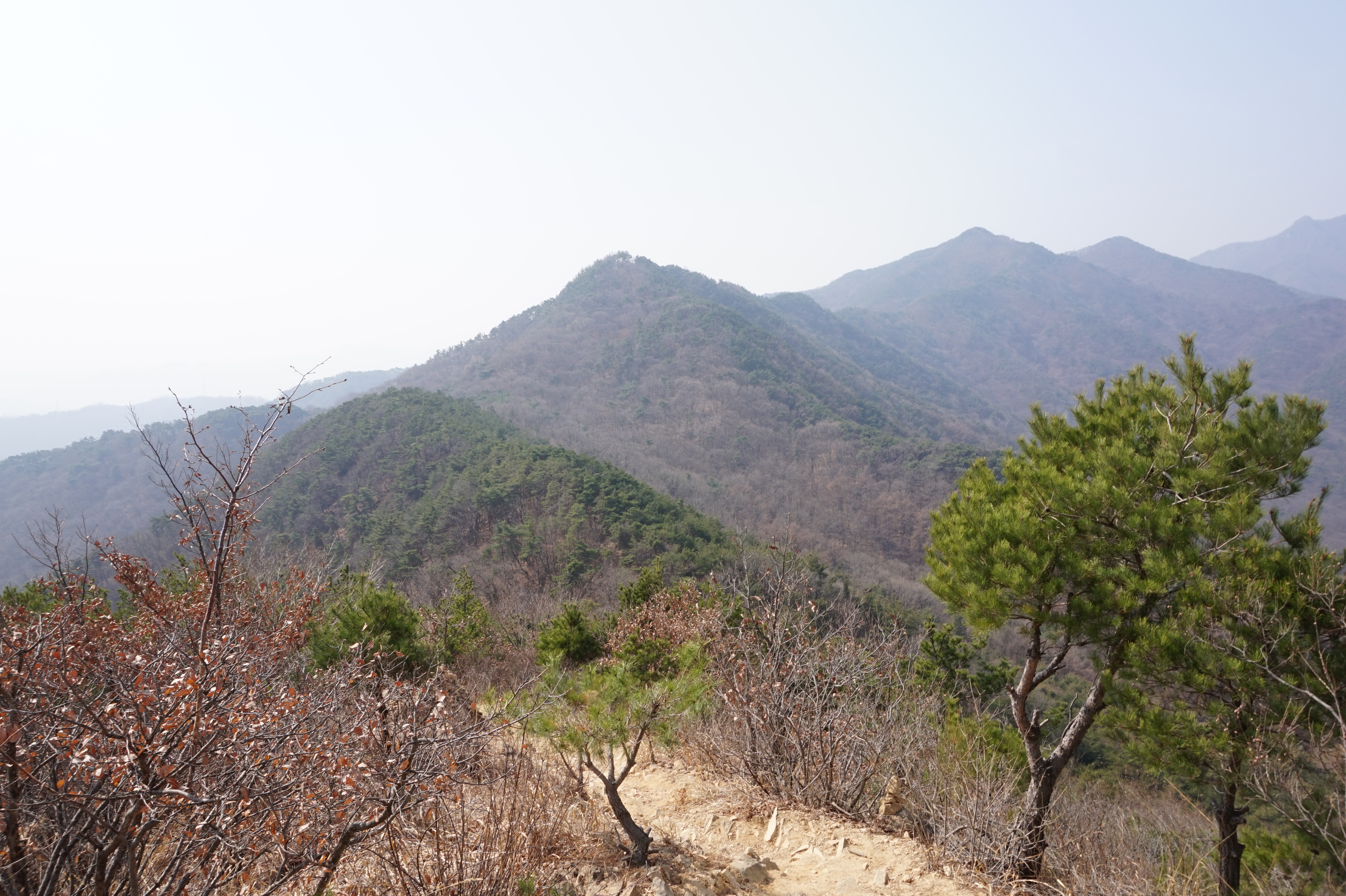아래 가운데 오늘산행를 원점회귀로 진행한다면 만나게될 137봉이 보이고 능선에 가려 않보이지만 그우측이 오늘의 들머리가 되겠습니다(북쪽방향)
