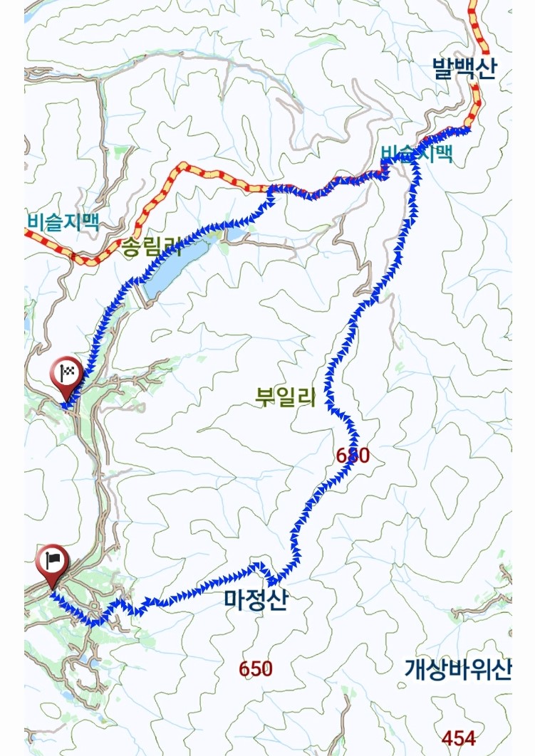 위에서 1키로 이동한 오늘의 날머리 부일리 경로당입니다(14:50)