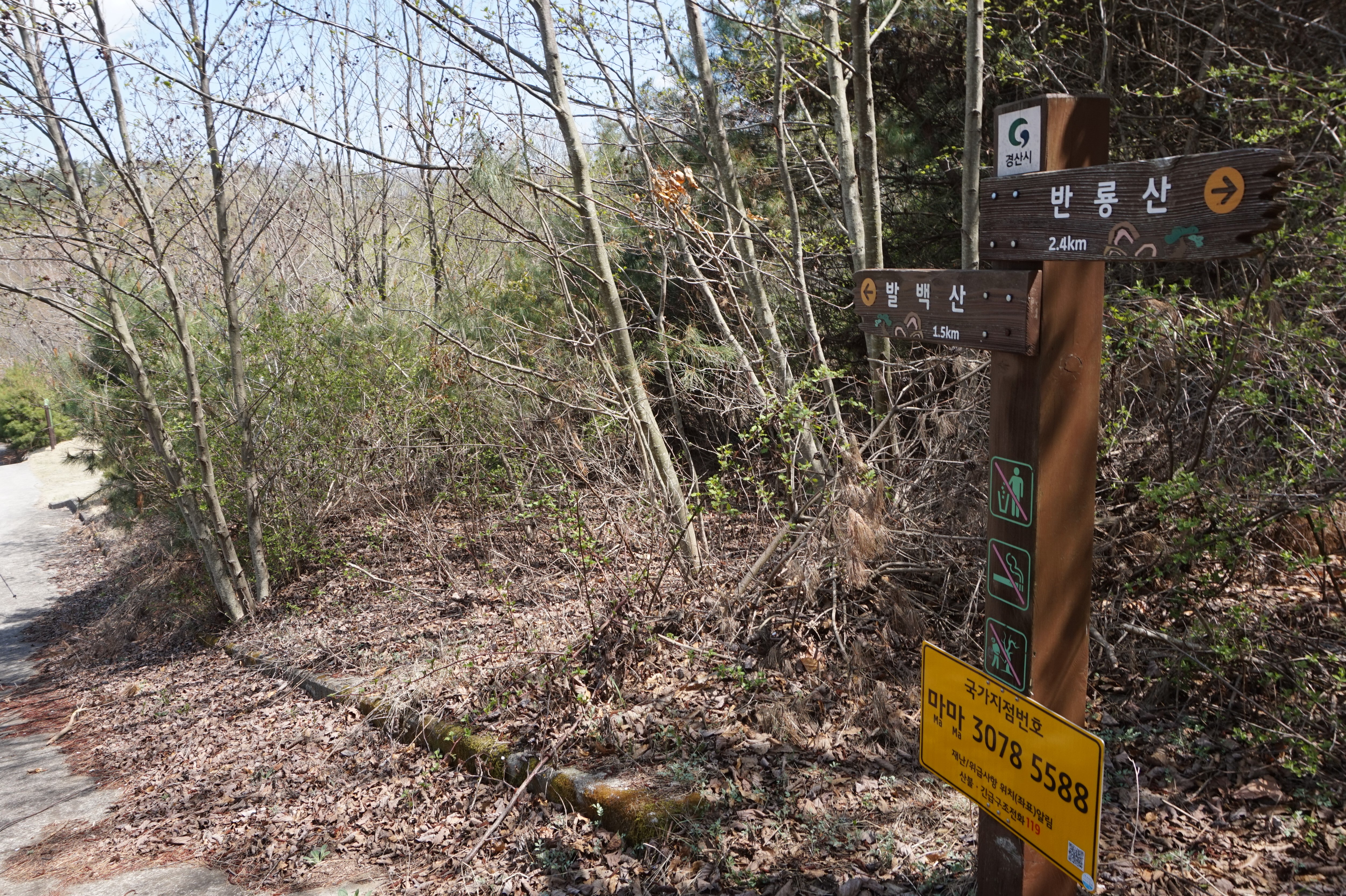산행코스 : 용전리 마을회관 - 반룡사 - 반룡산 - 반룡산 정상석 - 갈림길 - 반룡산 삼각점 - 임도 - 전망대 - 삼거리 - 발백산(왕복) - 비슬지맥 - 봄못 - 귀제 - 육동로 - 부일리 경로당 (약 9.9키로)