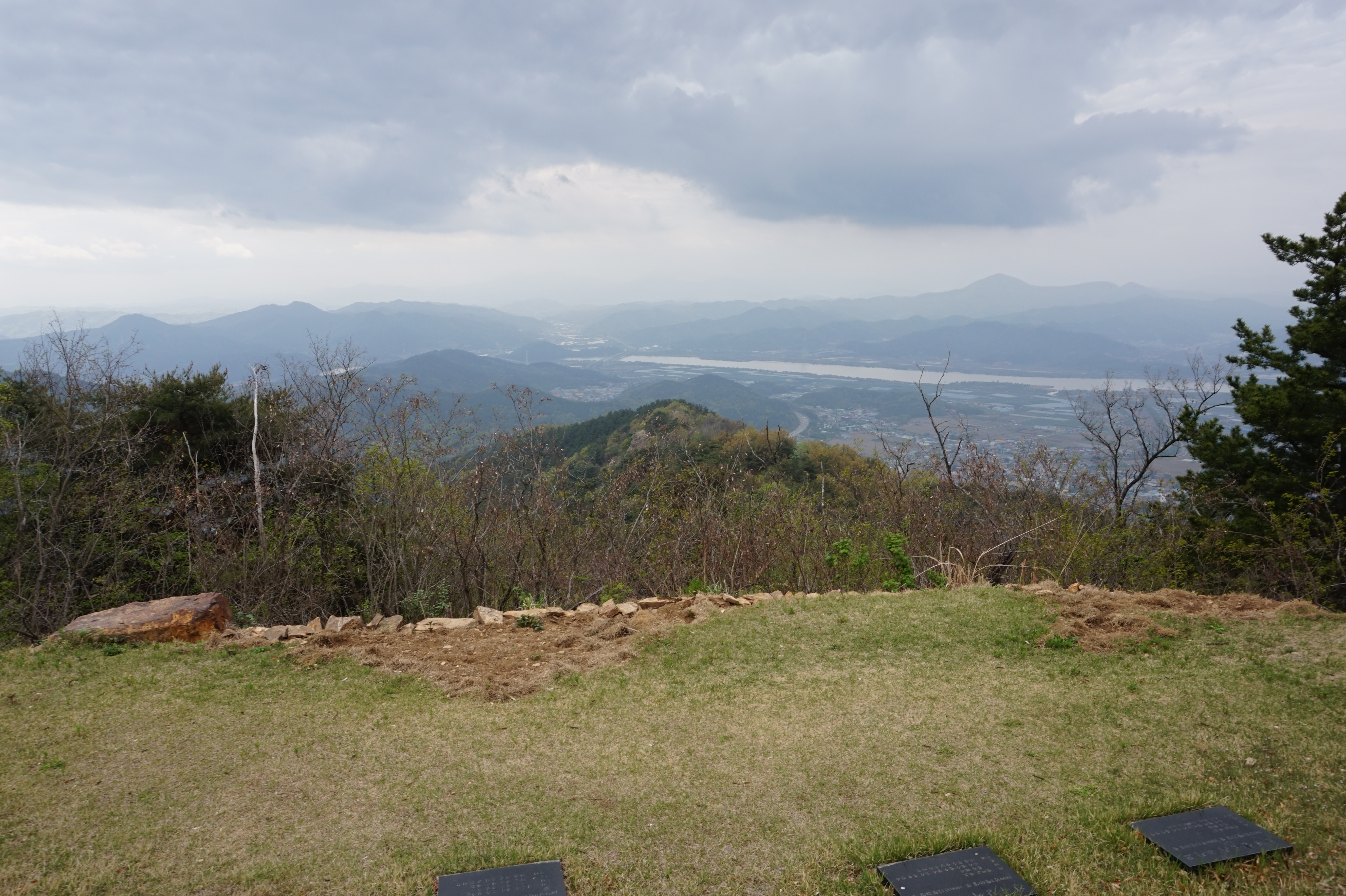 밑에 낙동강이 유유히 흐르고 좌측에 제석산 우측이 미숭산과 문수봉이 되겠고 그우측뒤에 가야산이 있겠습니다 (서쪽방향)