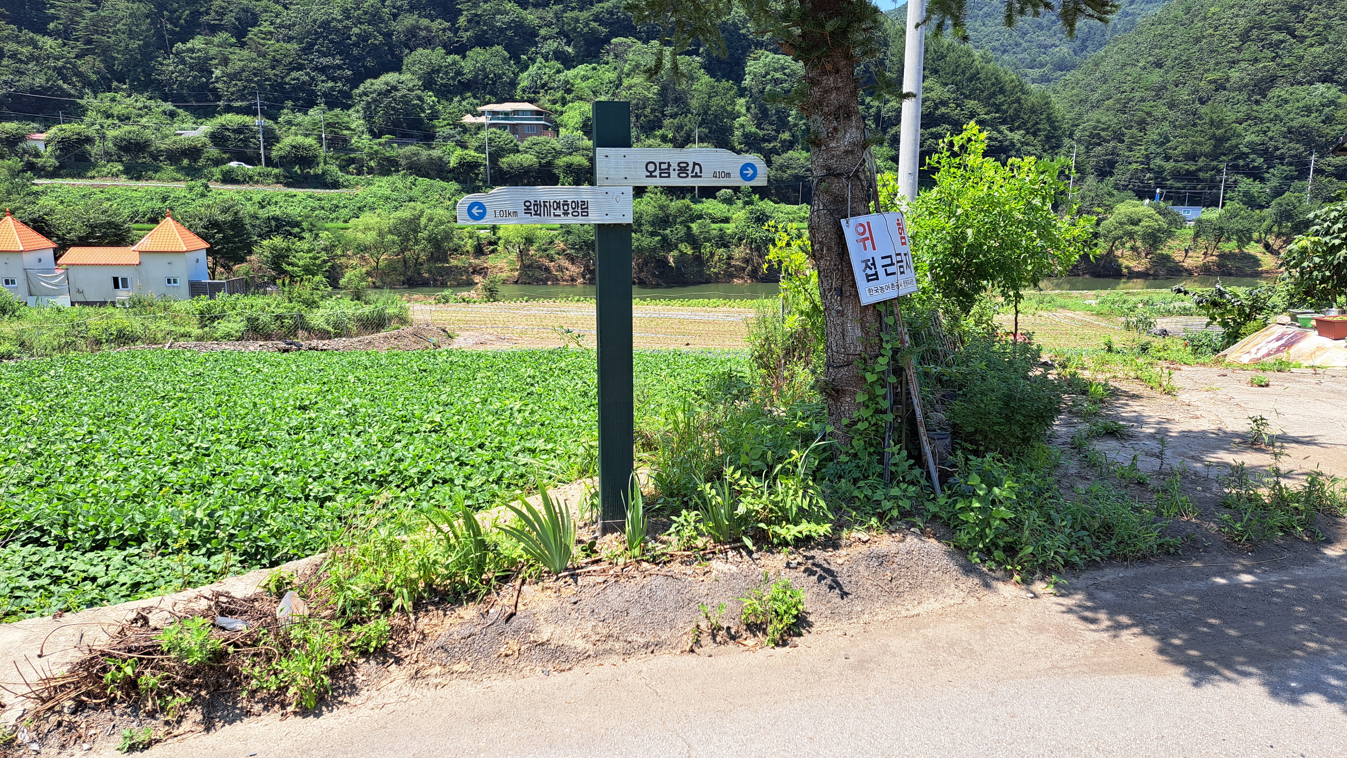 우측으로 약 300미터 가면 휴양림인데 좌측으로 약간 올라가서 계곡에서 씻고 갈아입고 휴식후 휴양림으로 갑니다 (13:07)