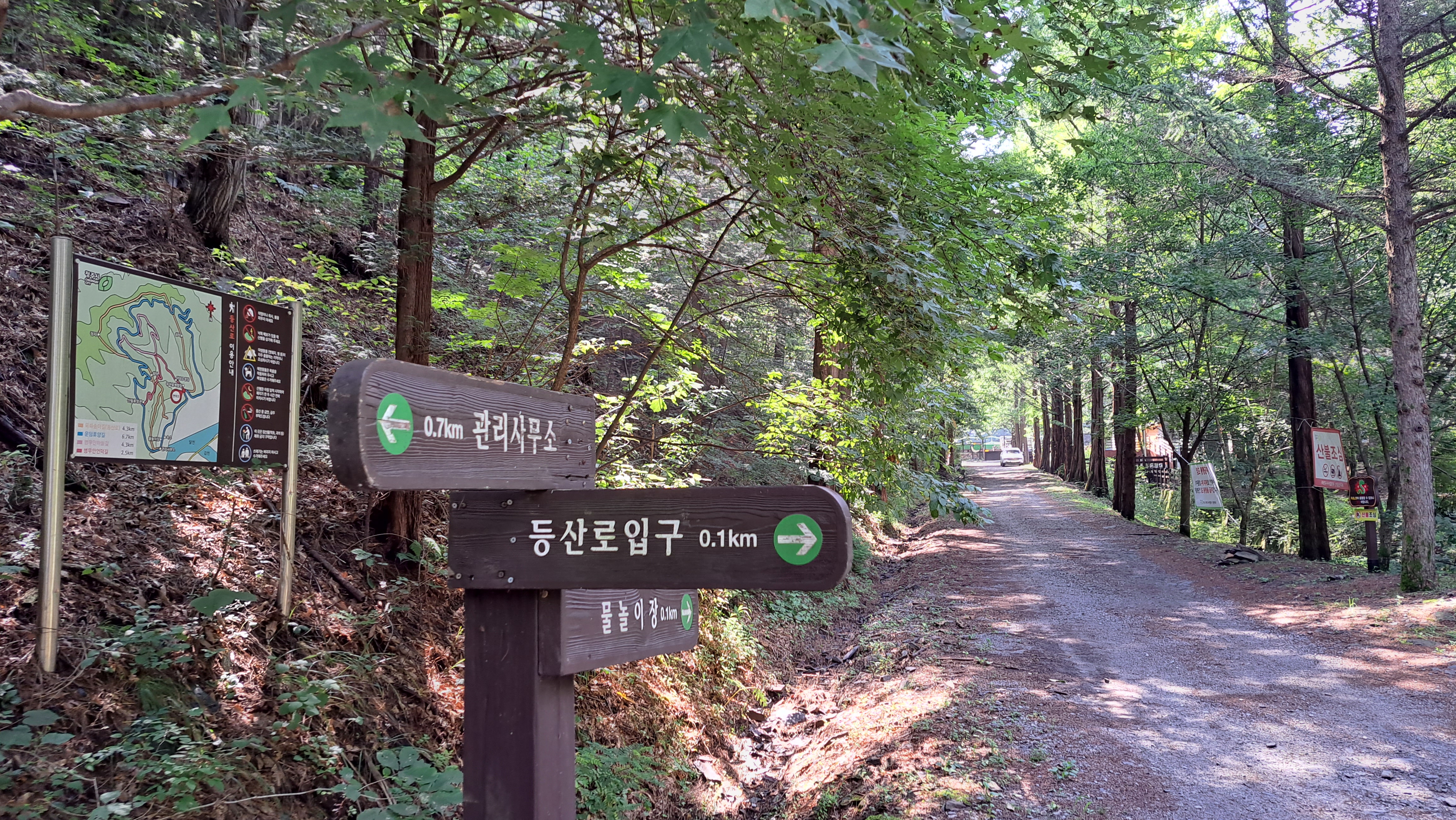 서울을 출발한지 약 2시간 45분만에 옥화자연휴양림에 도착합니다 (09:46)