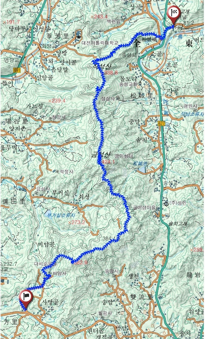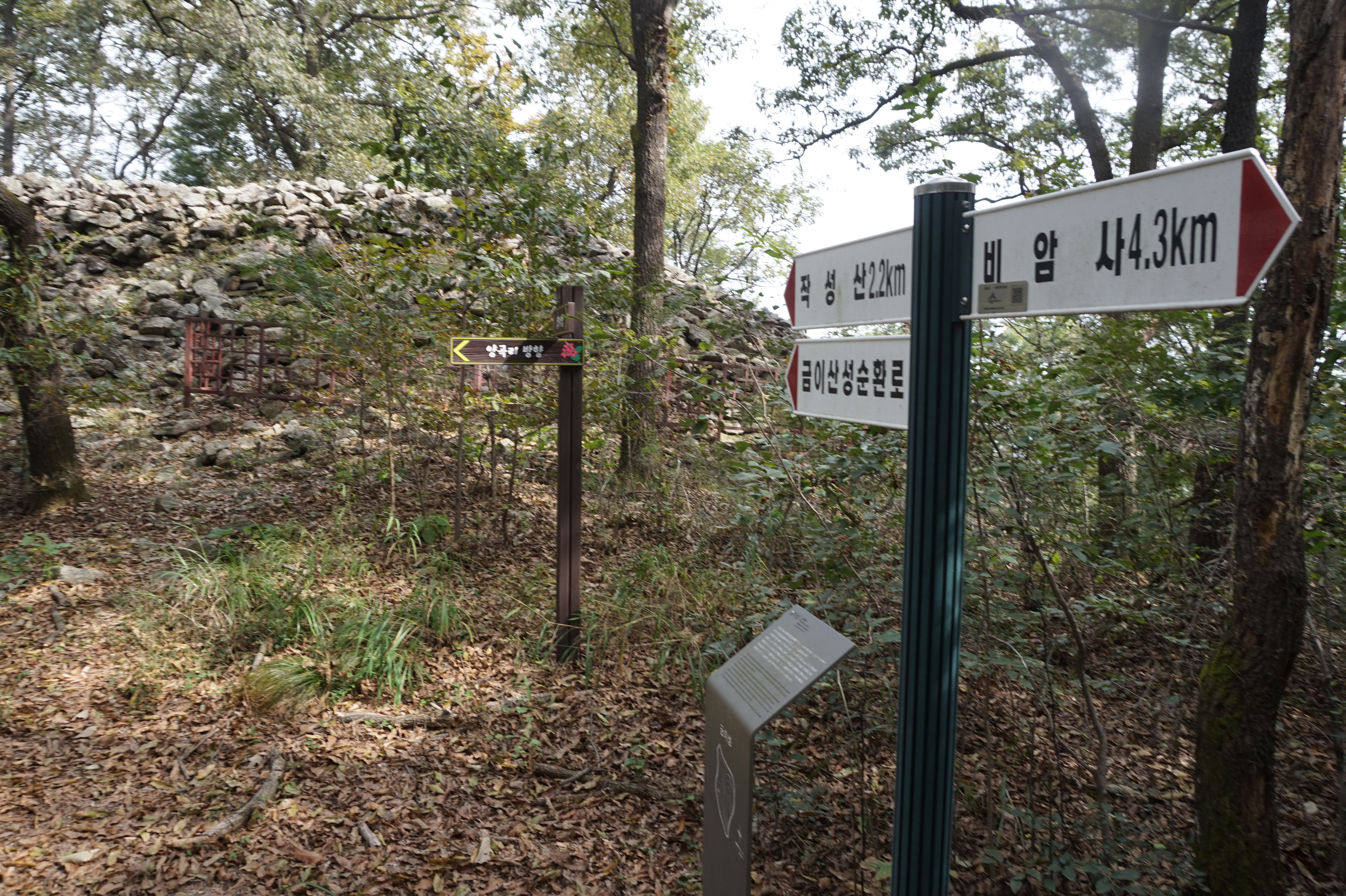 산행코스 : 비암사입구 정류장 - 비암사 - 비암산 - 수디산 - 임도 - 금이성 - 금성산 - 임도 - 작성산 - 임도 - 개미고개 정류장 (약 10.9키로)
