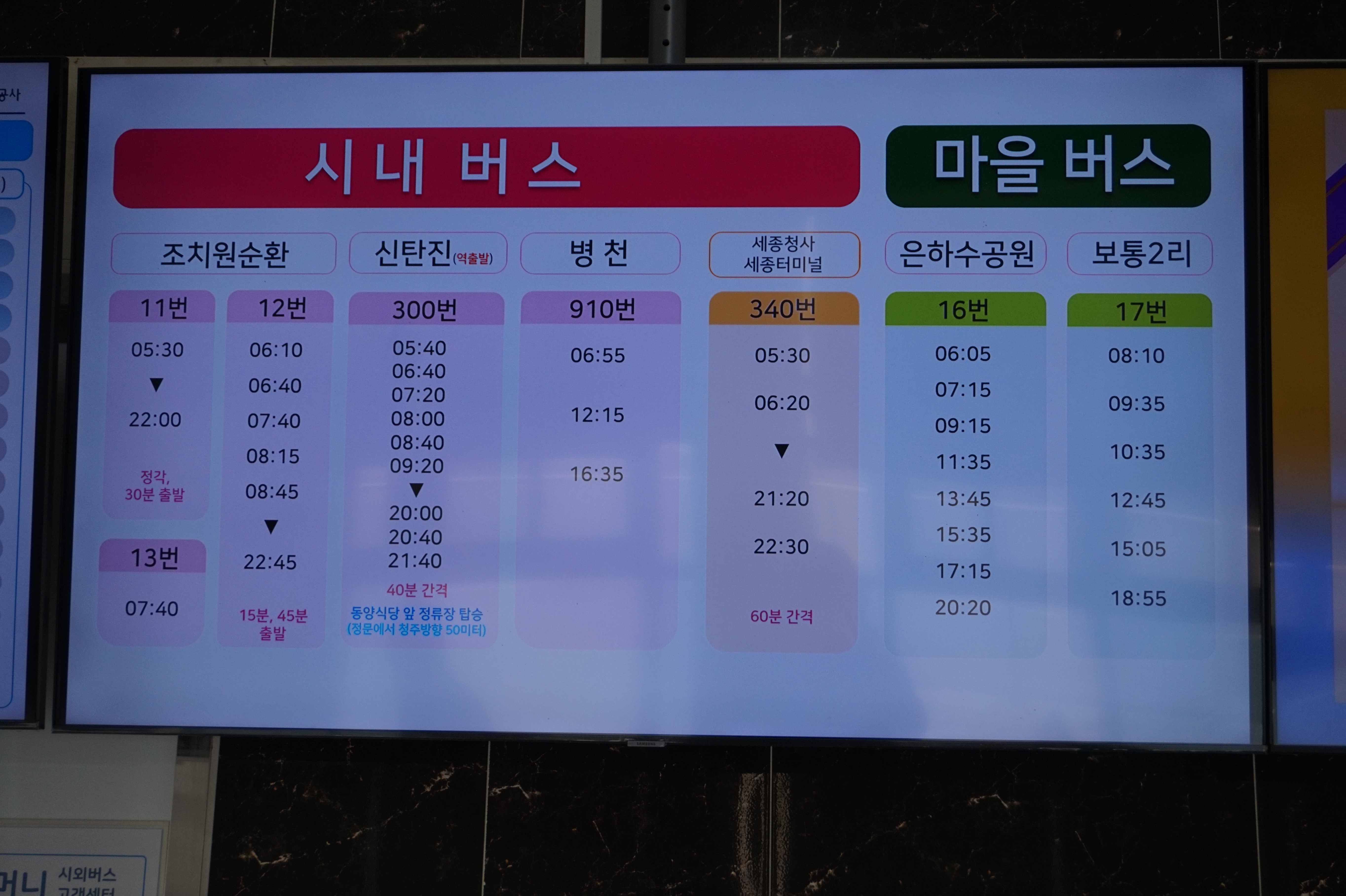 고속버스가 조치원 홍대정류장에 갔을때 터미널로 가도 08:30분발 86버스를 탈수있을것 같아 터미널로 갔고 터미널에 도착하자마자 바로 86번버스 승차했는데(참고로 홍대 - 터미널은 고속버스 10분이상 걸림), 개미고개를 날머리로 잡으면 801버스가 비교적 자주 있어서 편리함