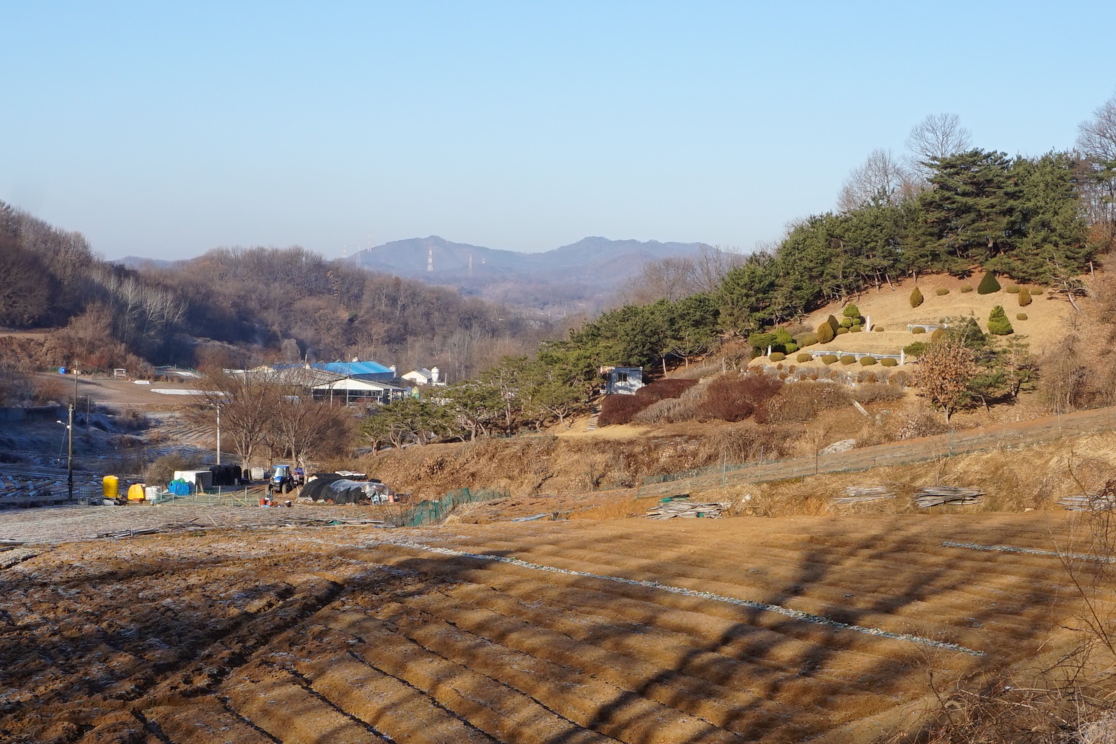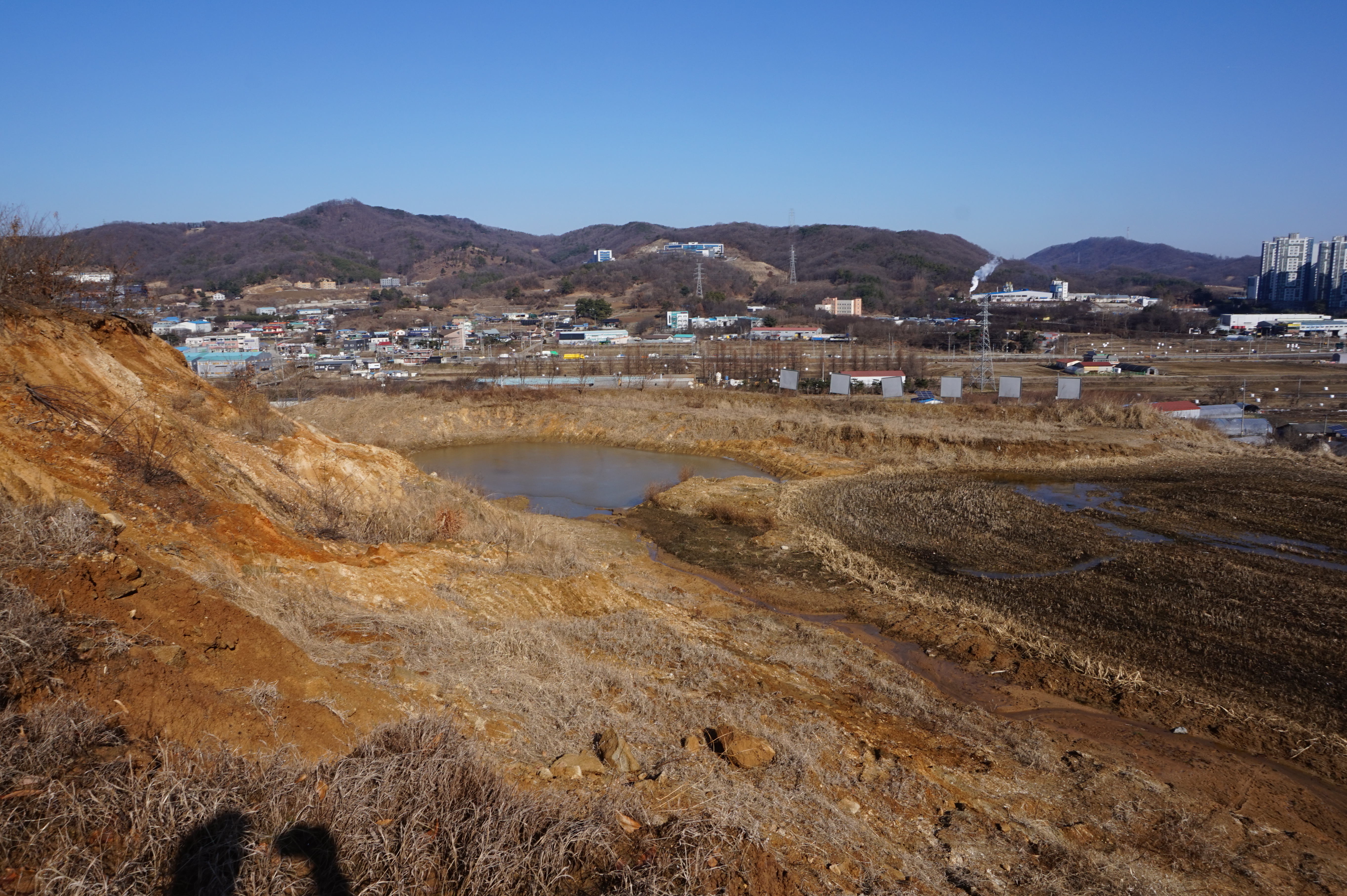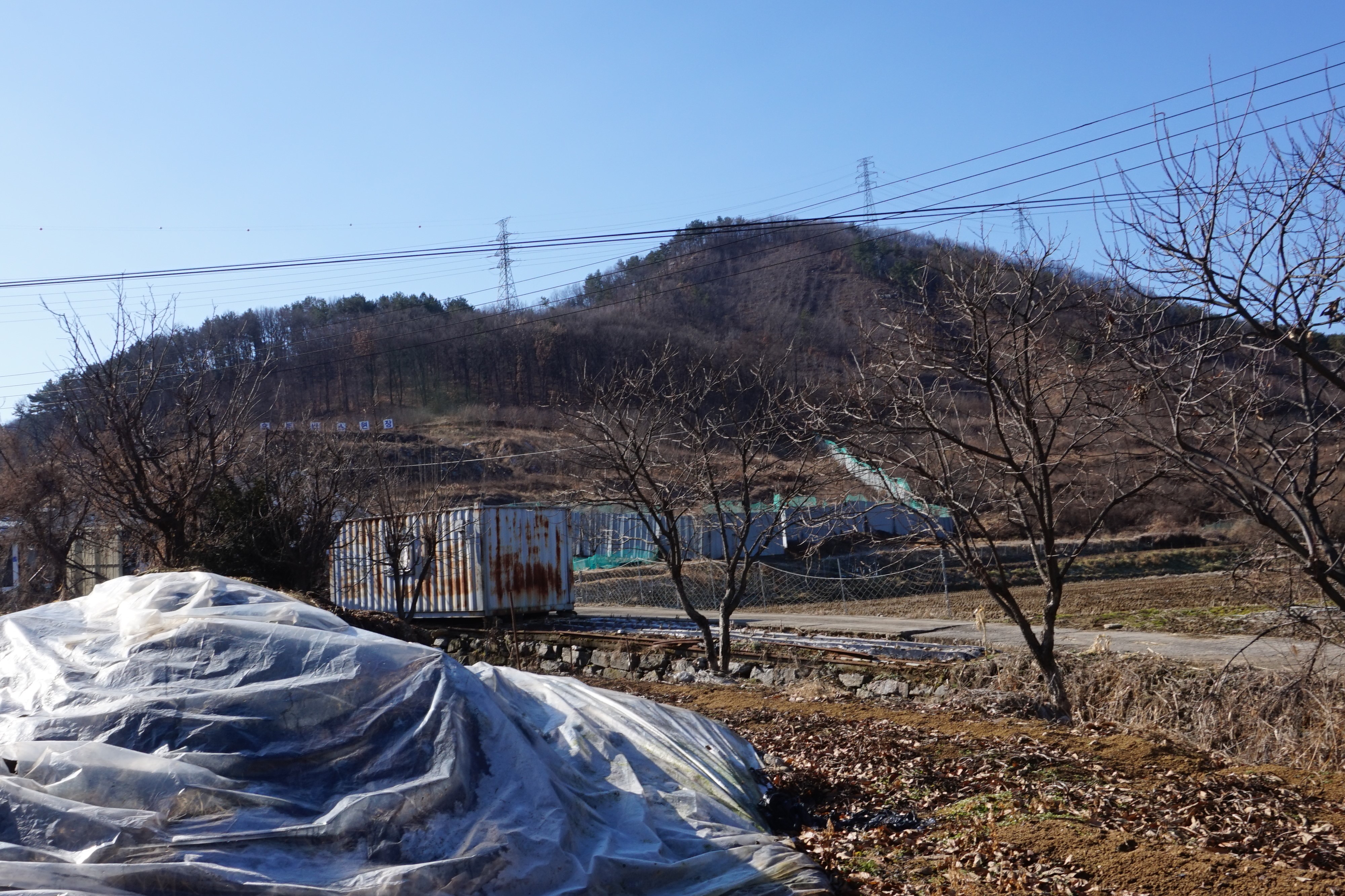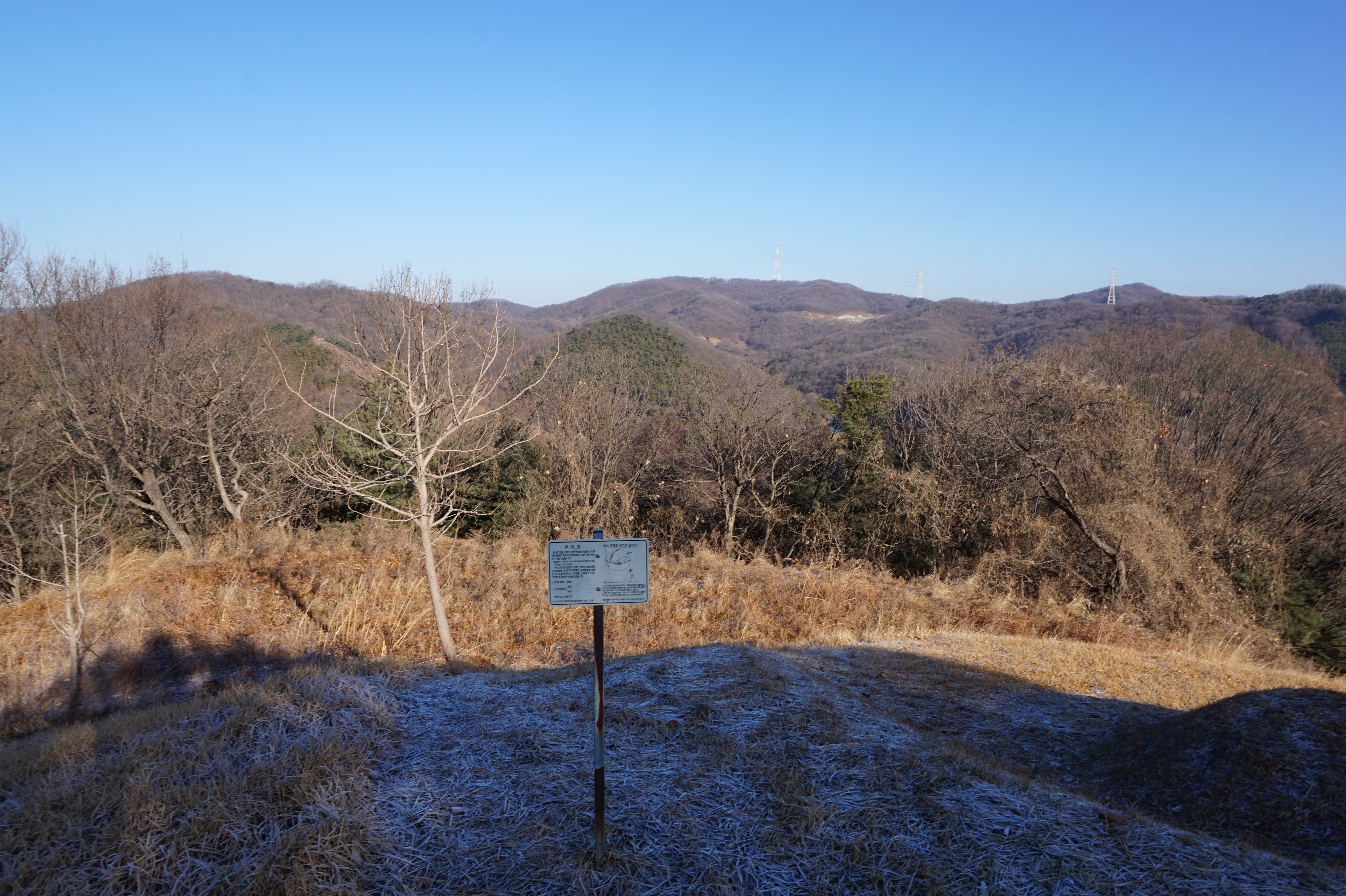 더샵레이크씨티 아파트와 가운데뒤 용와산이 보이고 동절기니까 앞에 보이는 음봉로 방향으로 직진합니다