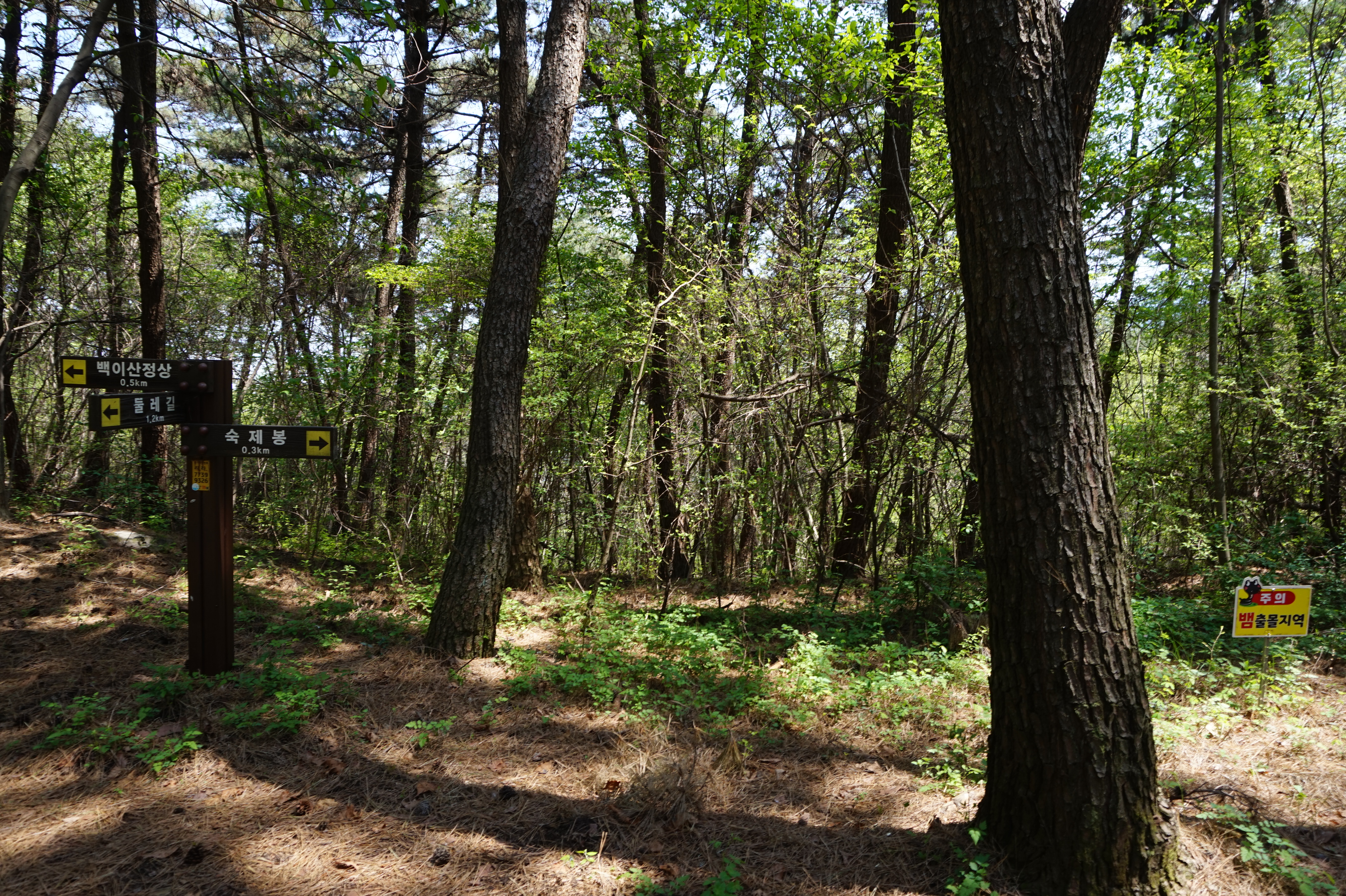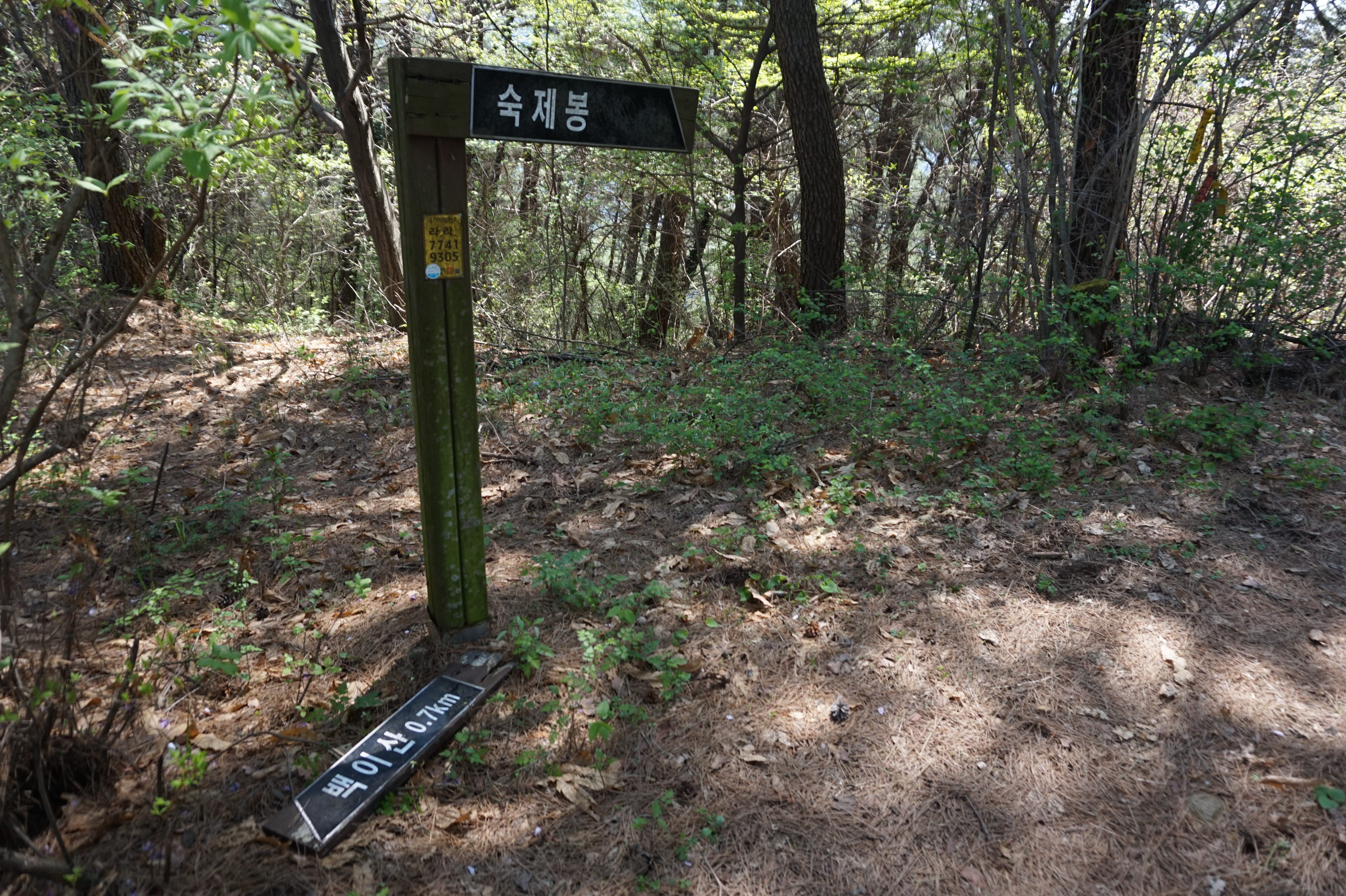 다시 올라와서 만나는 백이산과 숙제봉 갈림길