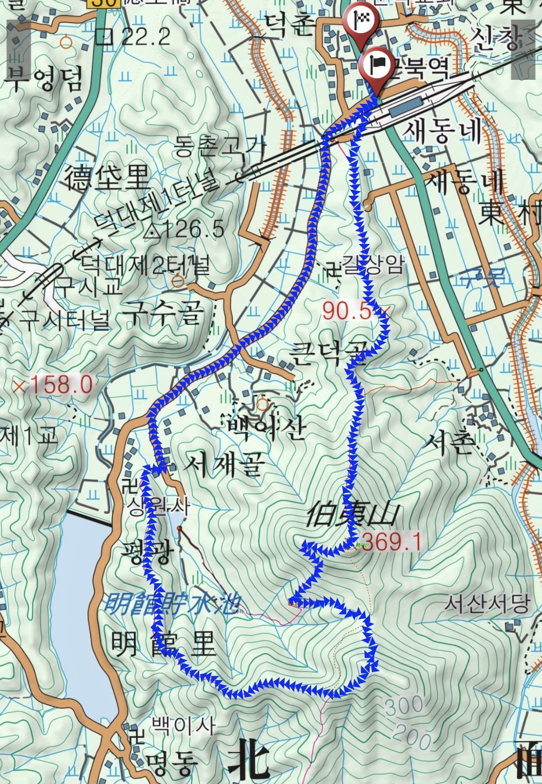 산행코스 : 군북역 - 백이산 - 명관리 공용발자국화석 - 갈림길 - 숙제봉 - 도천재 - 단서죽백명문 안내문 - 군북역 - 신창경노회관 (약 8키로)