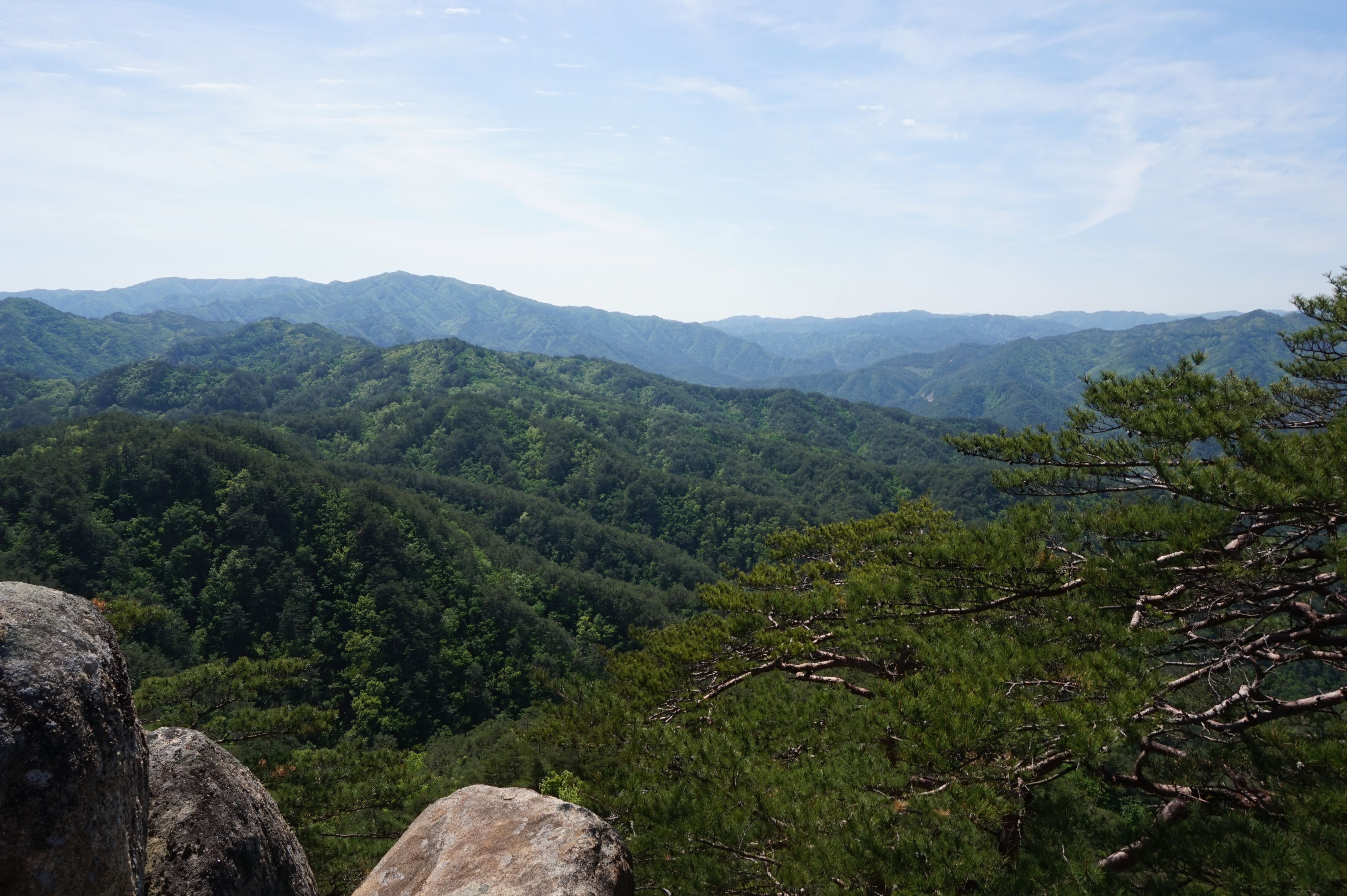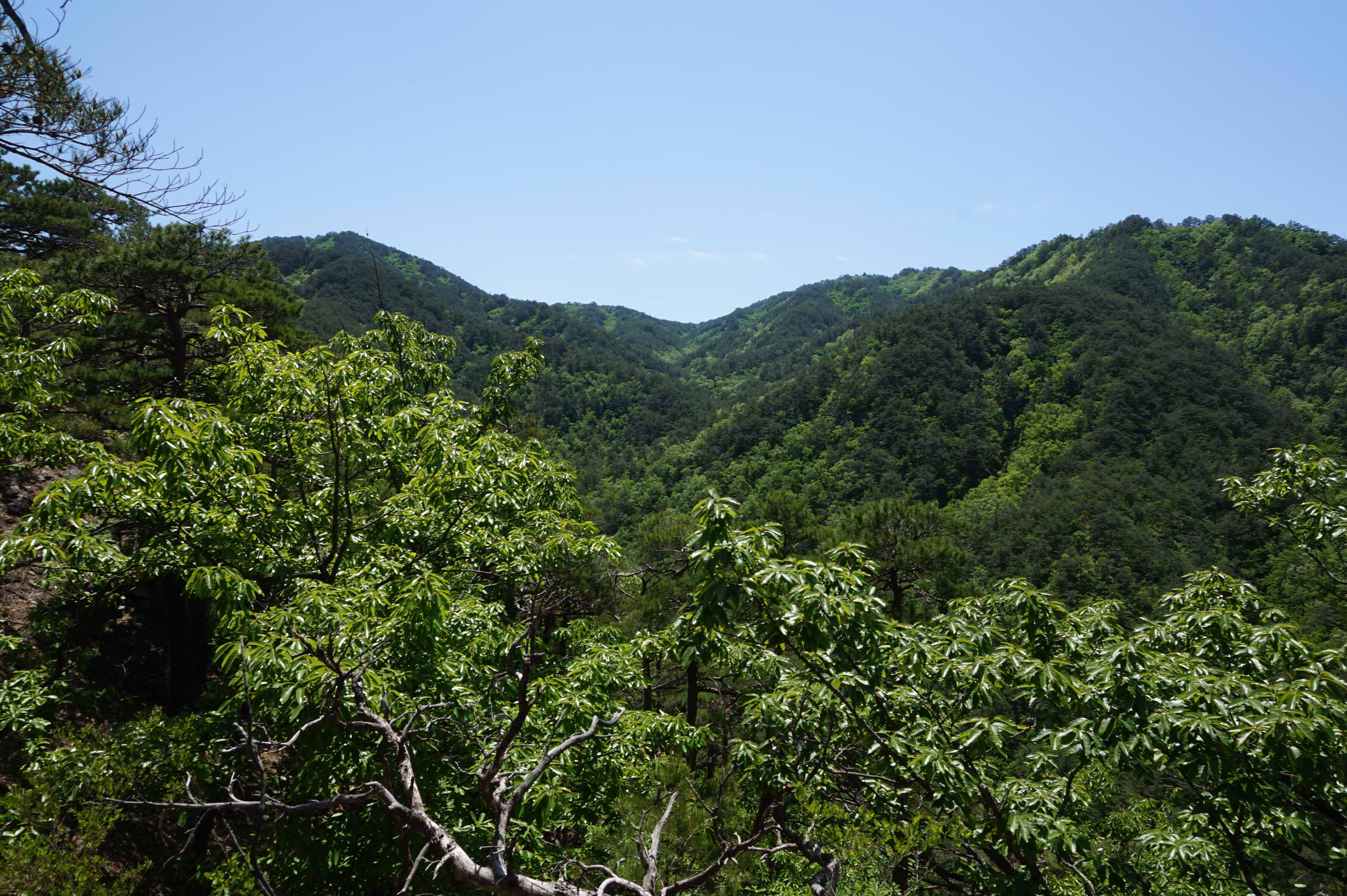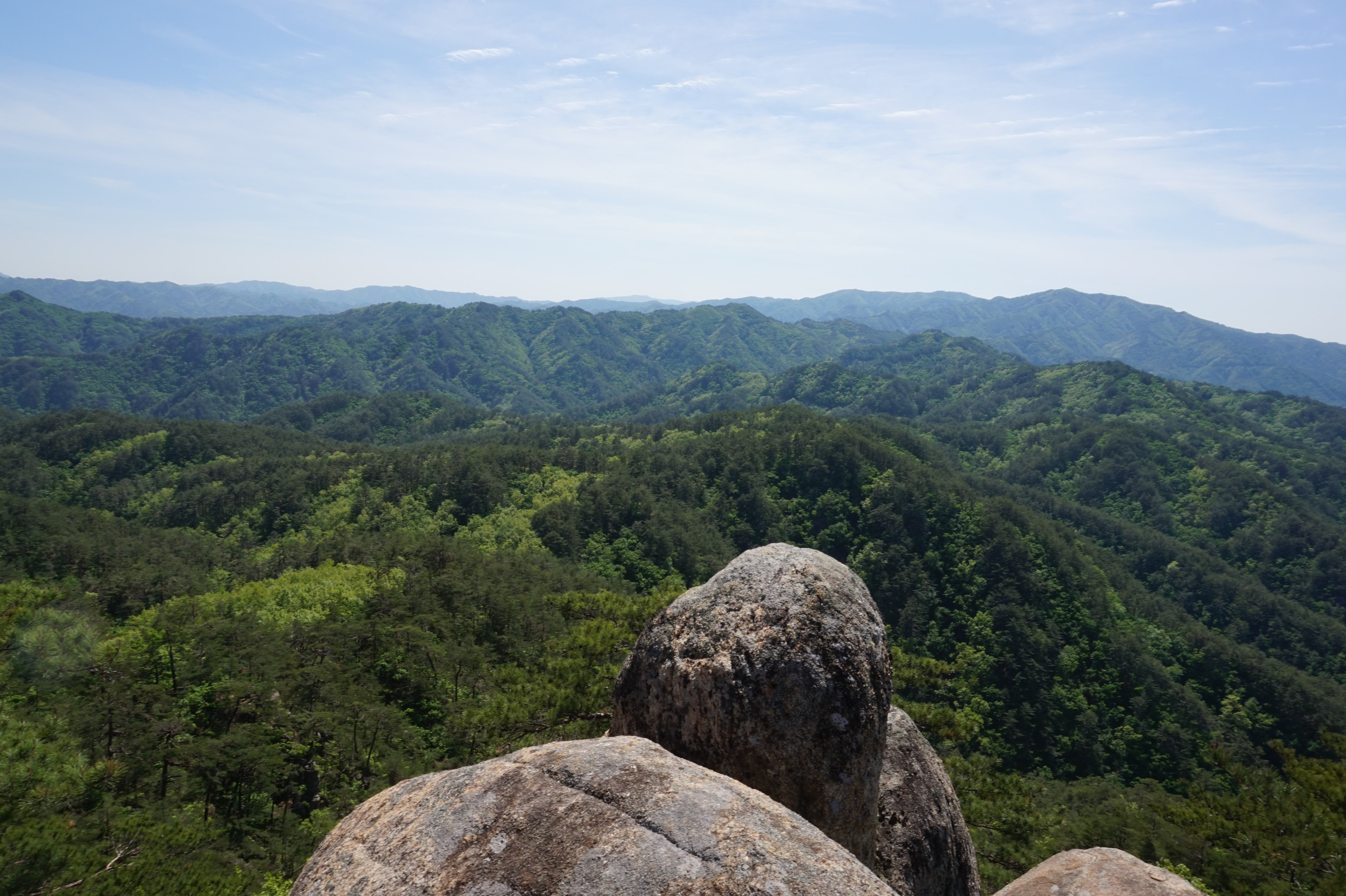 우측뒤 칠보산 넘어 이어지는 낙동정맥과 맨뒤 일월산이 될듯 (서남방향)