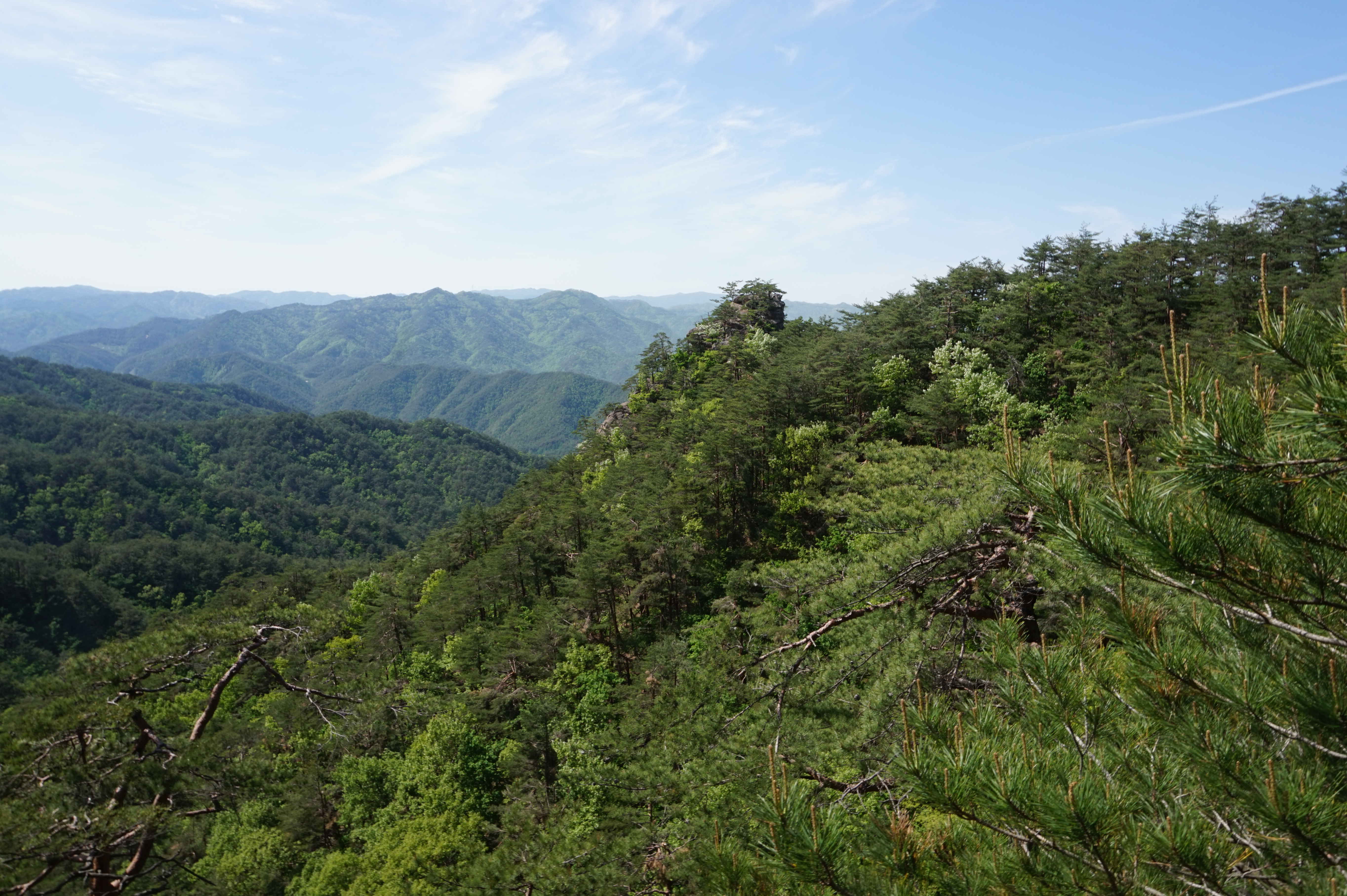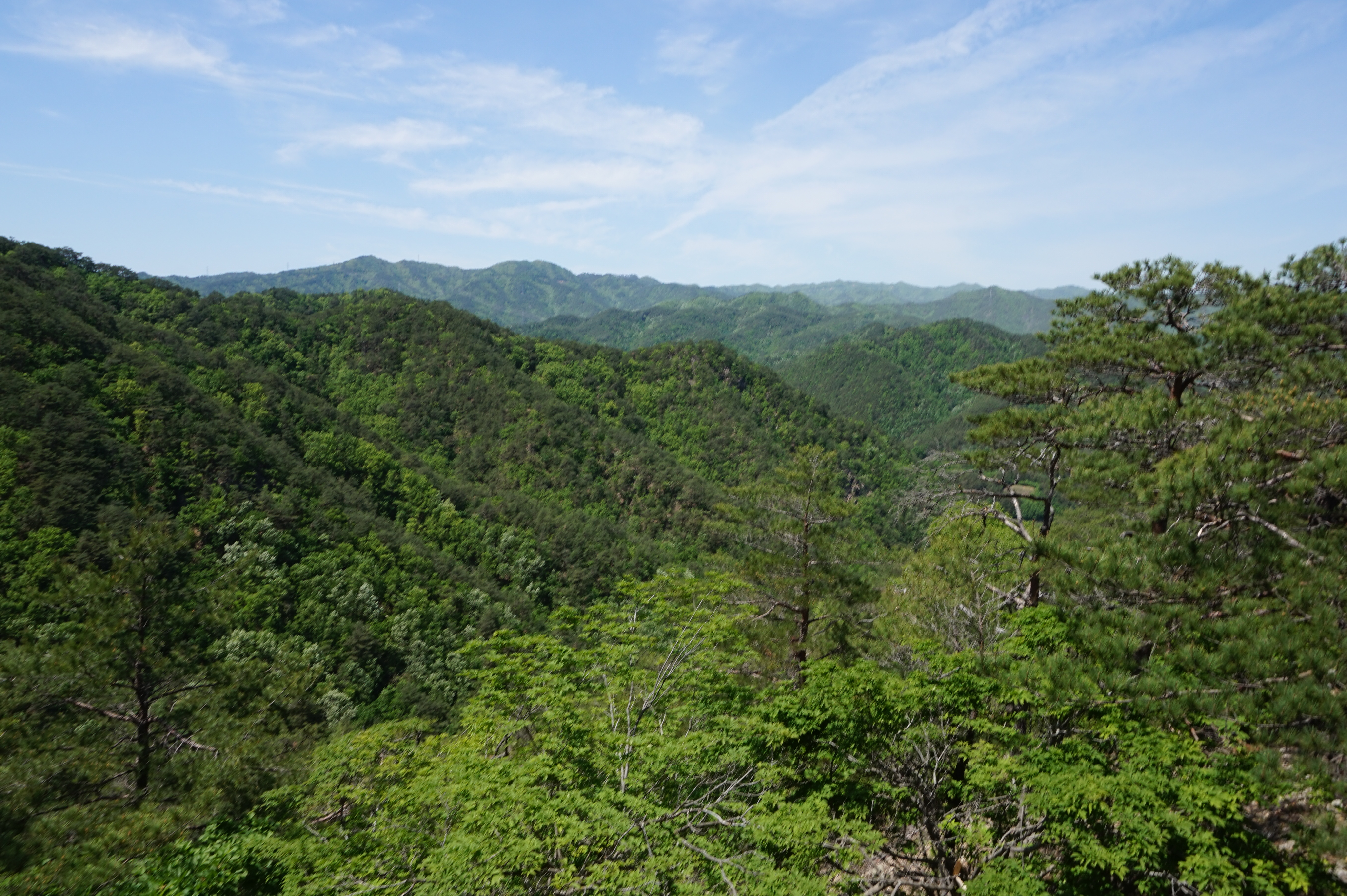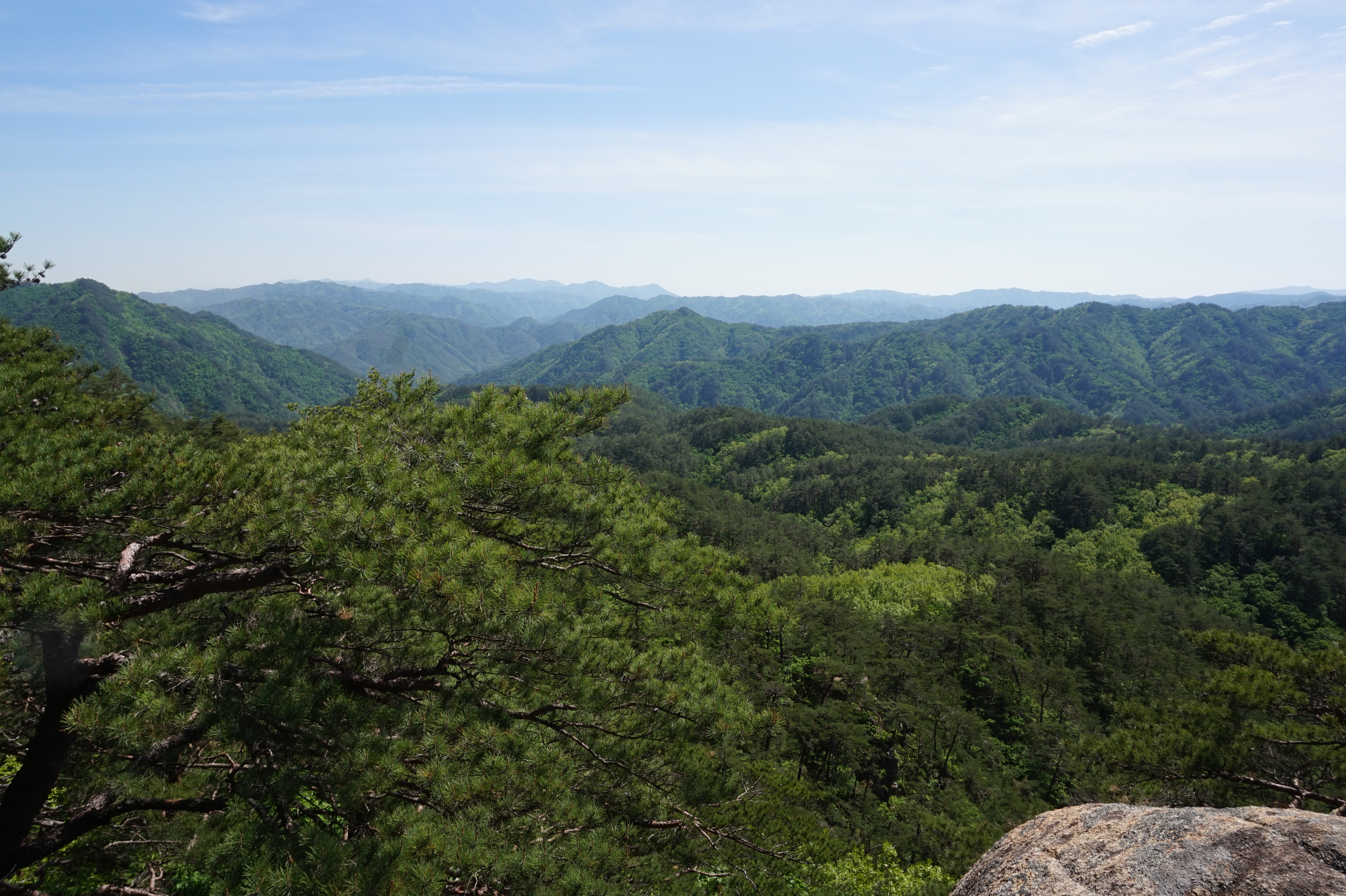 우측뒤 칠보산 넘어 이어지는 낙동정맥과 맨뒤 일월산이 될듯 (서남방향)