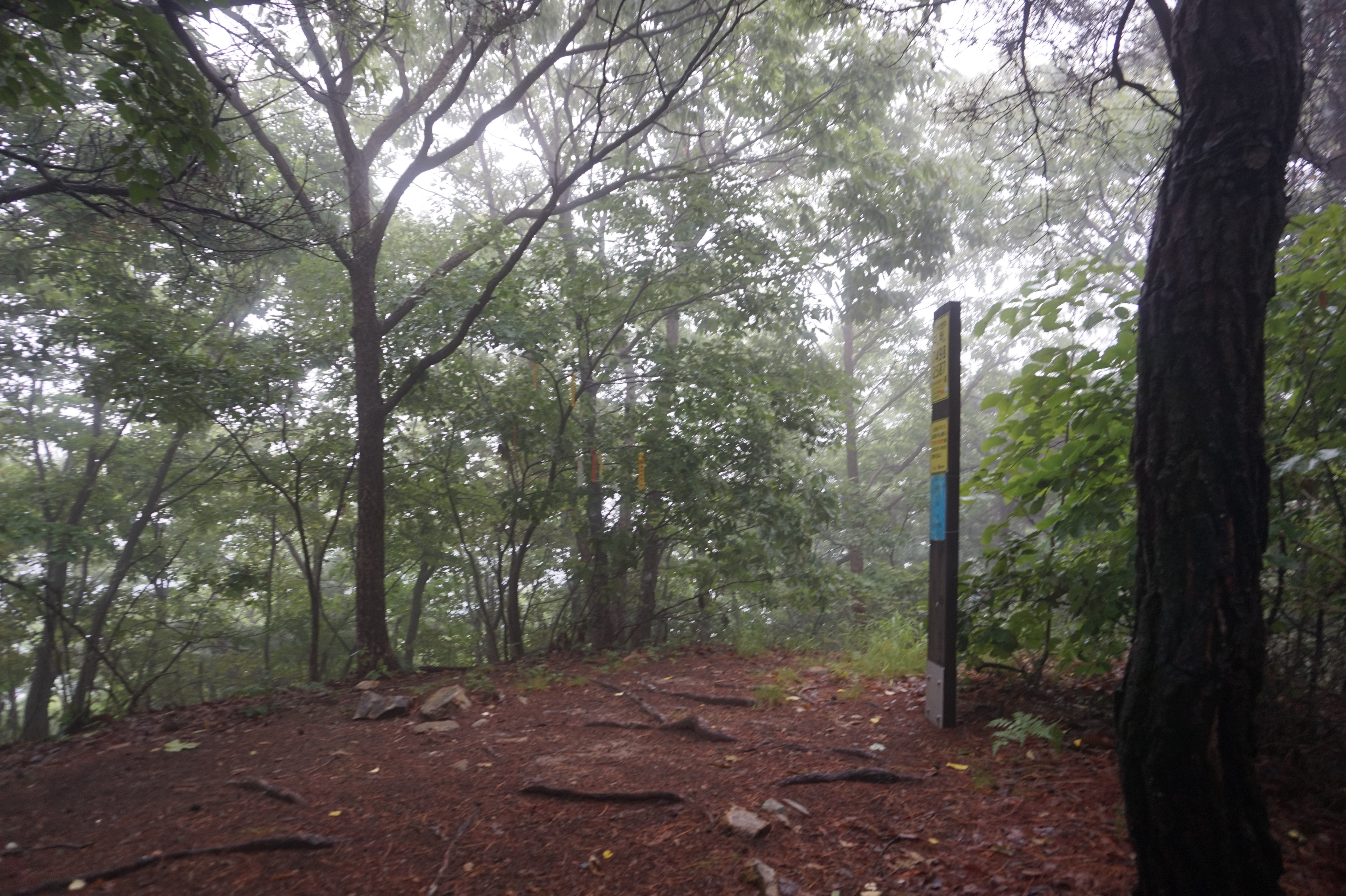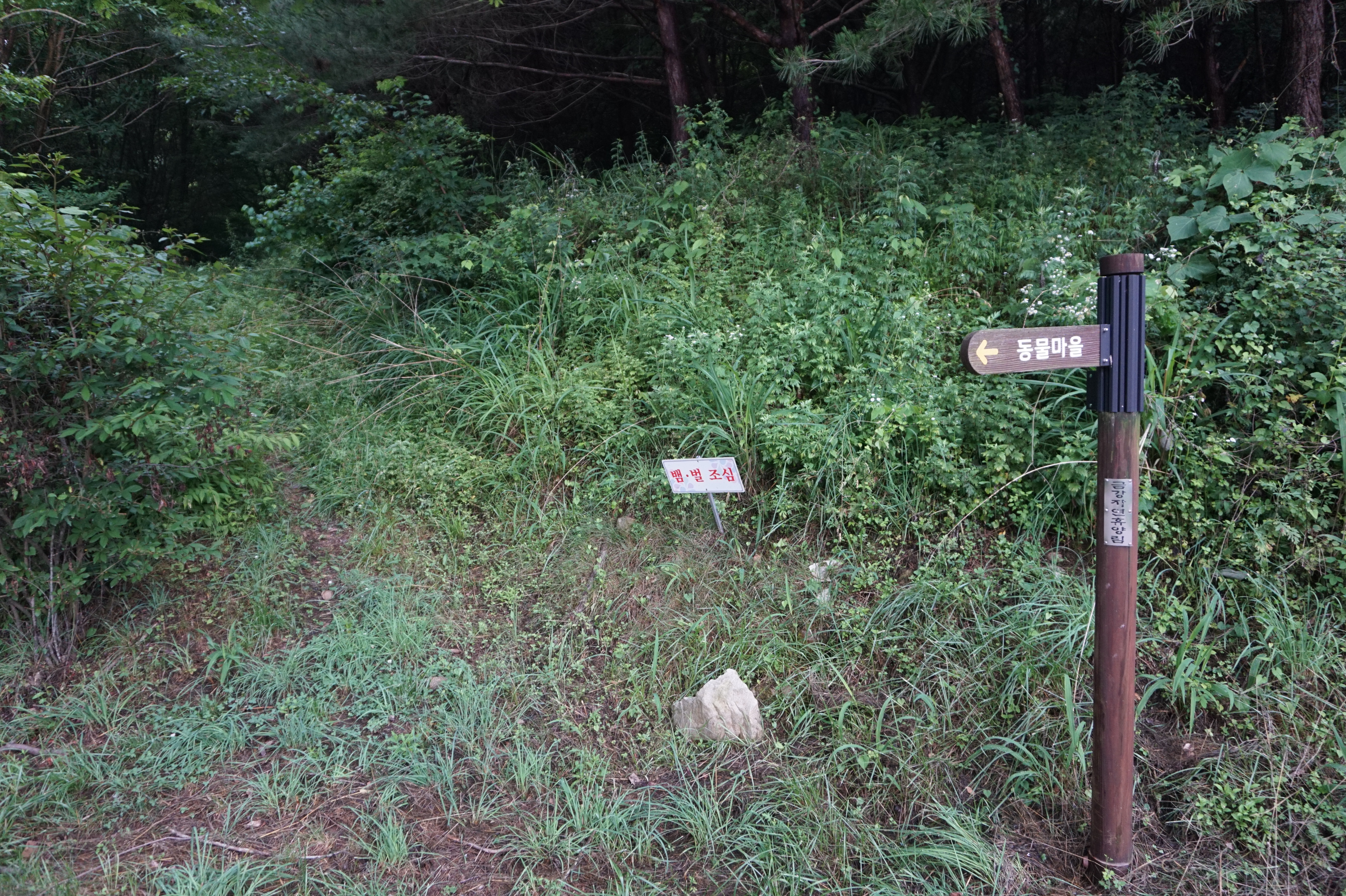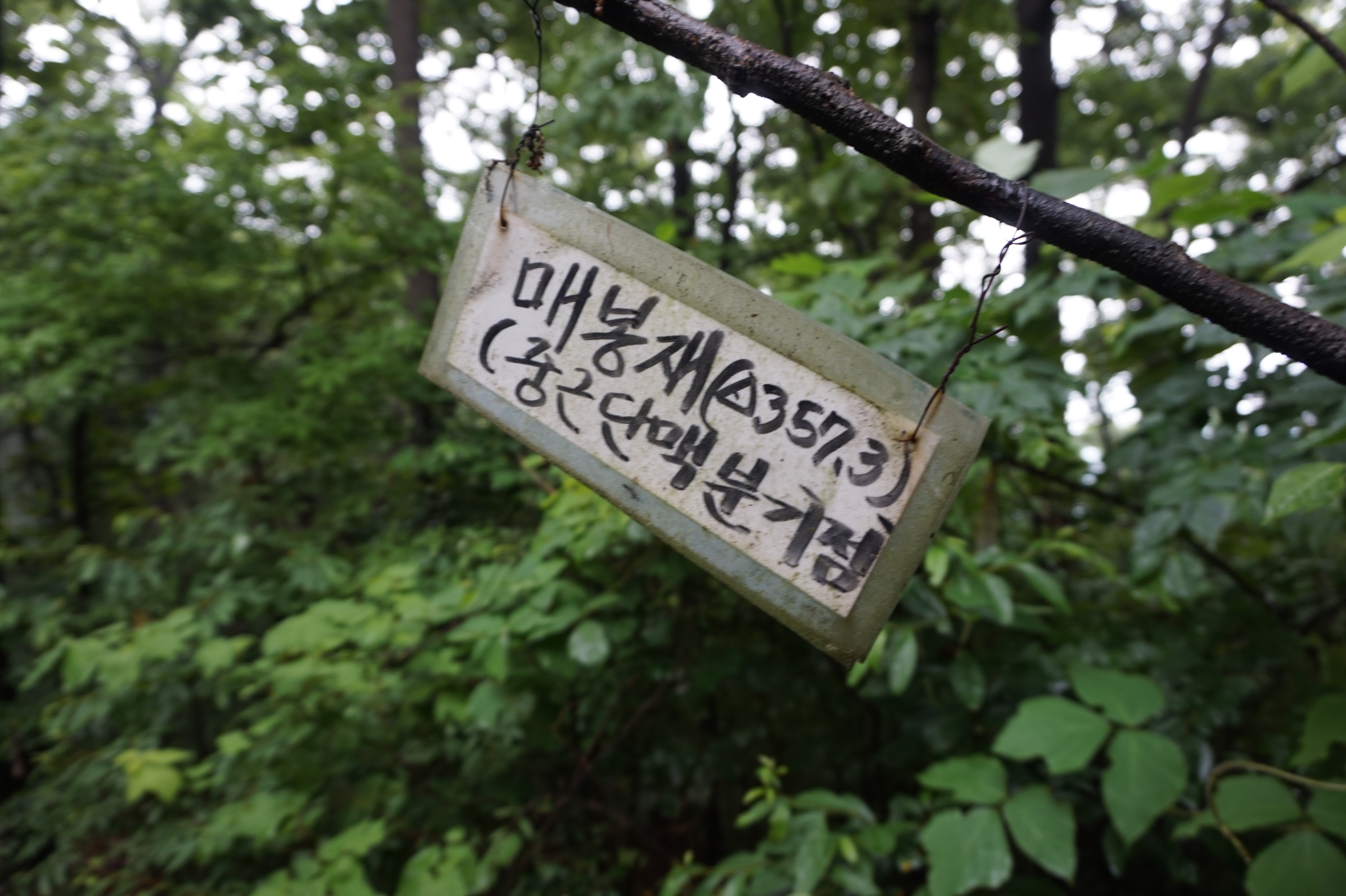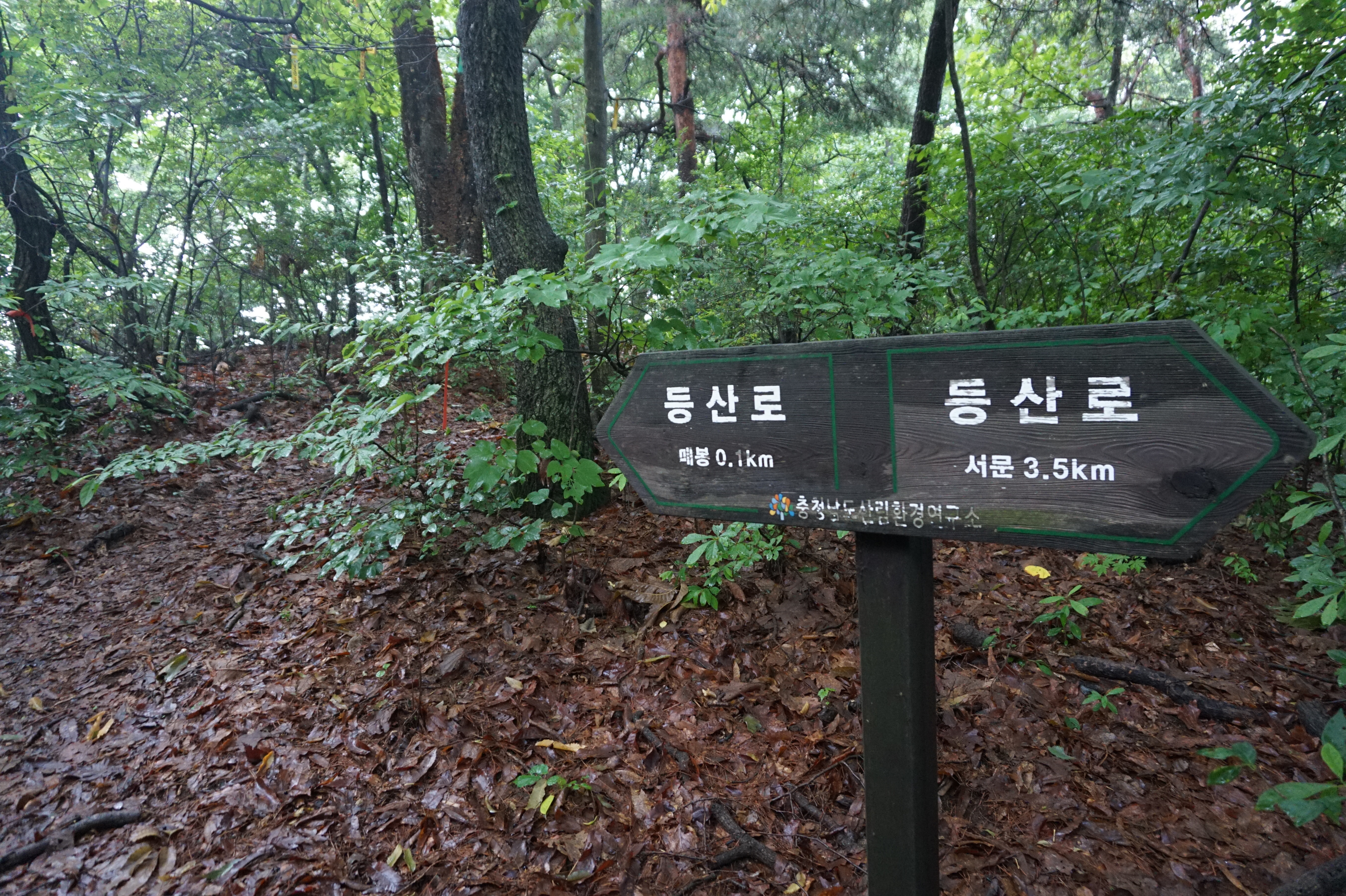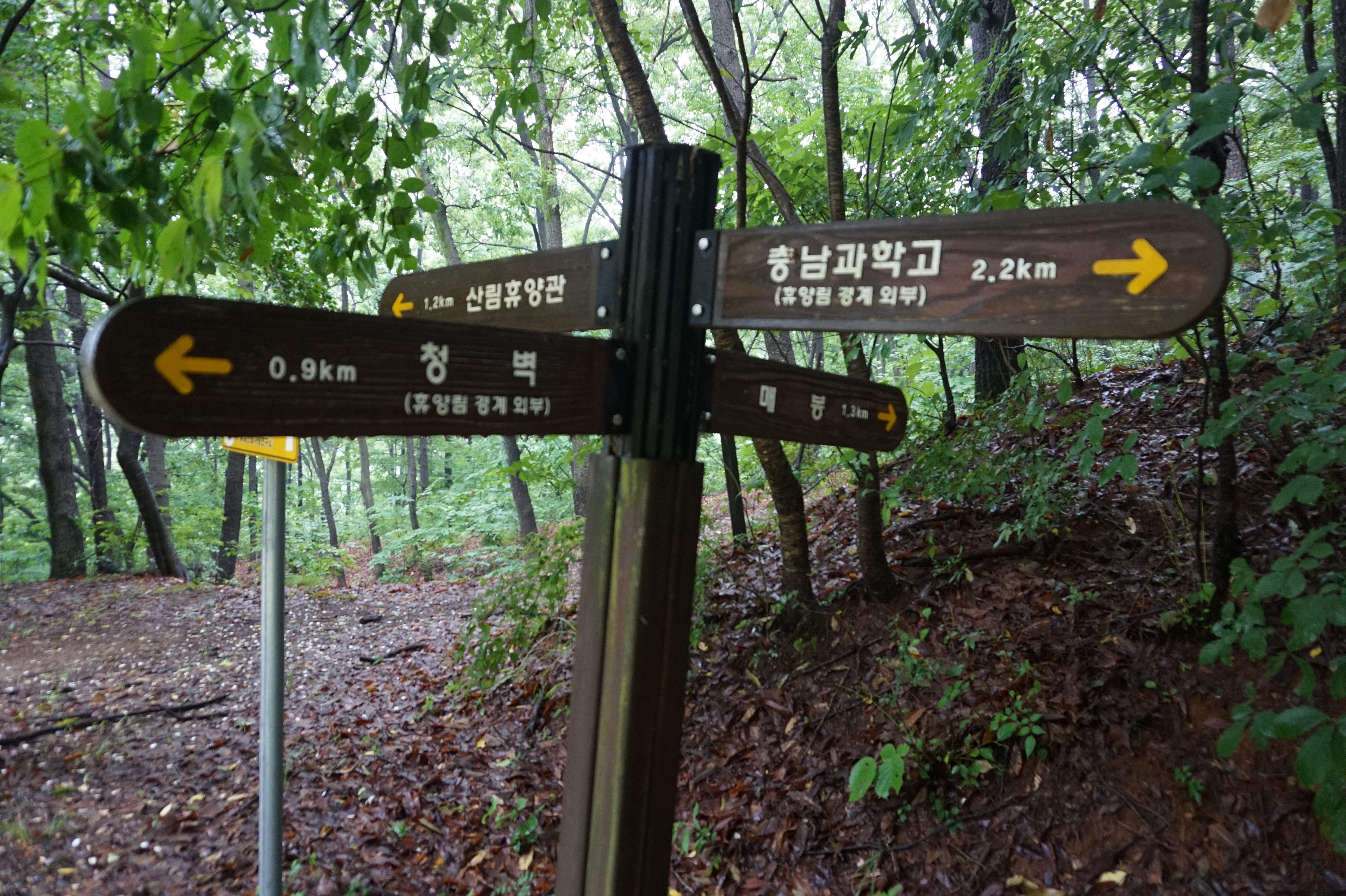 불재에 있는 이정표, 위팬스로 막힌곳이 충남과학고 방향이고 매봉방향으로 진행하고