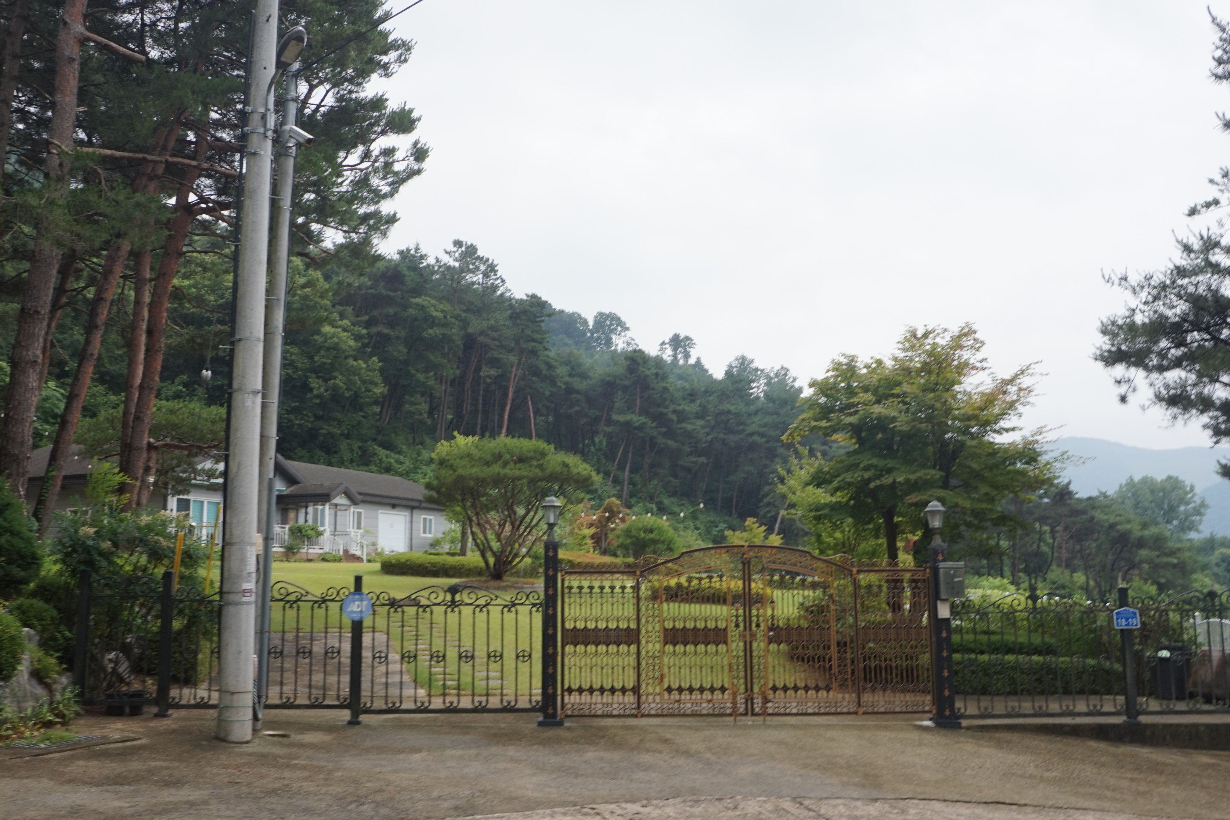 넓직한 잔디정원이 잘가꿔진 전원주택 지나고