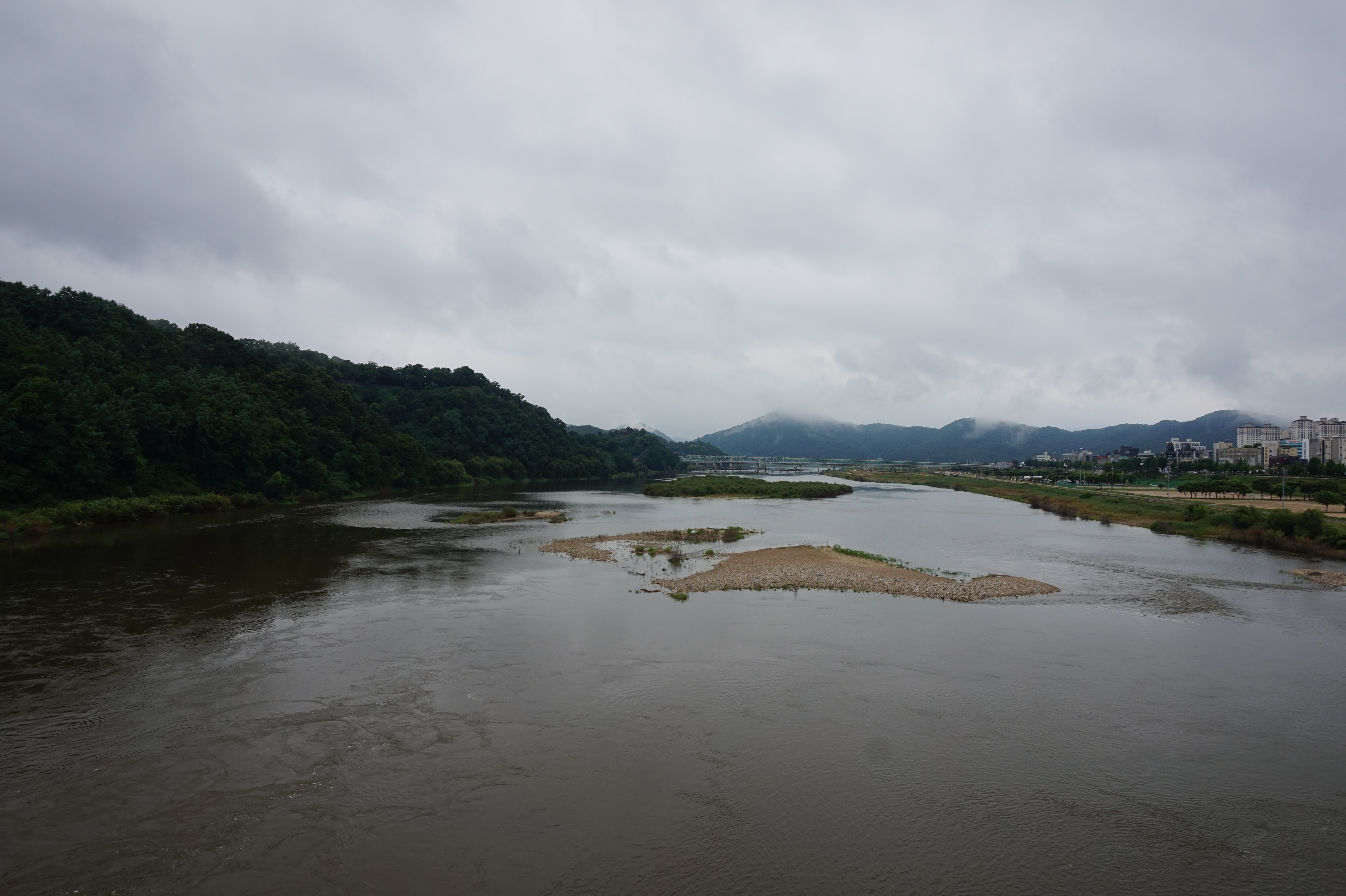 위사진 반대편, 금강의 상류방향 조망 / 비온뒤 구름과 어우러진 강가의 상큼한 아침모습이 보기좋아 담아봤고
