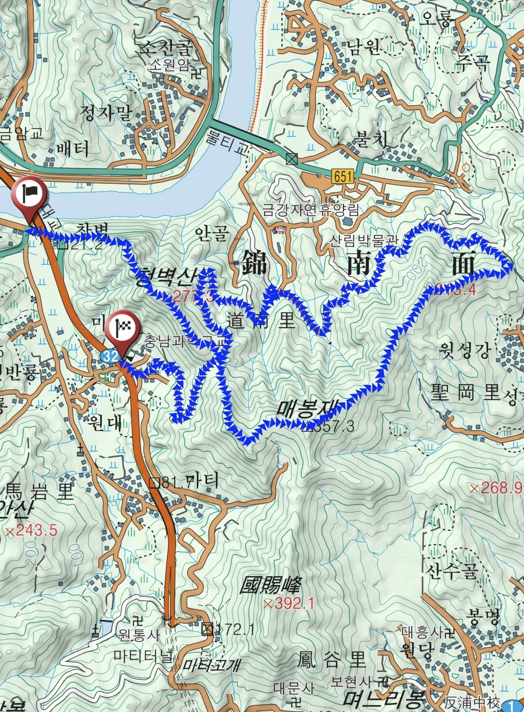 산행코스 : 마암리 - 조망터 - 진날산 - 청벽산 - 불재 - 매봉재 - 쉼터 - 313.4봉 - 임도 - 불재 - 충남과학고(약11키로)