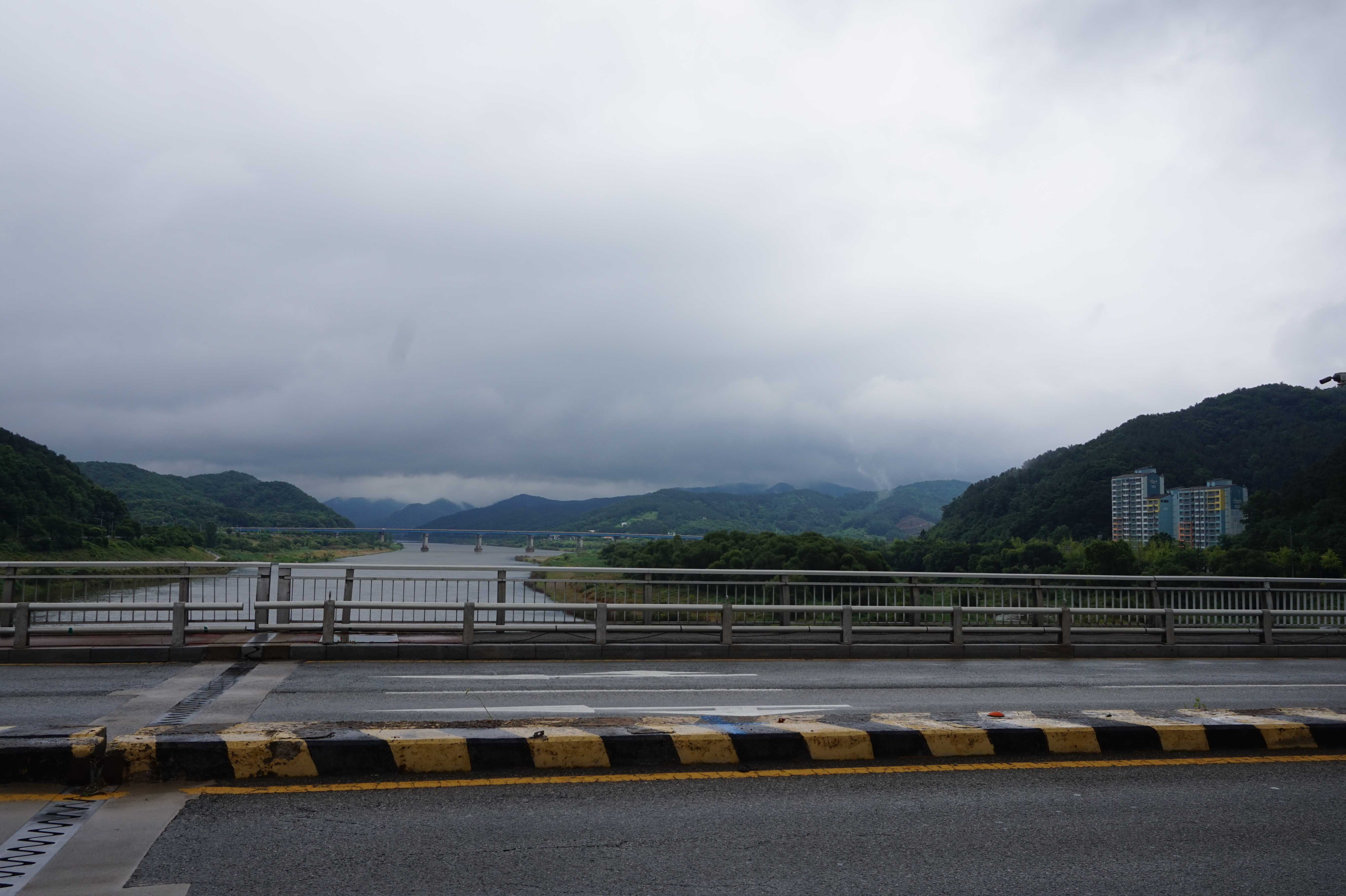 공주행 첫차로 공주터미널에 도착하여 옥룡동 주민센터 정류장으로 도보이동중 공주대교에서 본 금강의 모습