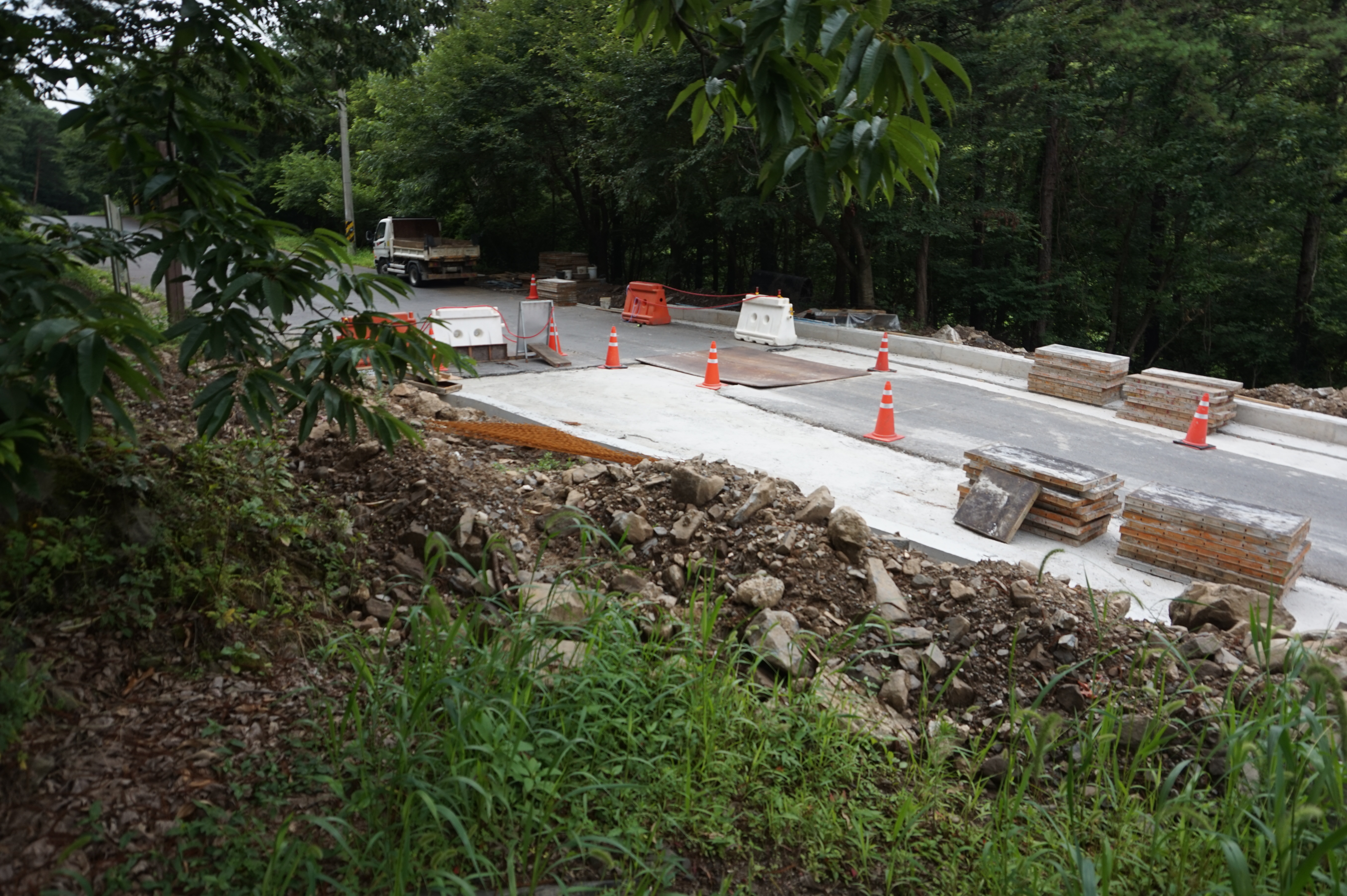 일부 공사중인 미암사 연결되는 세멘트 임도를 만나고
