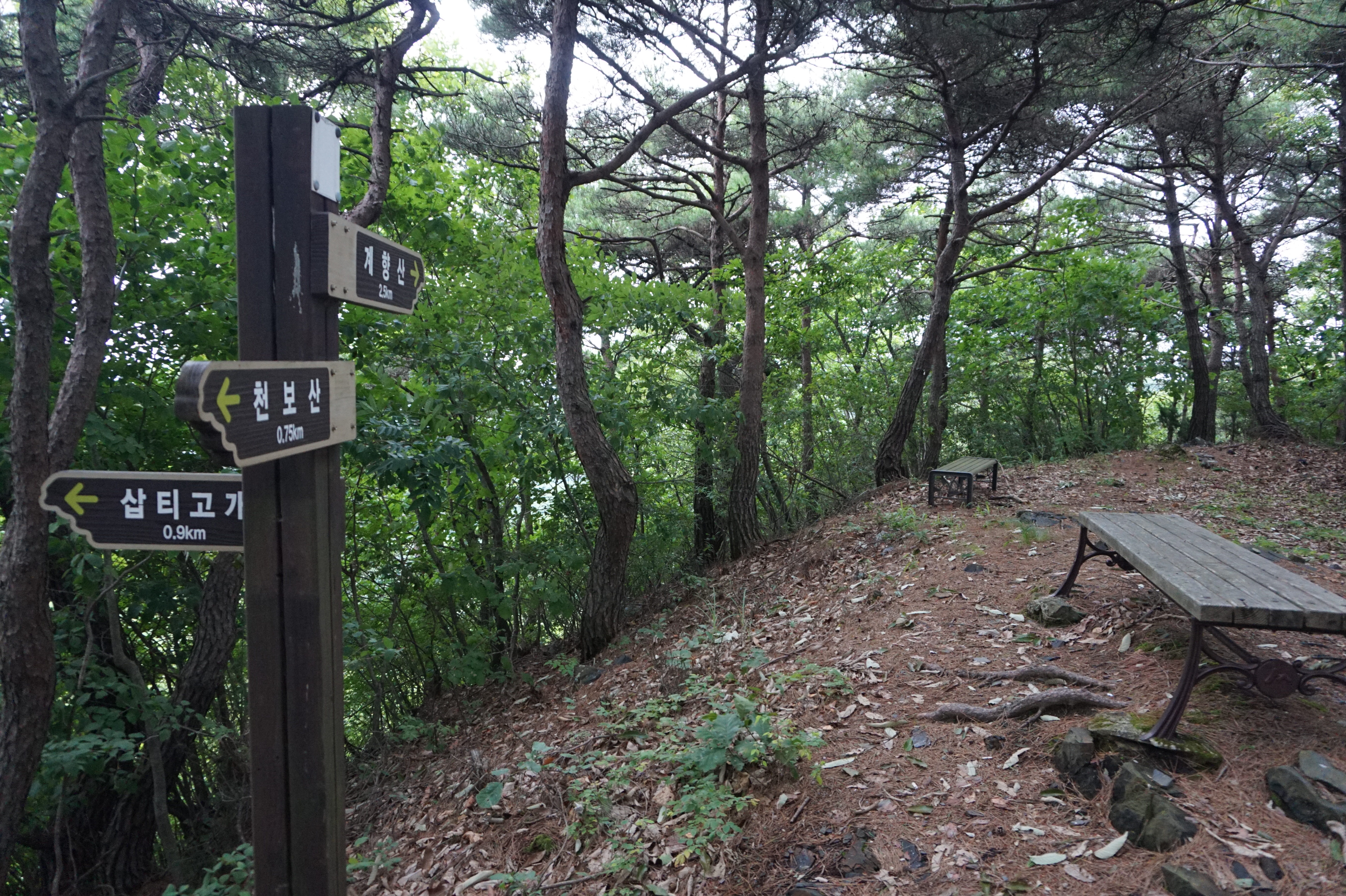 위 장소에서 400미터쯤 이동한 이곳에서 우측으로 삽티고개 0.9키로, 삽티고개에서 올라왔으면 쉽고 천보산 왕복이