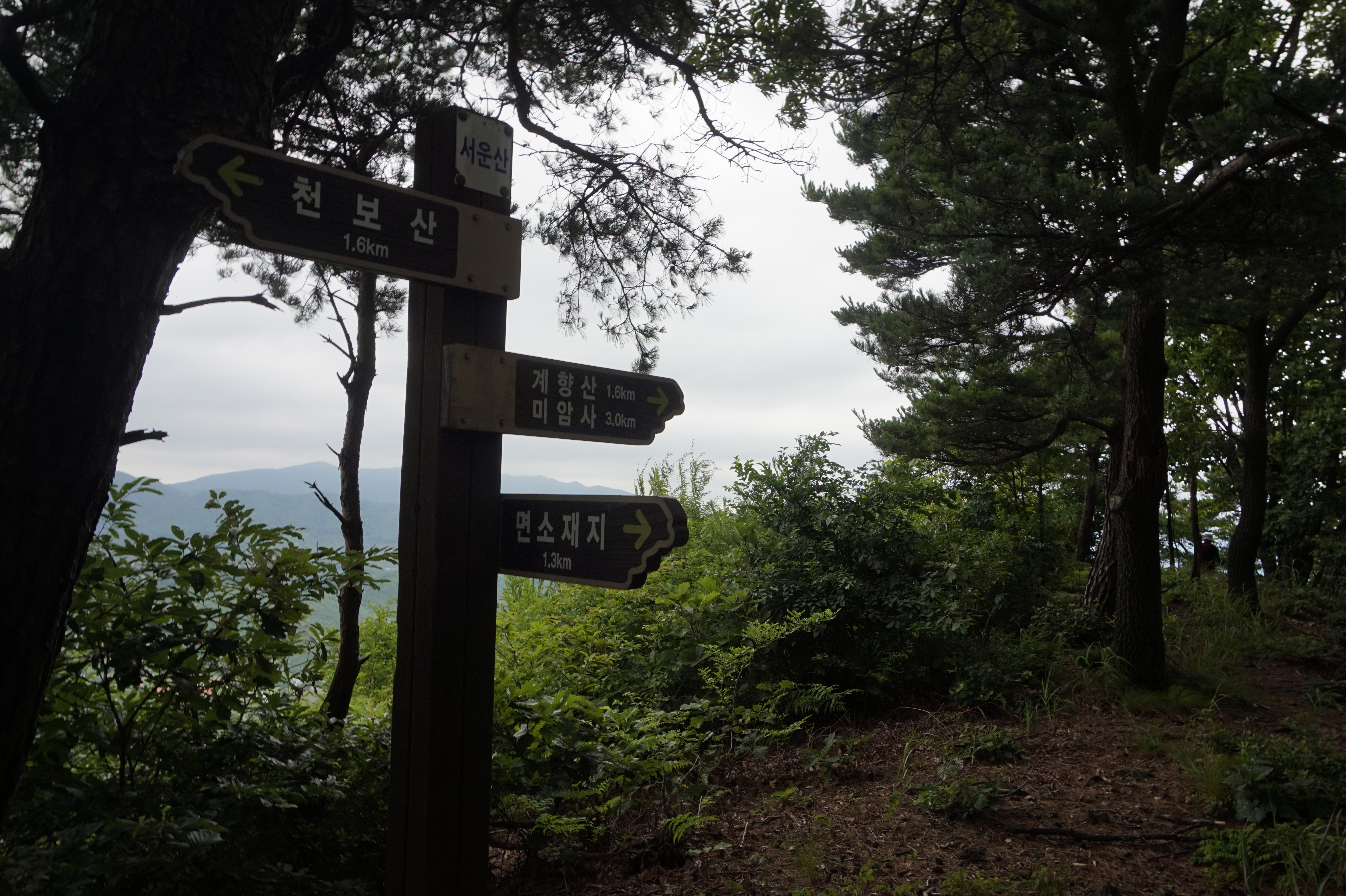 산행코스 : 금지리 - 배나무골 - 삼거리 - 천보산(왕복) - 서운산 - 임도 이정표 - 계향산 - 임도 - 미암사 (약 9키로)