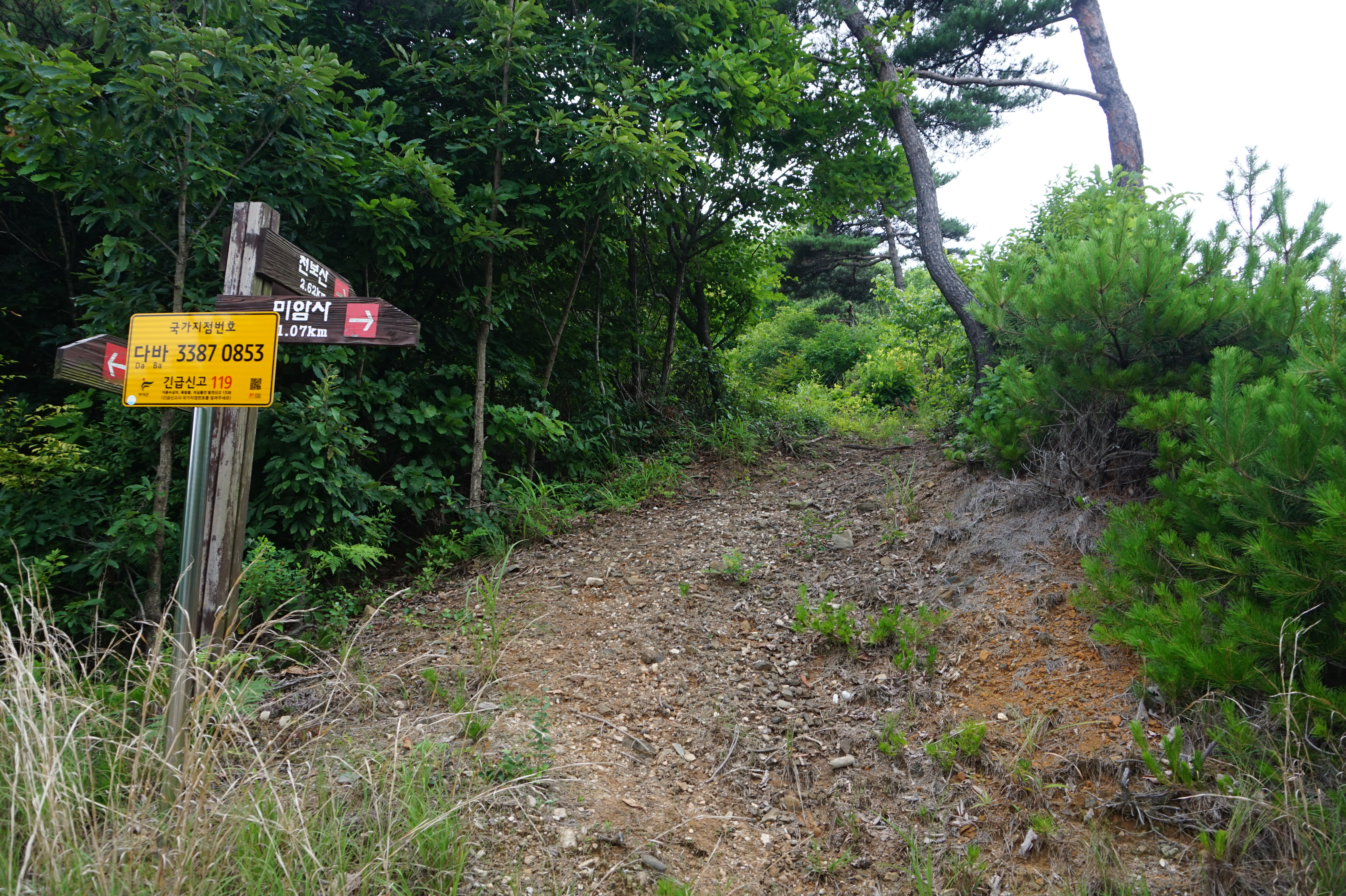 임도를 만나 바로 앞에서 다시 오르는데 이곳에서 좌측으로 미암사를 갈수있어 일부회원들은 임도로 진행하고