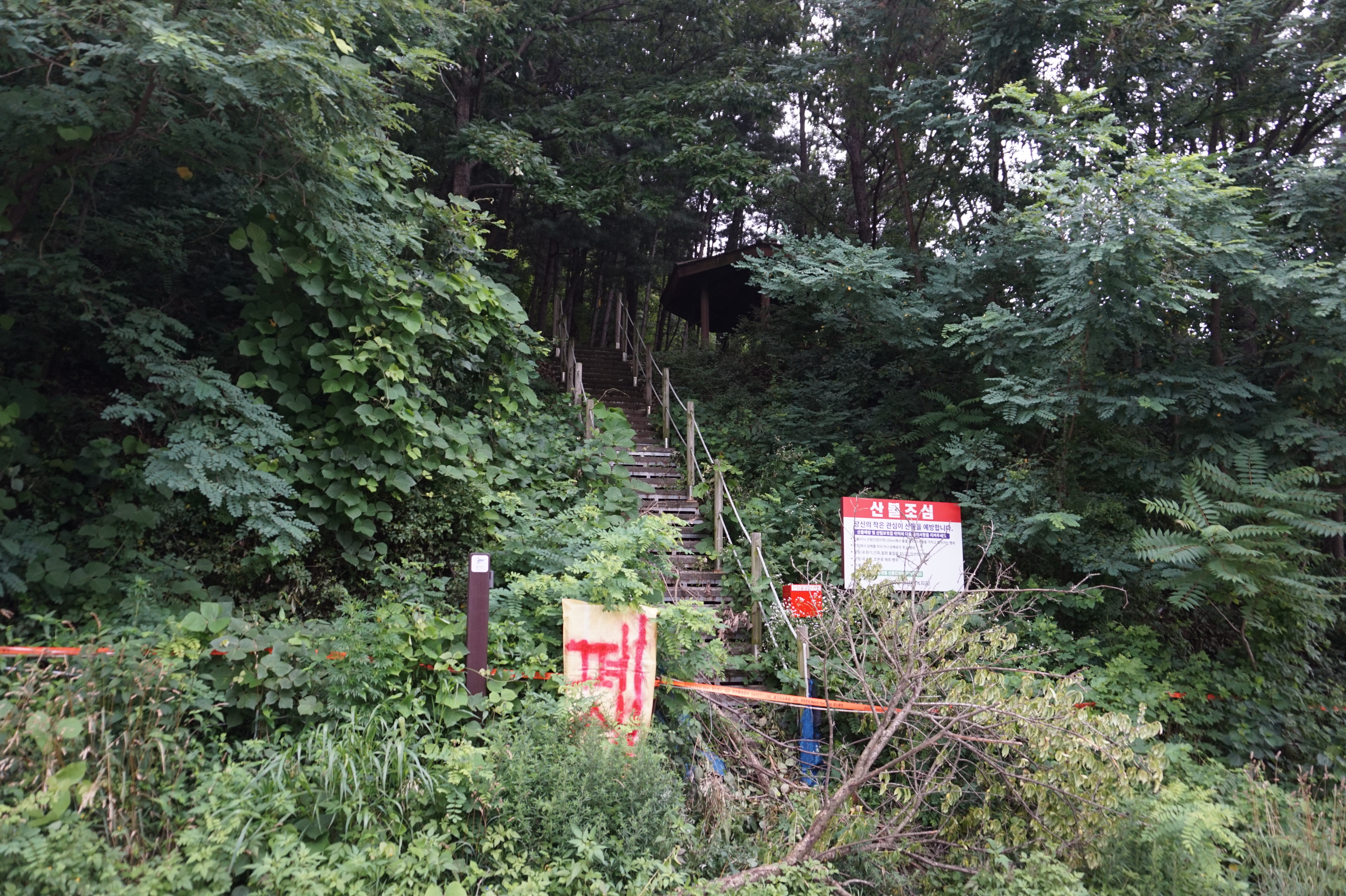 예전엔 이쪽으로 올랐었고, 막아놨지만 적당히 진행하는데 왠 차량이 갑자기 나타나더니 개인땅이라고 못가게 막아