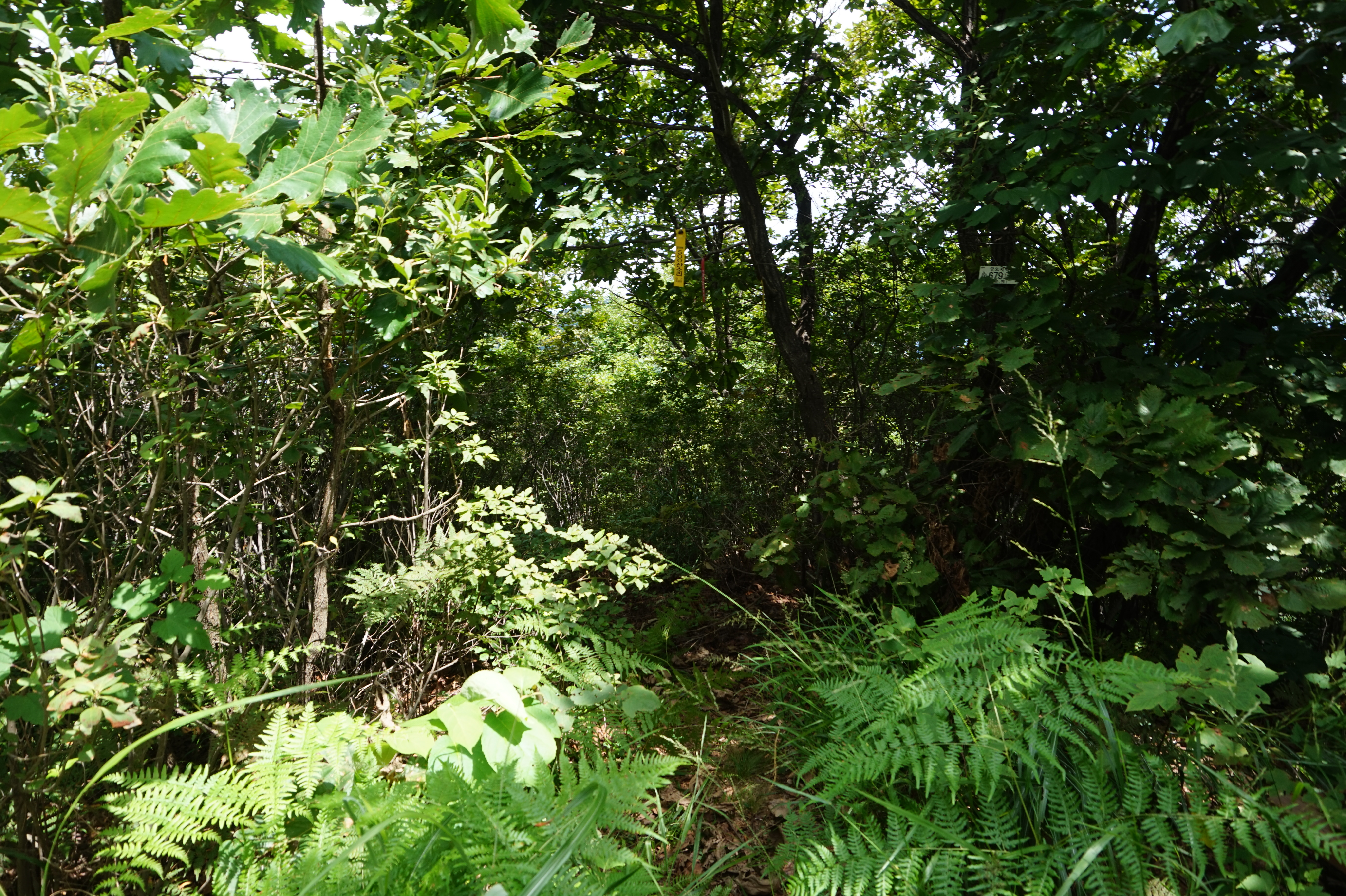 우측아래 벌목지 보이는 별미령에서 좌측으로 올라온 능선길이 보이고 우측뒤 고당산에서 남쪽으로 흘러내린 능선
