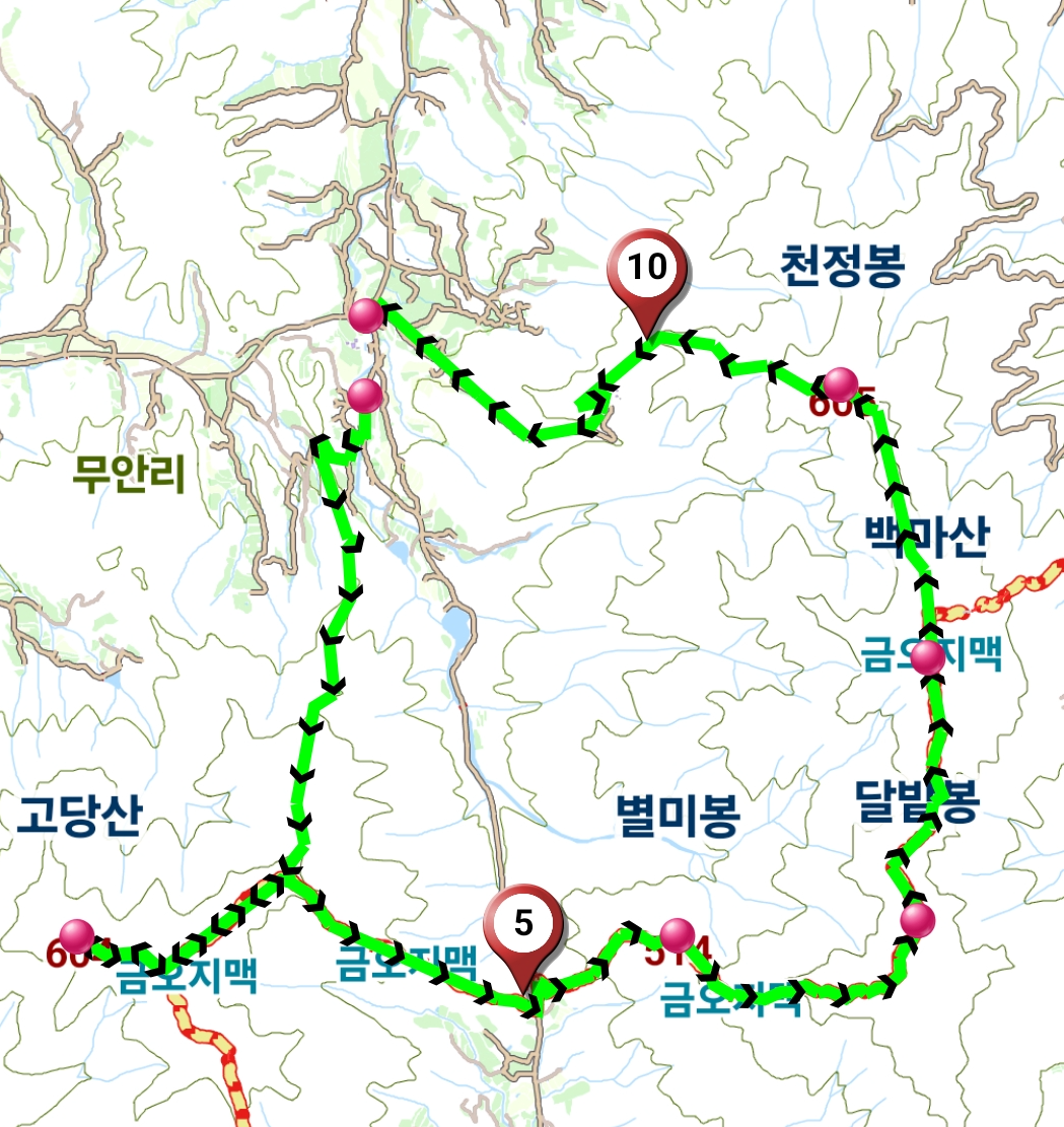 산행코스 : 별미령 - 별미봉 - 달밭봉 - 백마산 - 전망대(왕복)- 628봉 - 천정봉 - 고방사 - 봉곡리 백마수퍼(약 7.3키로)