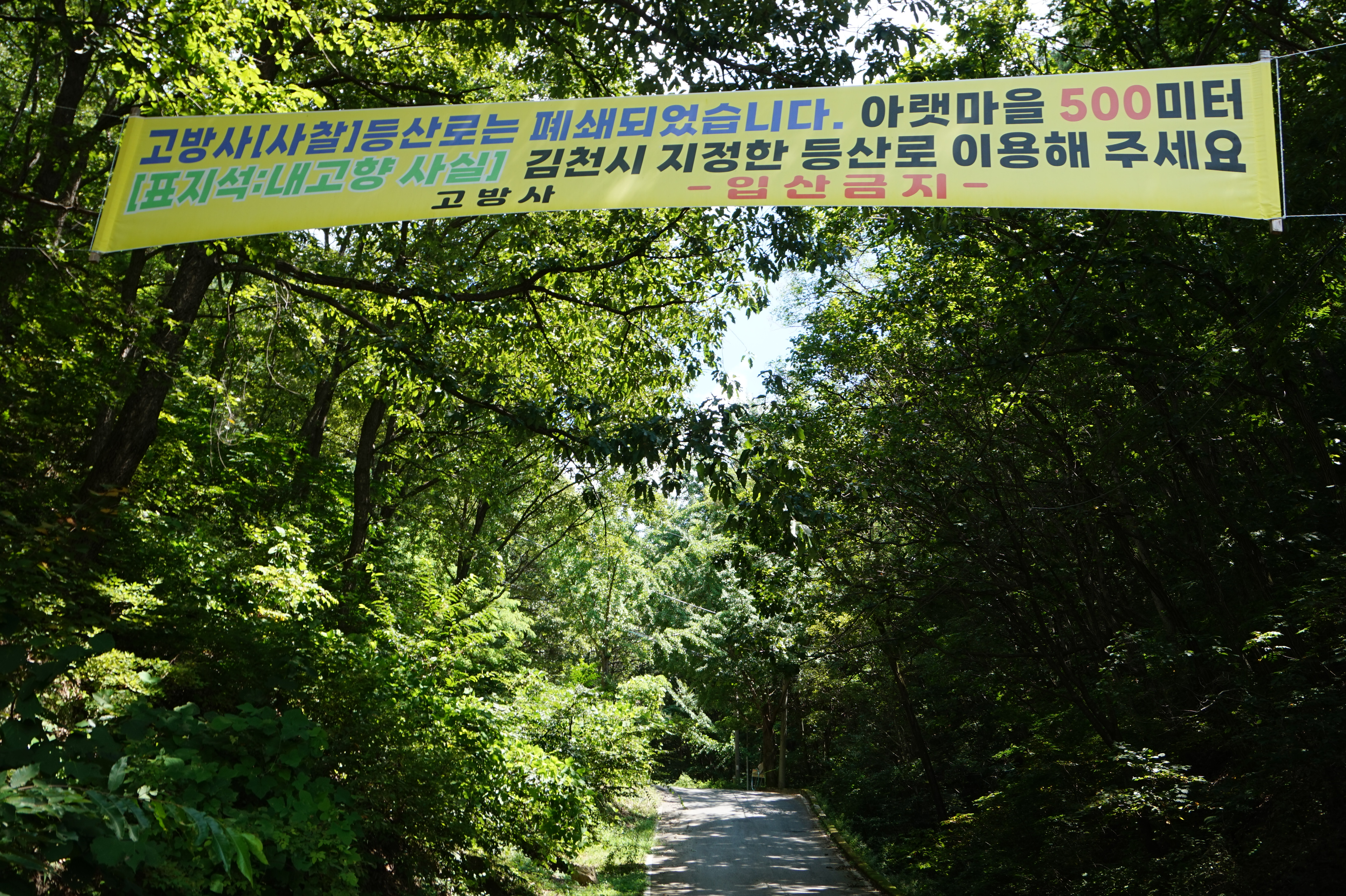 돌아보니 고방사 등산로는 폐쇄됐다는 현수막이 붙어있습니다