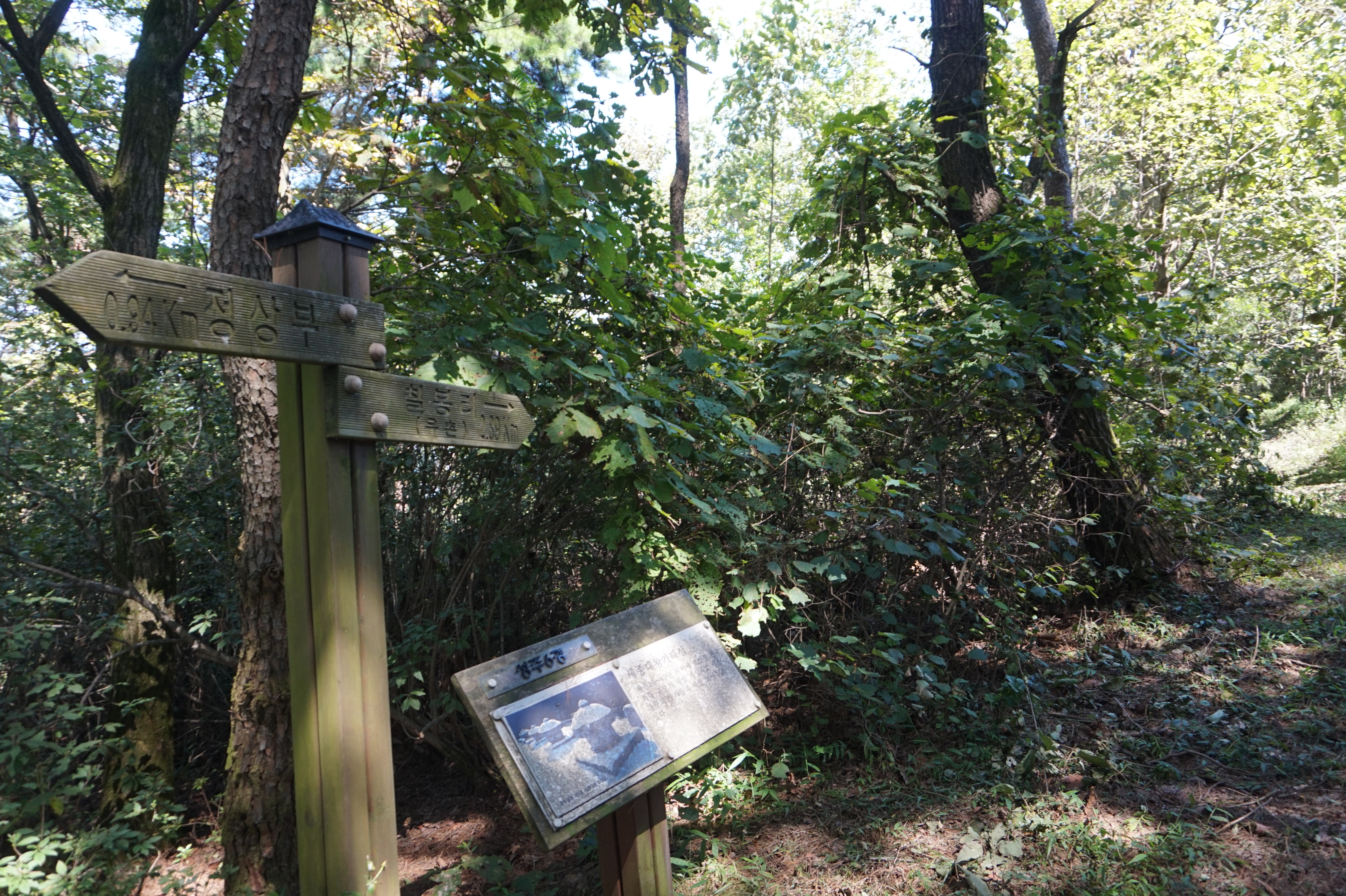 516봉에서 앱지도 트랙따라 대충 하산하니 나무계단도 만나고, 다시 임도를 만나 진행하다 만나는 이정표