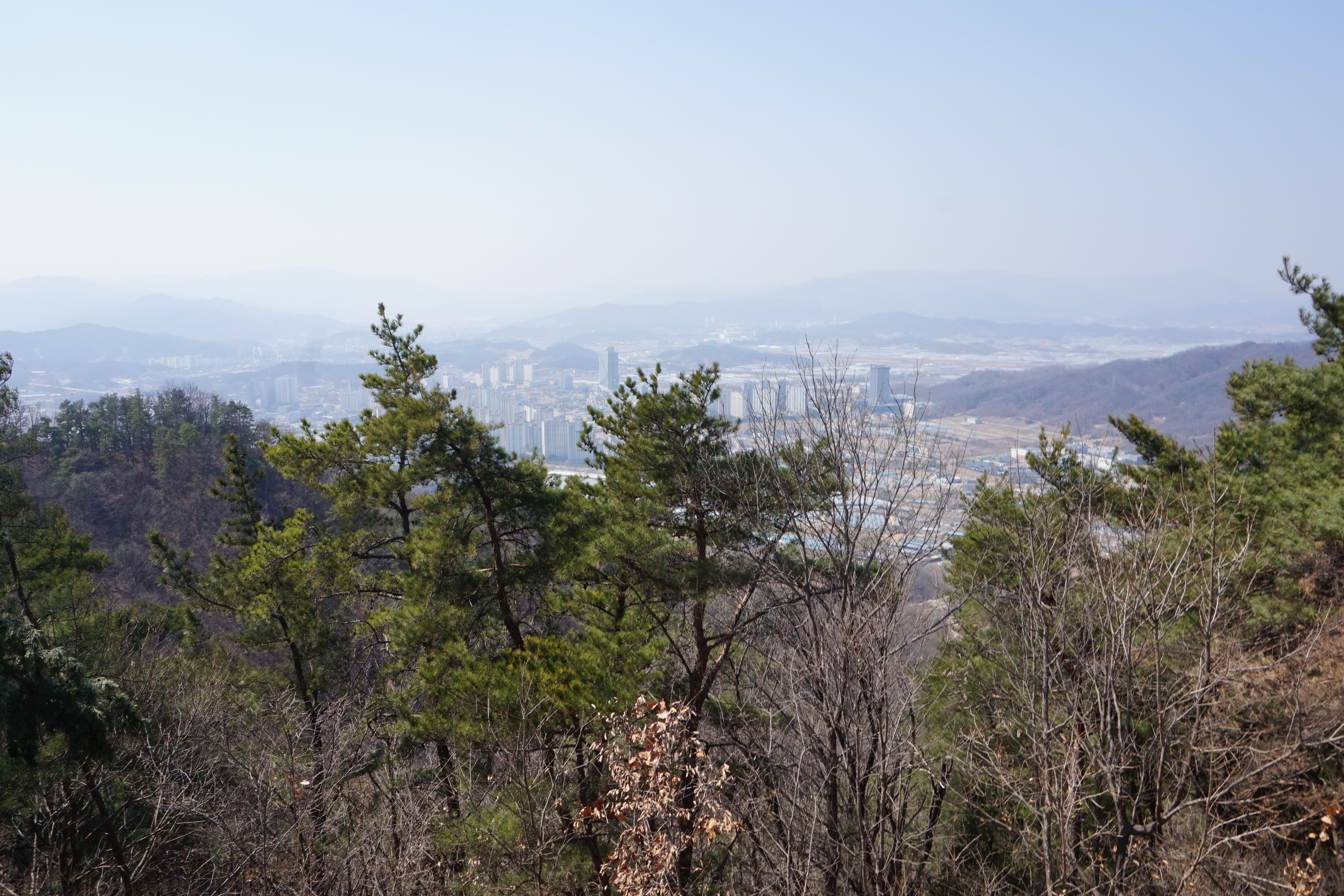 구미 금오산과 우측 나무뒤 영암산이 보이고 (동남방향)