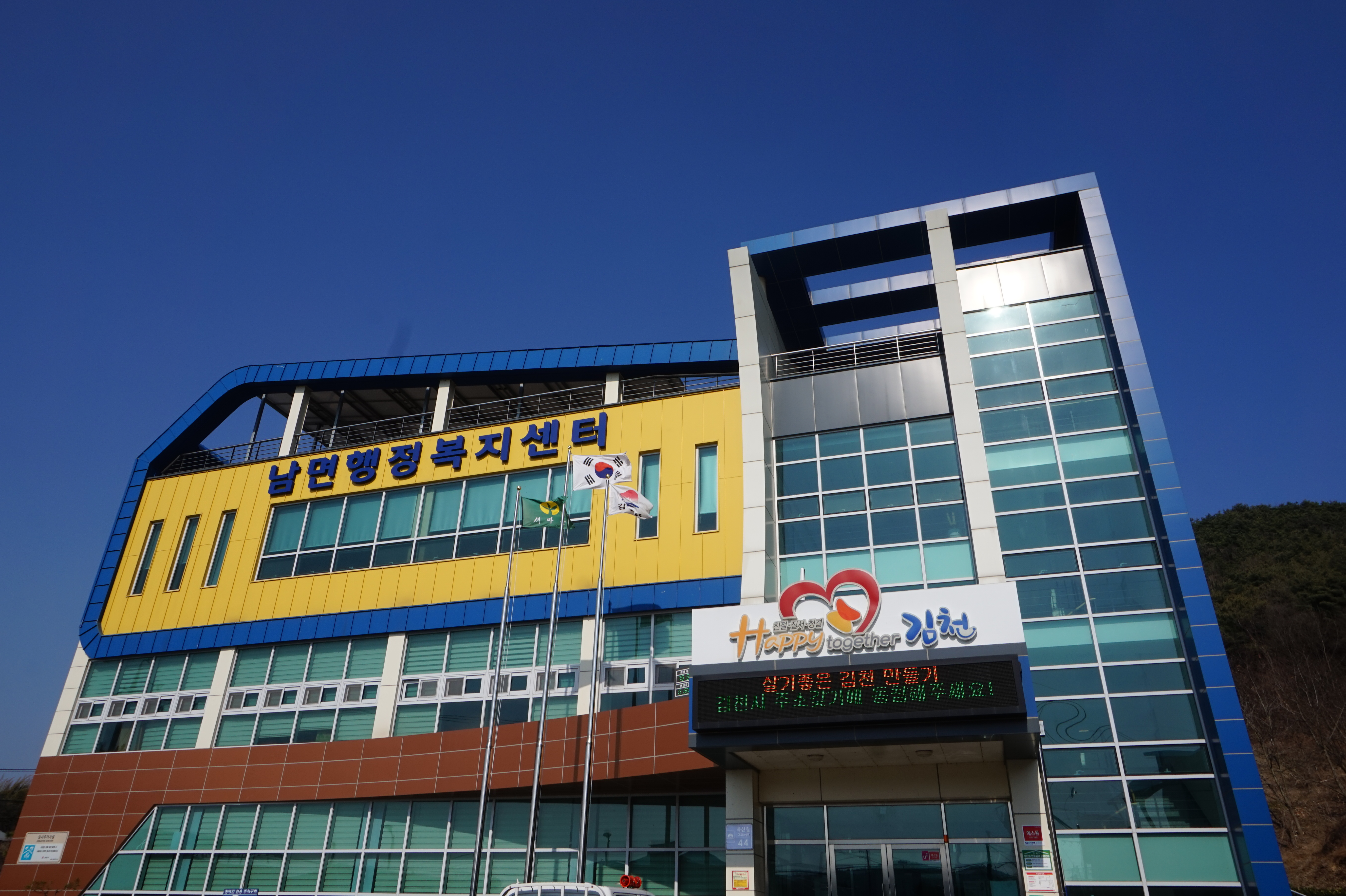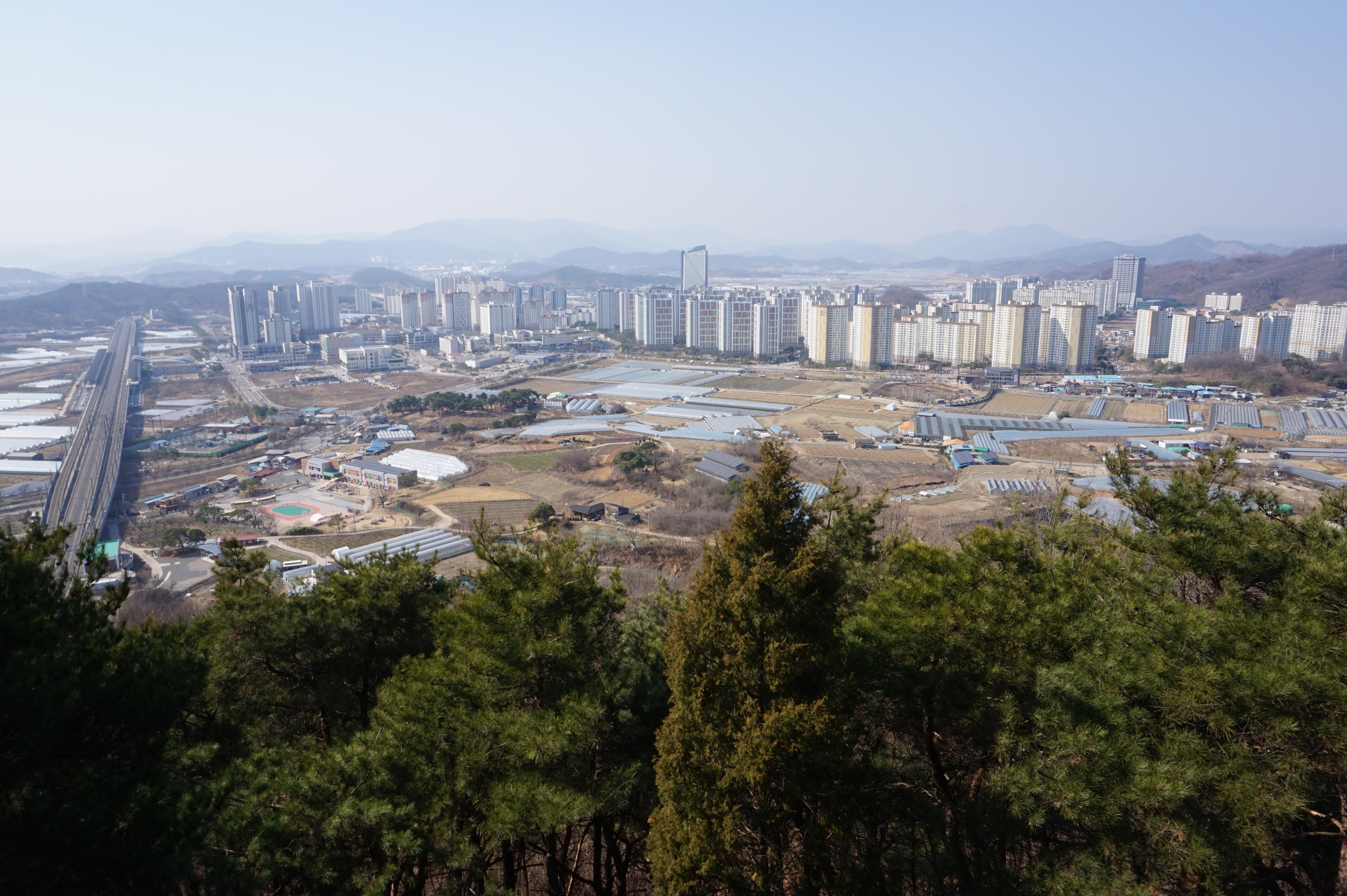 좌측에 고속철도와 김천시 아파트들이 보이고