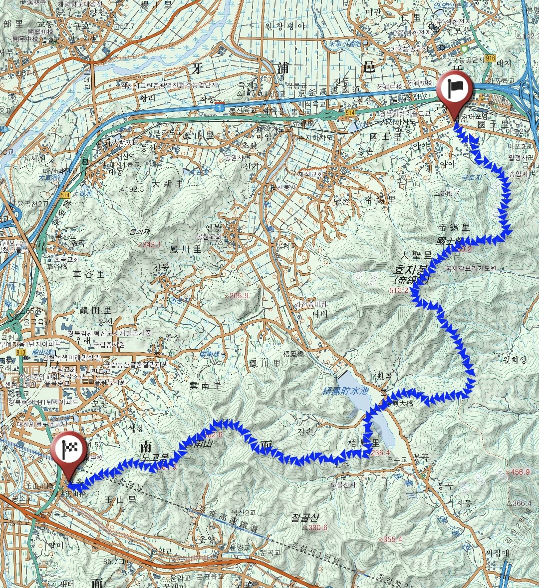 산행코스 : 국사리 - 헬기장 - 국사봉 - 제석봉 - 삼거리 - 오봉대교 - 운남산 - 노고봉 - 남면행정복지센터 (약 14.1키로)