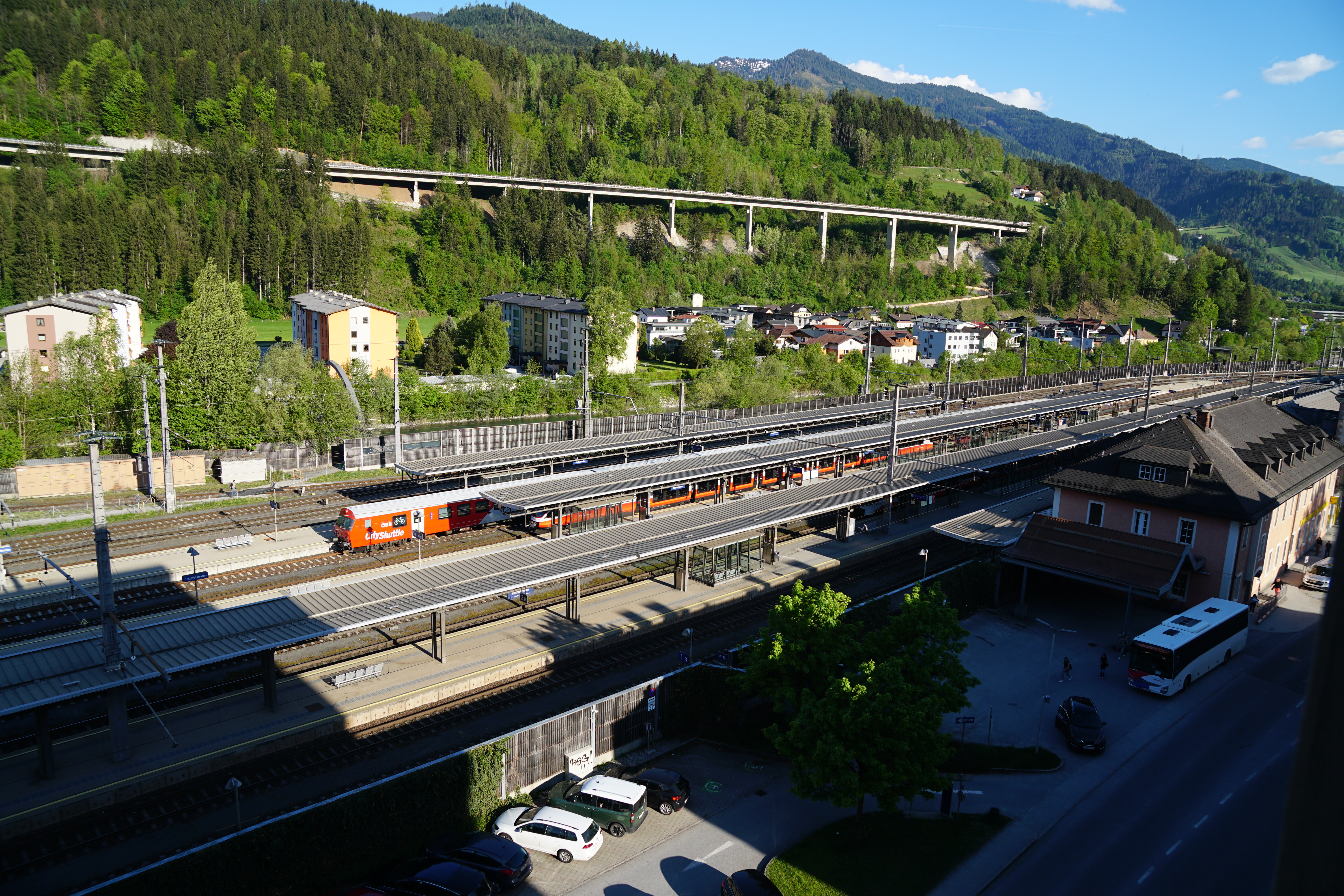 숙소에서 본, 비쇼프스호펜역 / 소금, 통나무도 운반하고 우리에 지하철역 비슷한 많은 사람들이 이용합니다