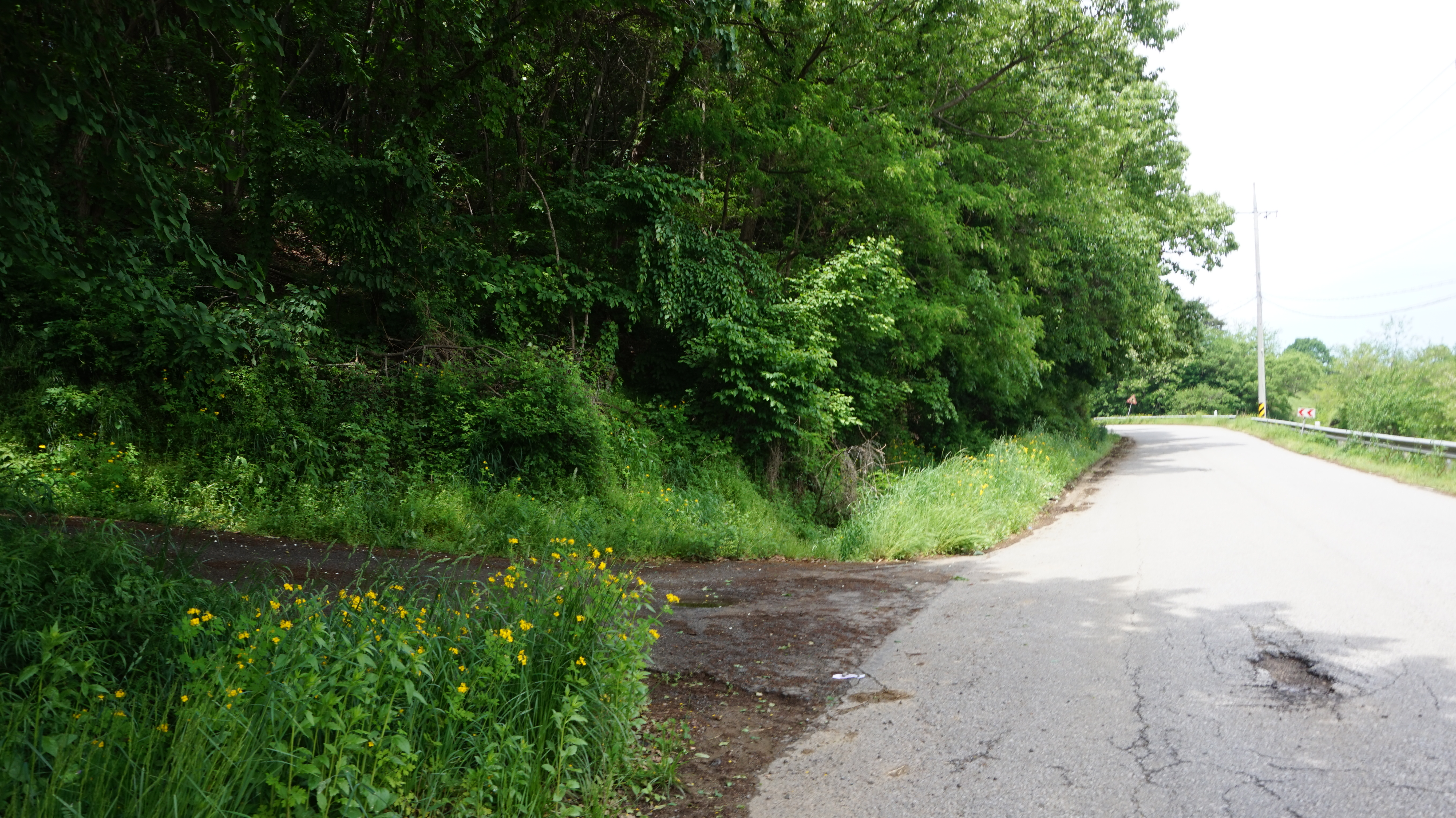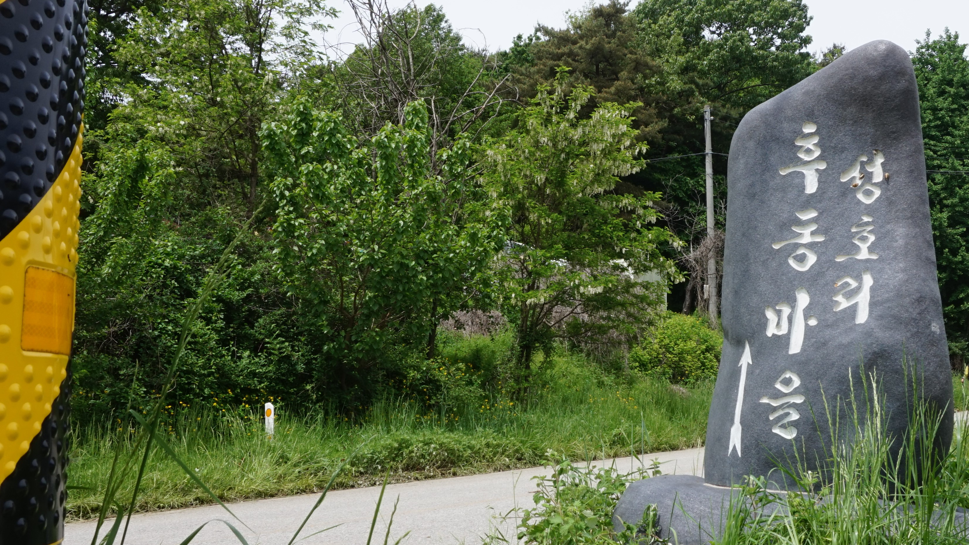 위 마을 표지석에서 50미터쯤 진행한 이곳에서 좌측으로 가고 잠시후 우측 산쪽으로 오릅니다