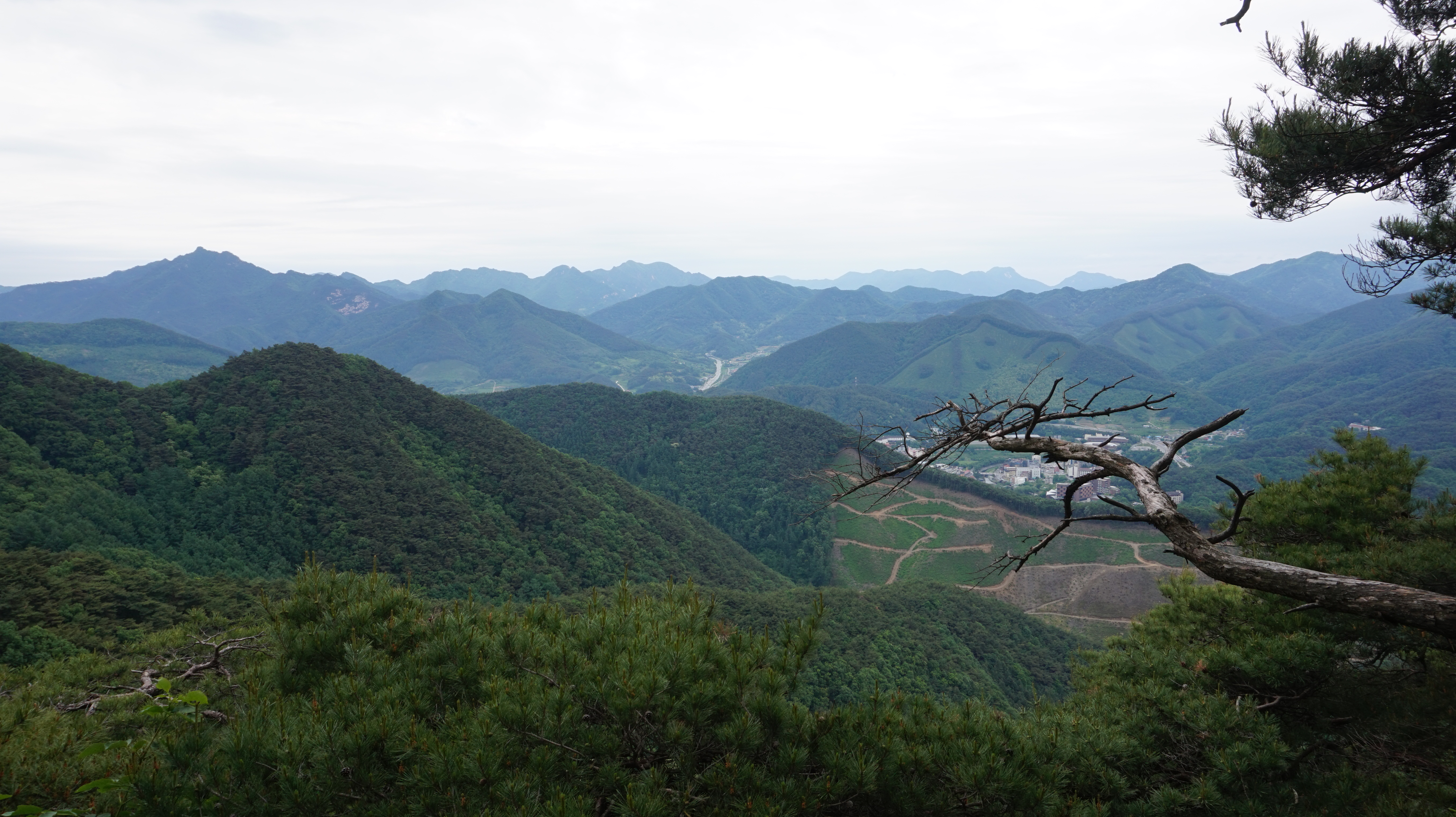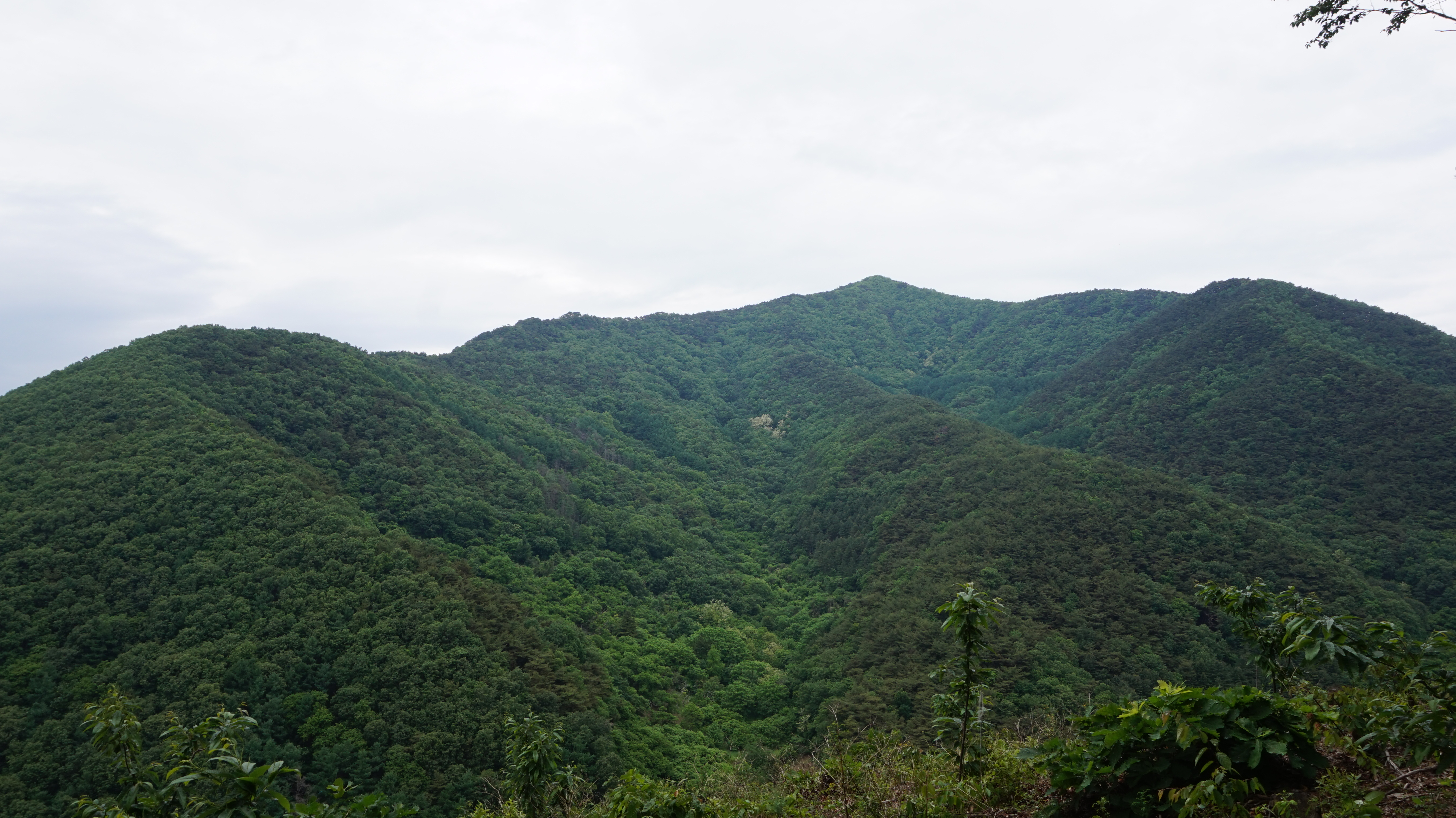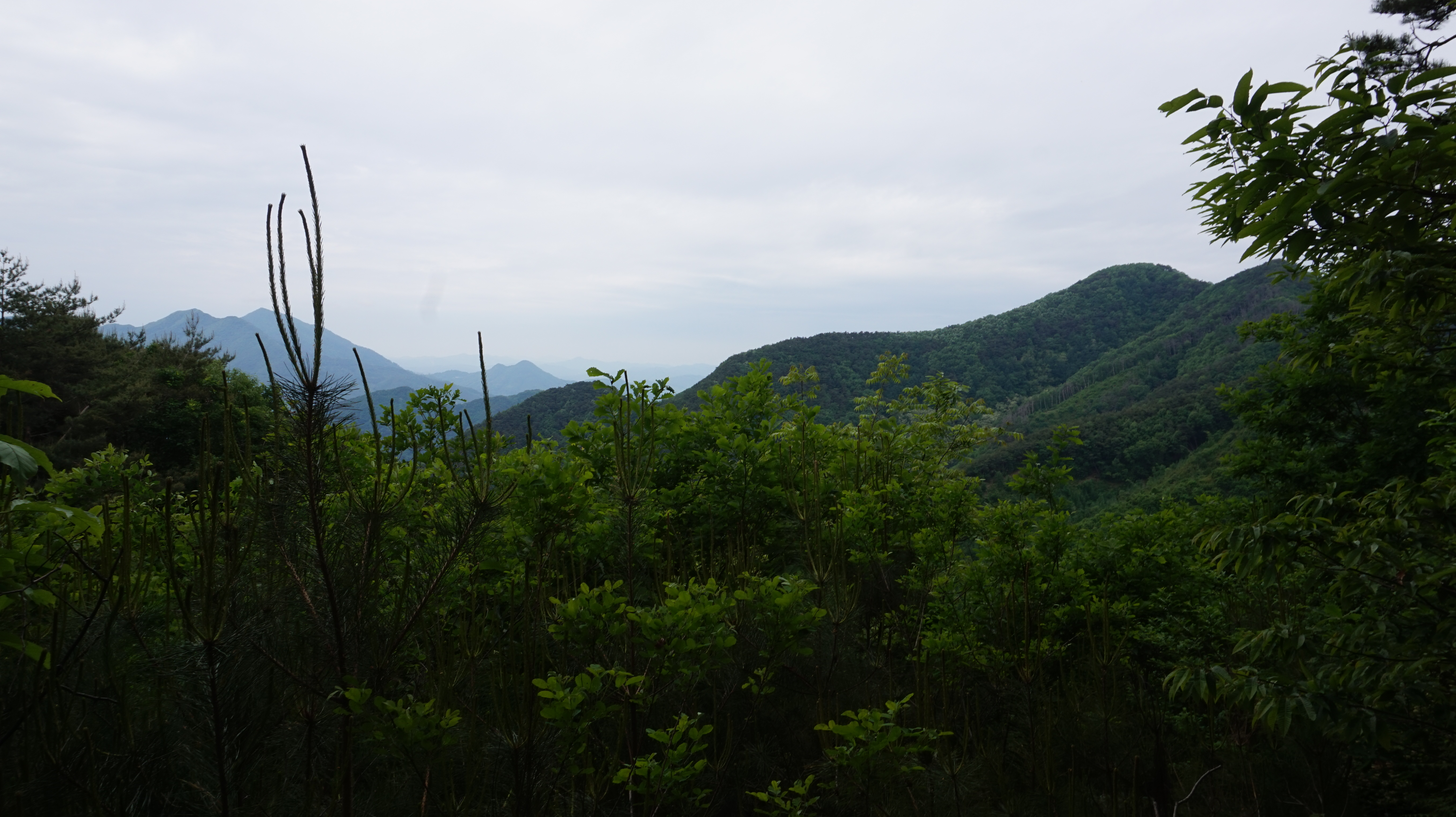 진행방향 좌측으로 약간 뾰족히 보이는 적보산 정상부