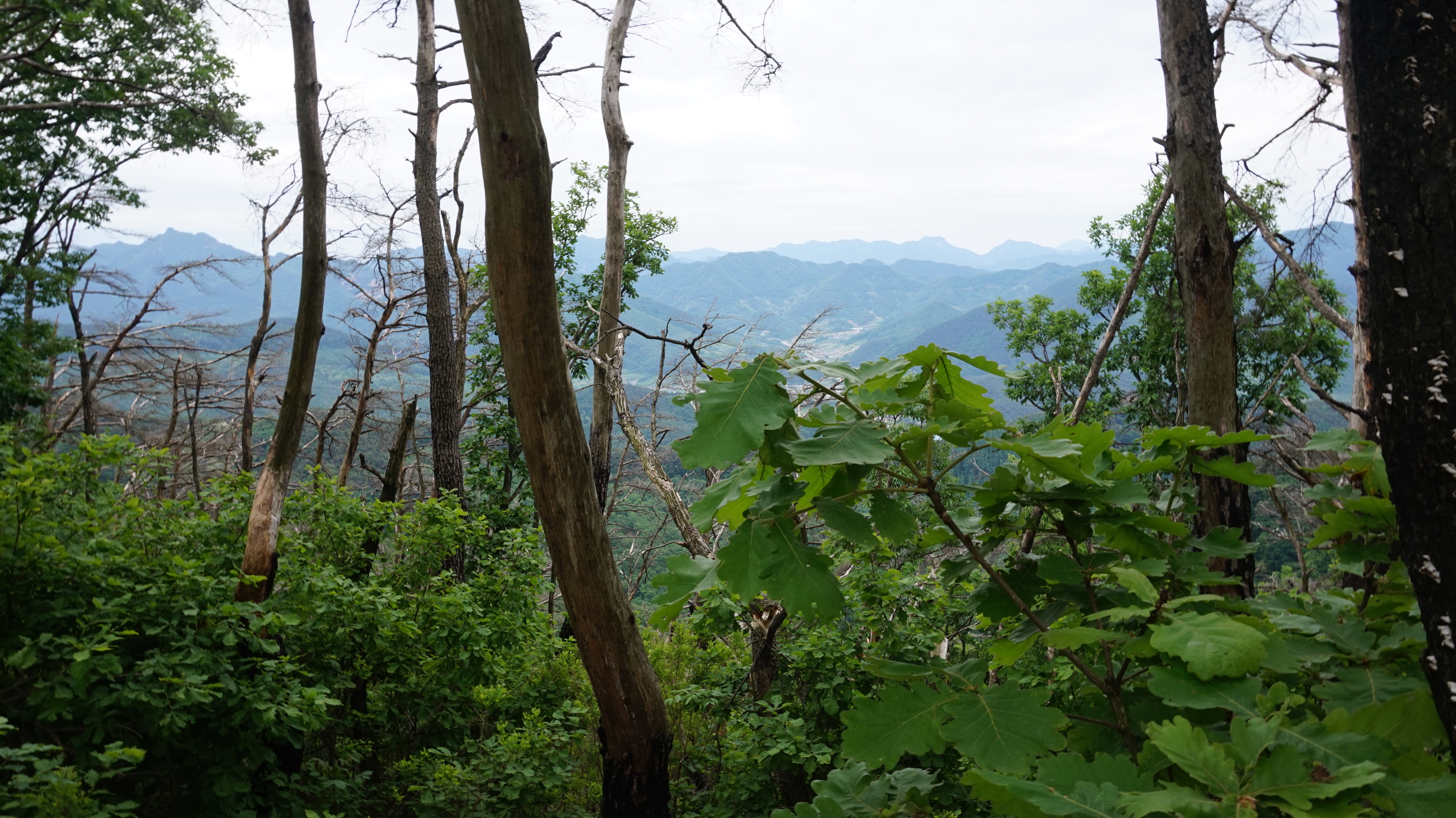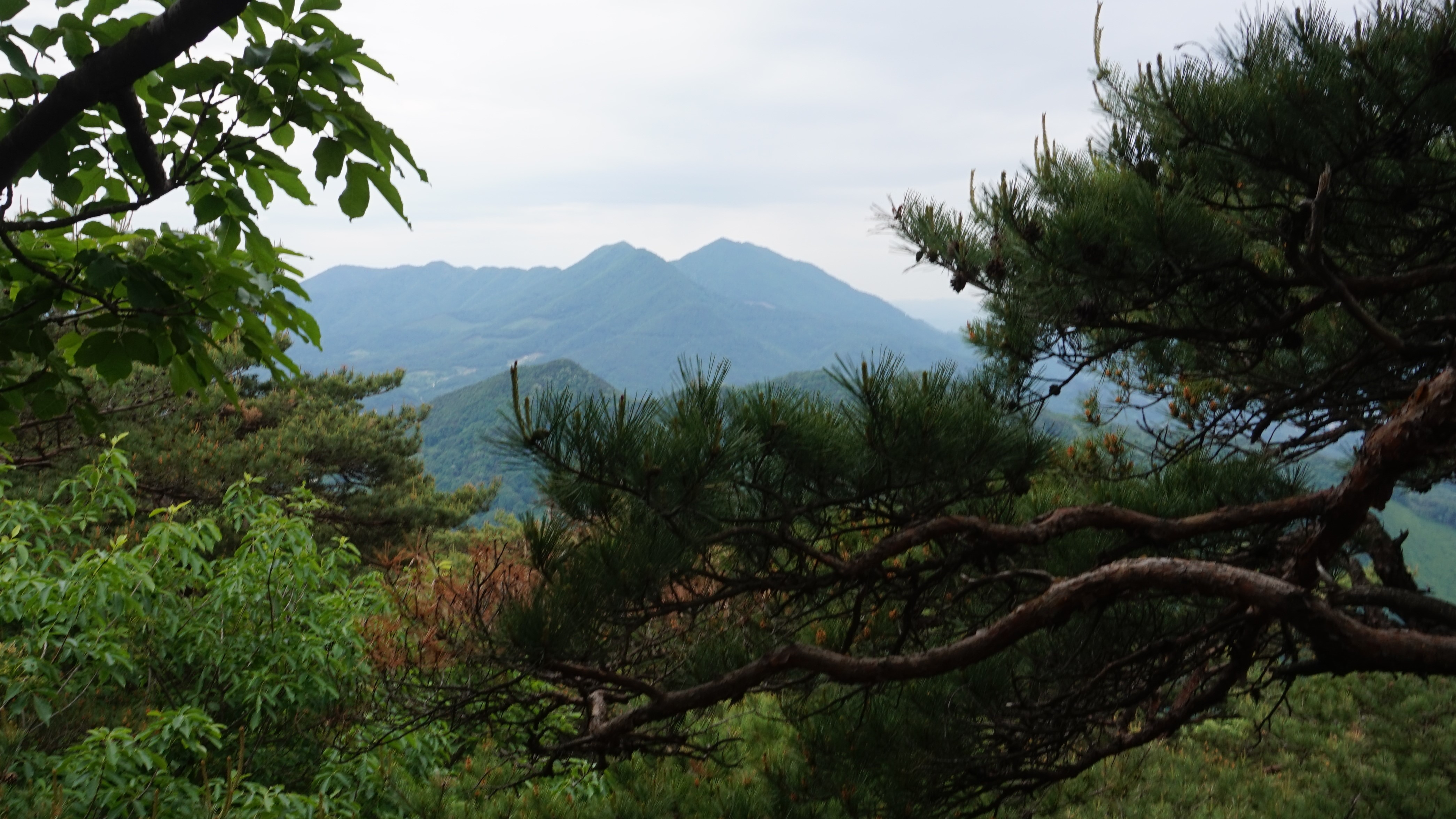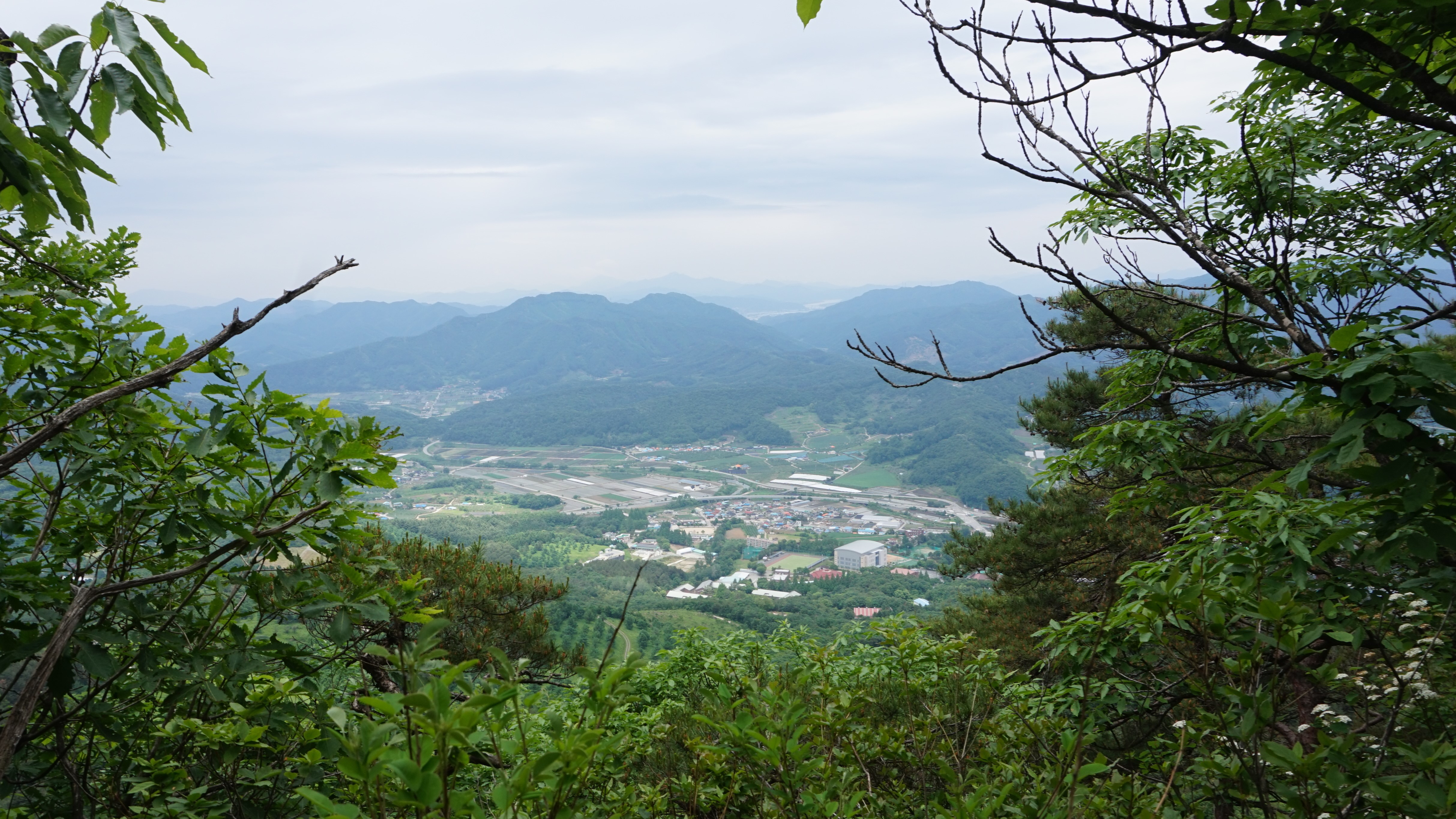 진행방향 좌측으로 약간 뾰족히 보이는 적보산 정상부