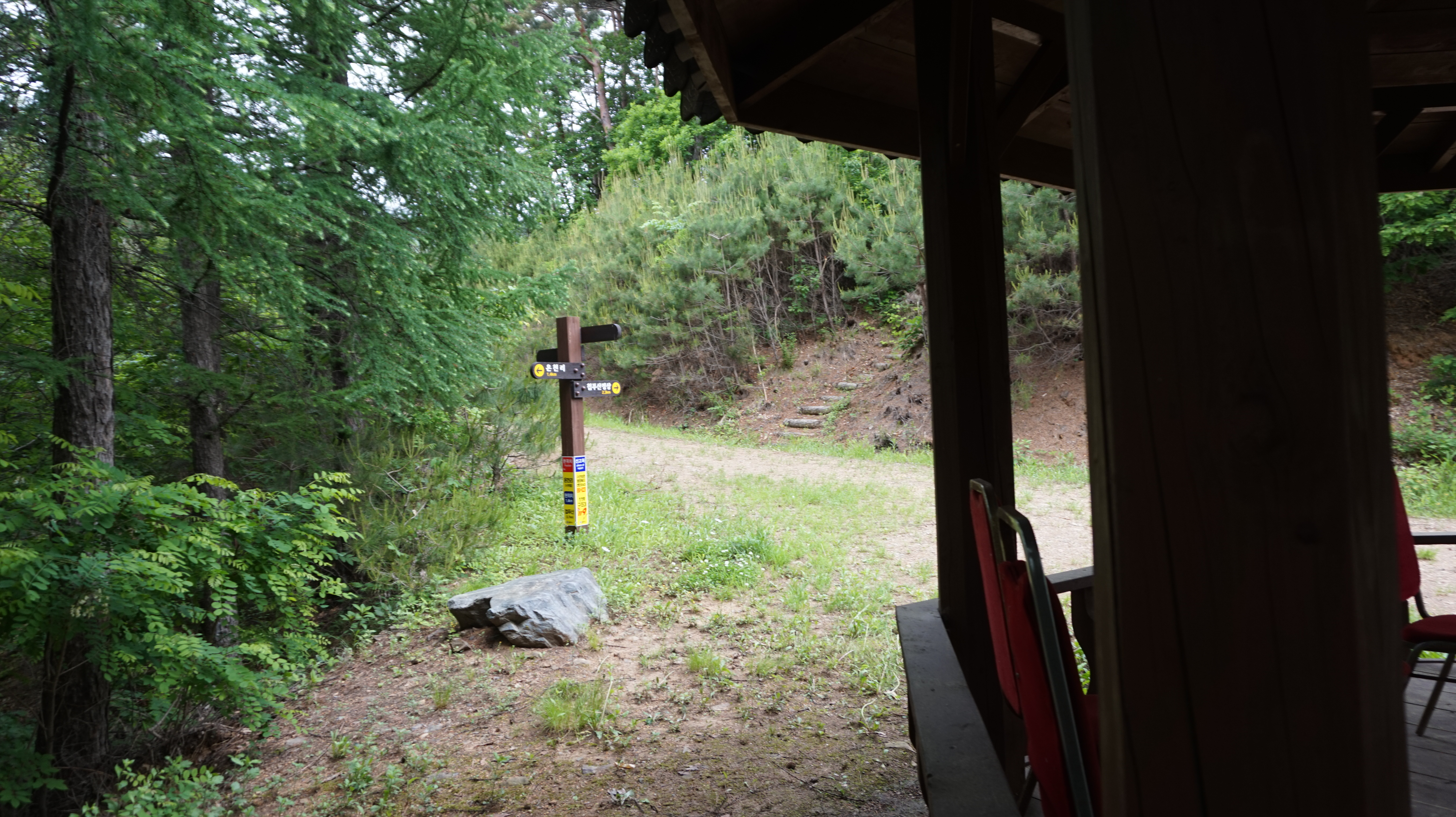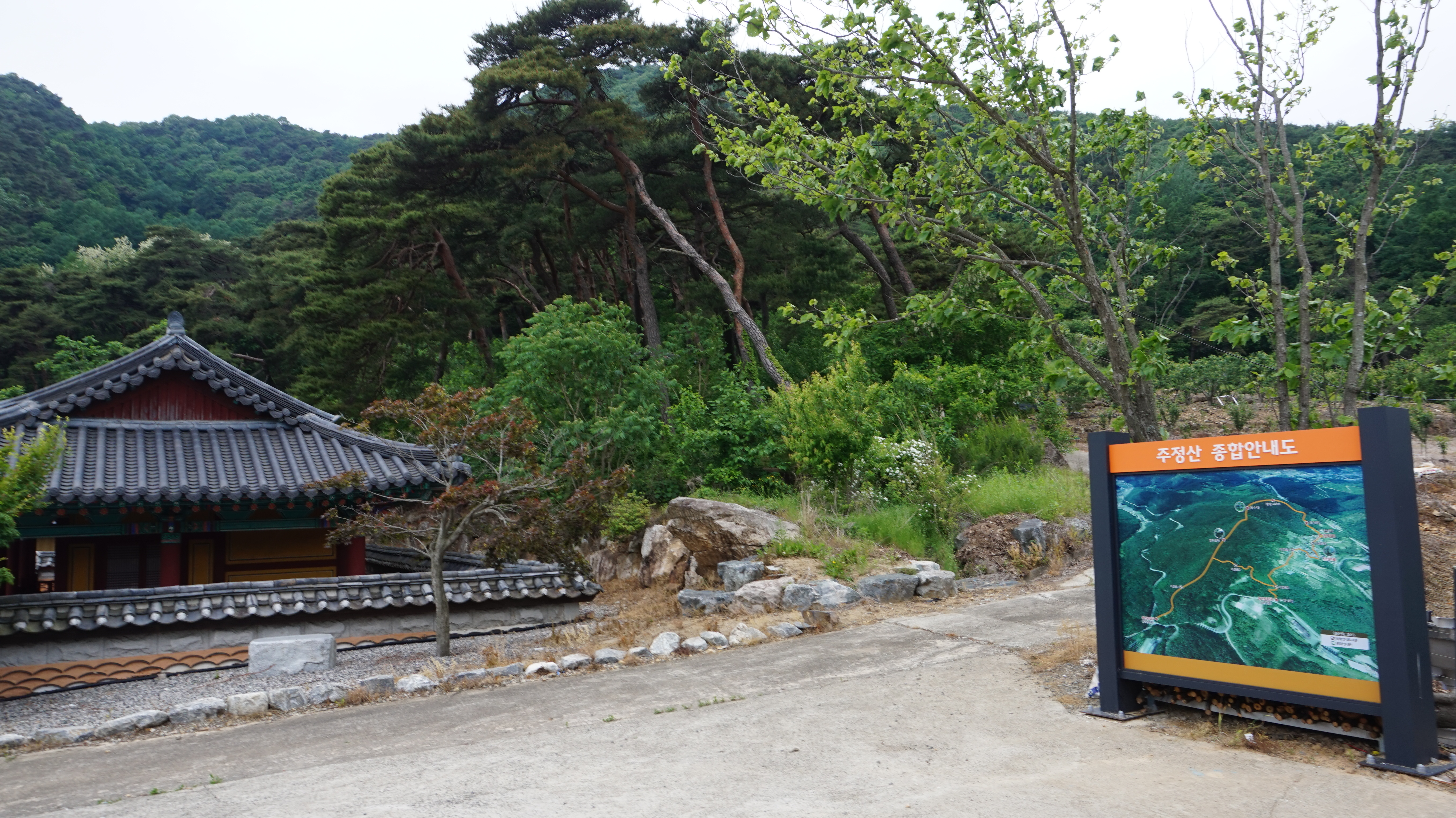 주정소교 건너 약간 진행후 파란색 조형물앞에서 좌측 능선으로 붙여서 약간 진행후 만나는 사각정자