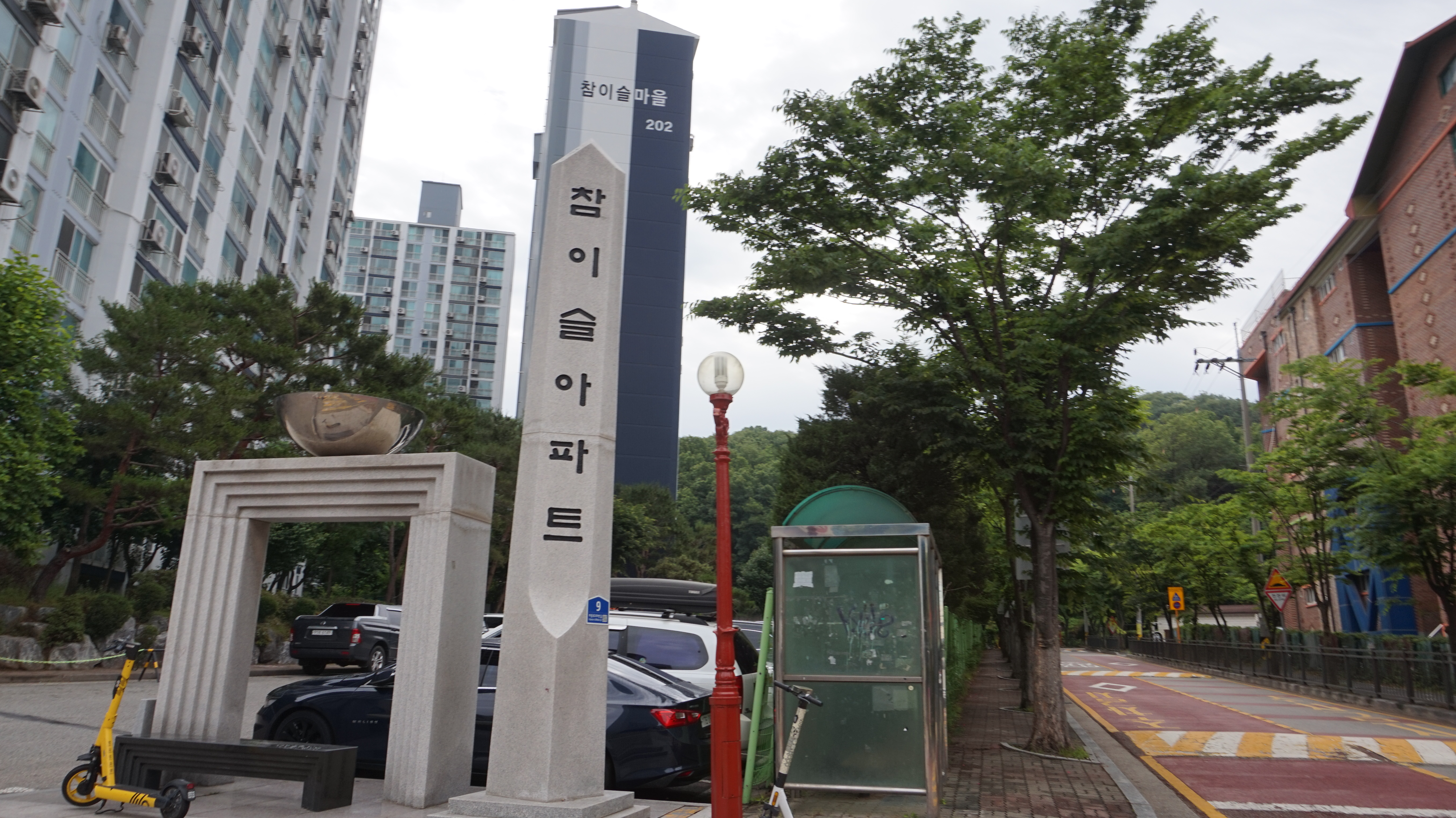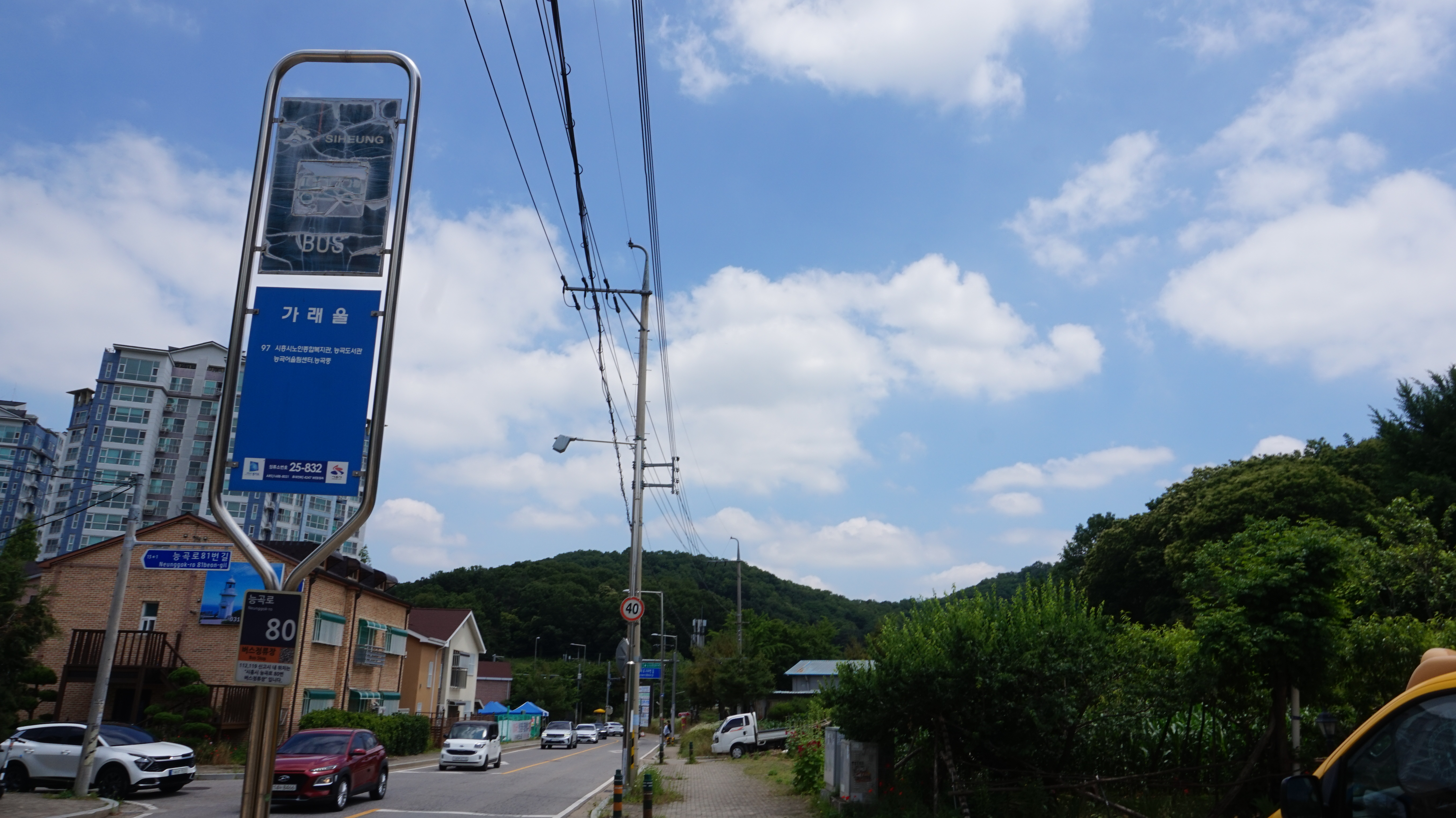 사당역 4번출구 정류장에서 3301버스로 30분남짓에 도착한 샛말대우 참이슬아파트 정류장입니다 (08:45)