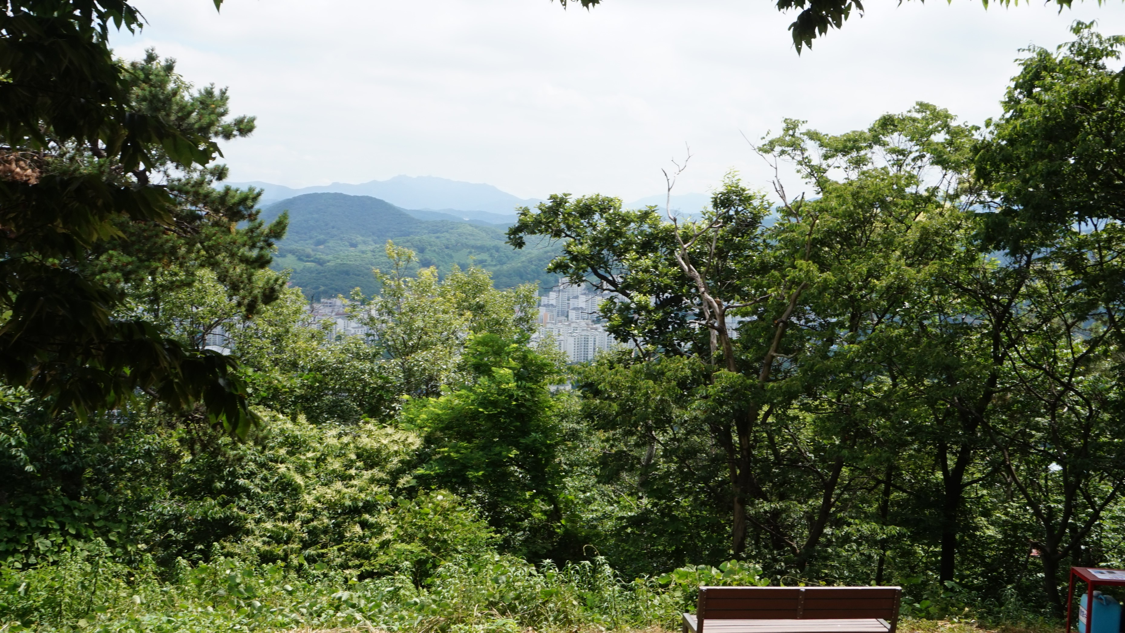 지나온, 좌측에 대우푸르지오와 우측에 군자봉이 보이고