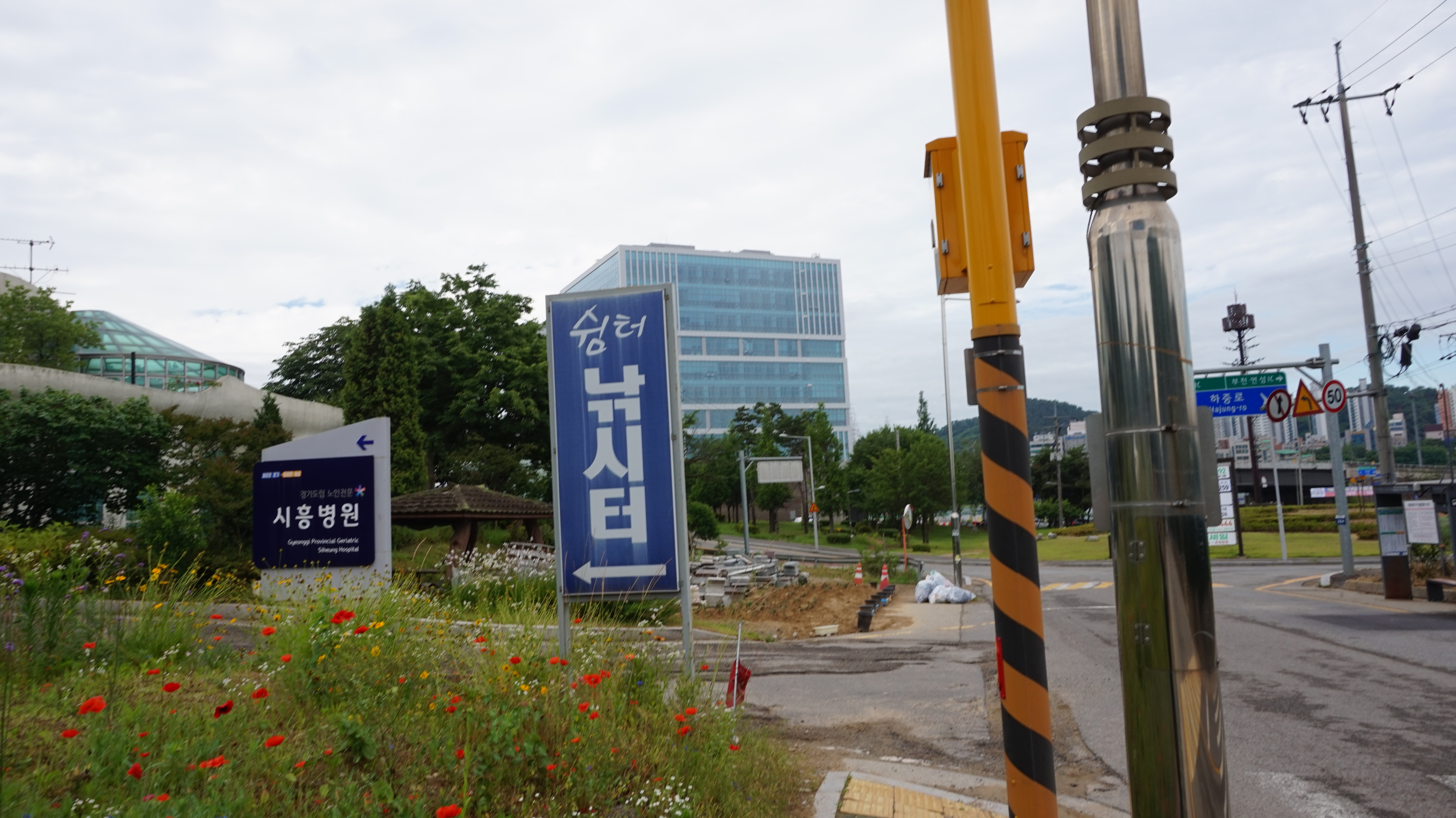 길걸너 좌측, 노인전문 시흥병원 방향으로 갑니다