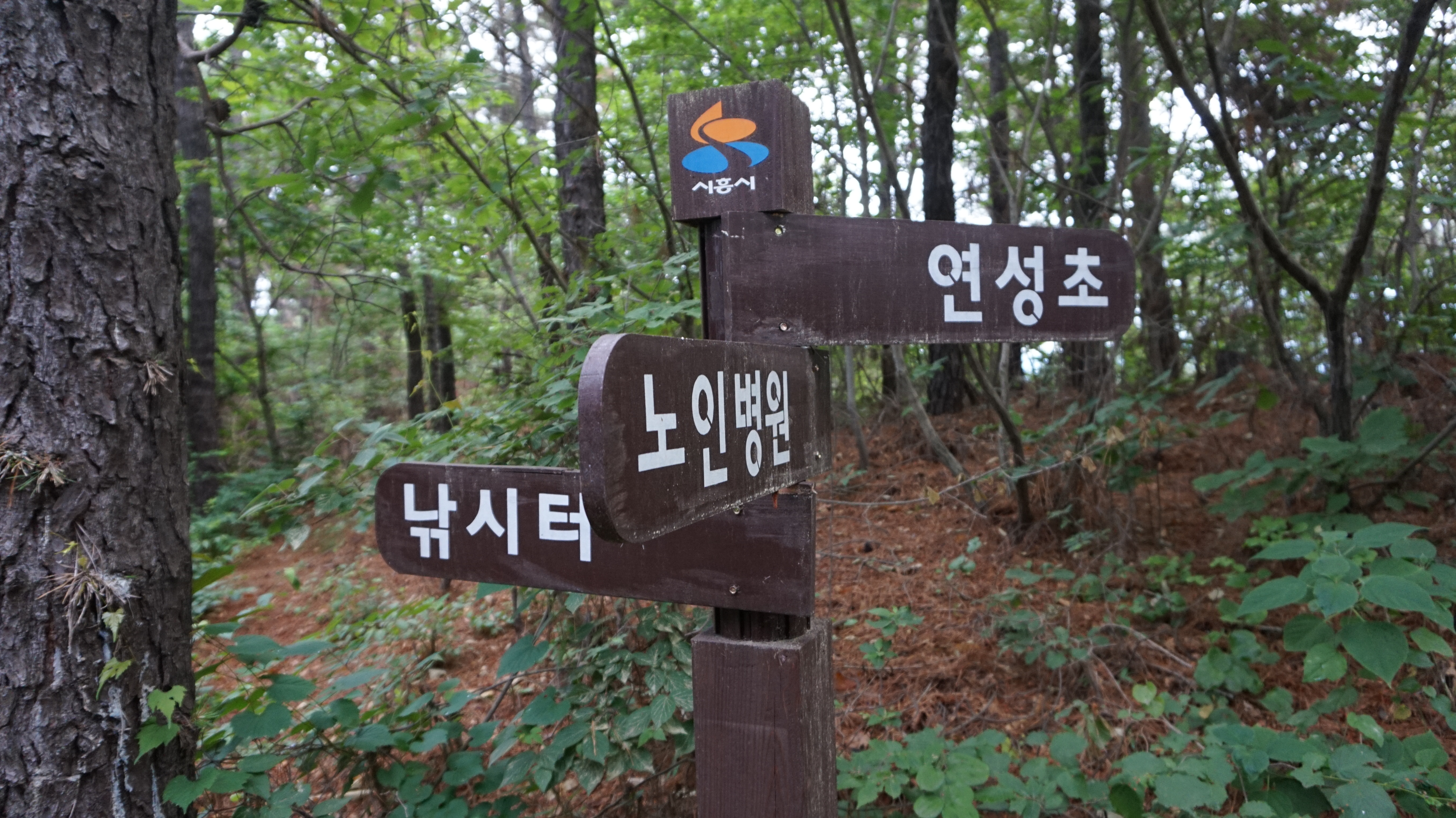 여기 이정표를 보니 아마 노인전문 시흥병원에서 낚시터쪽으로 돌아서 오르게 돼있나 봅니다