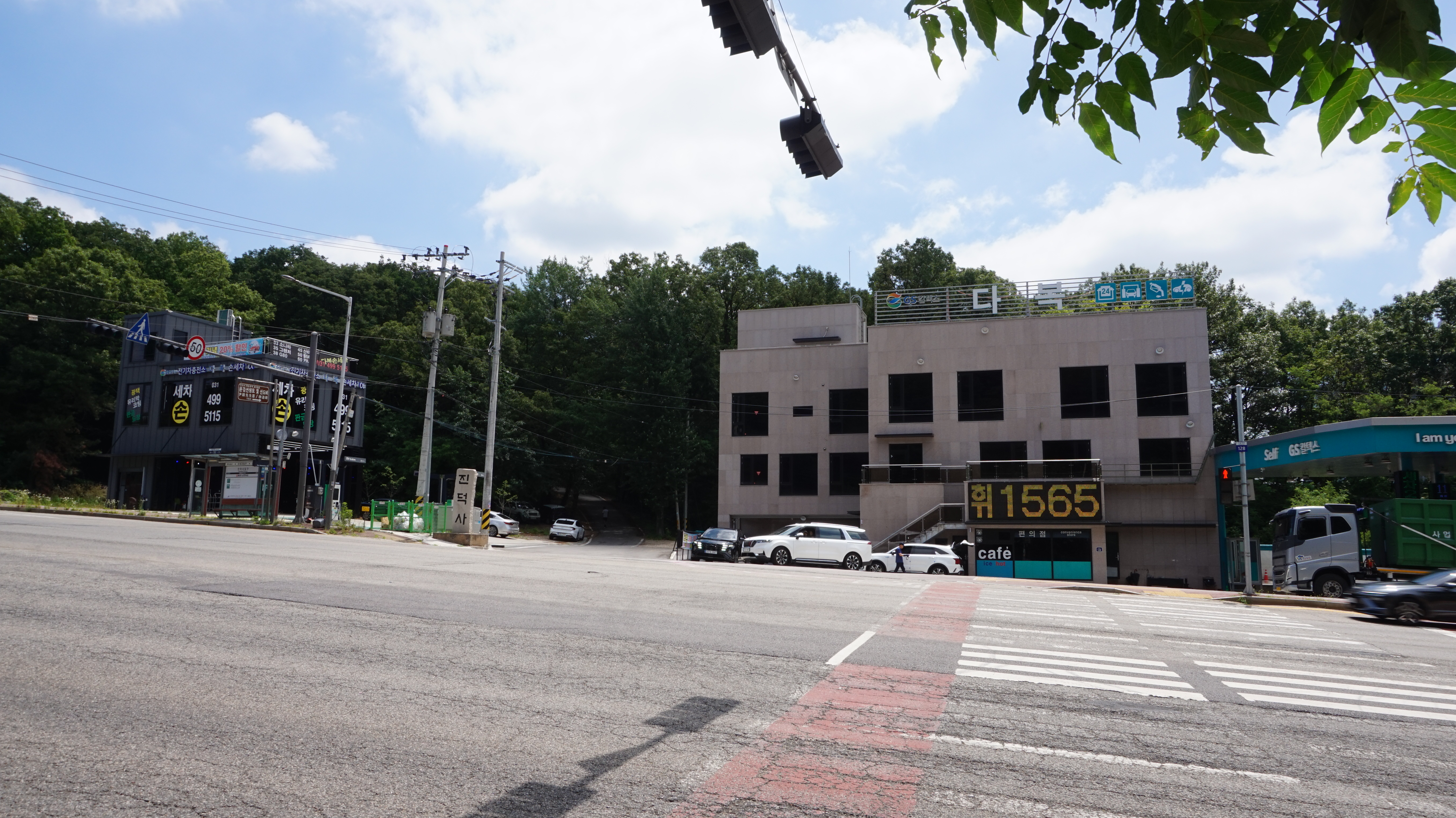 보행자용 신호버턴 눌려야 신호가 들어옵니다 / 그 바람에 한참을 멍청히 서 있었고 길건너 진덕사 방향으로 갑니다