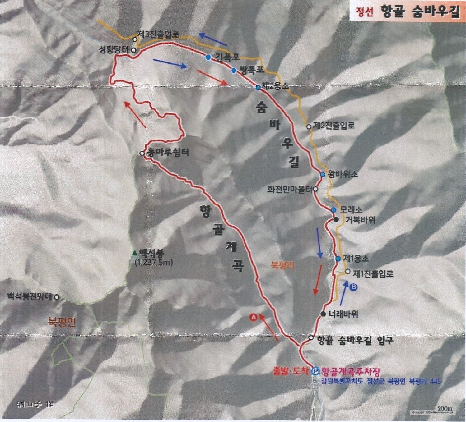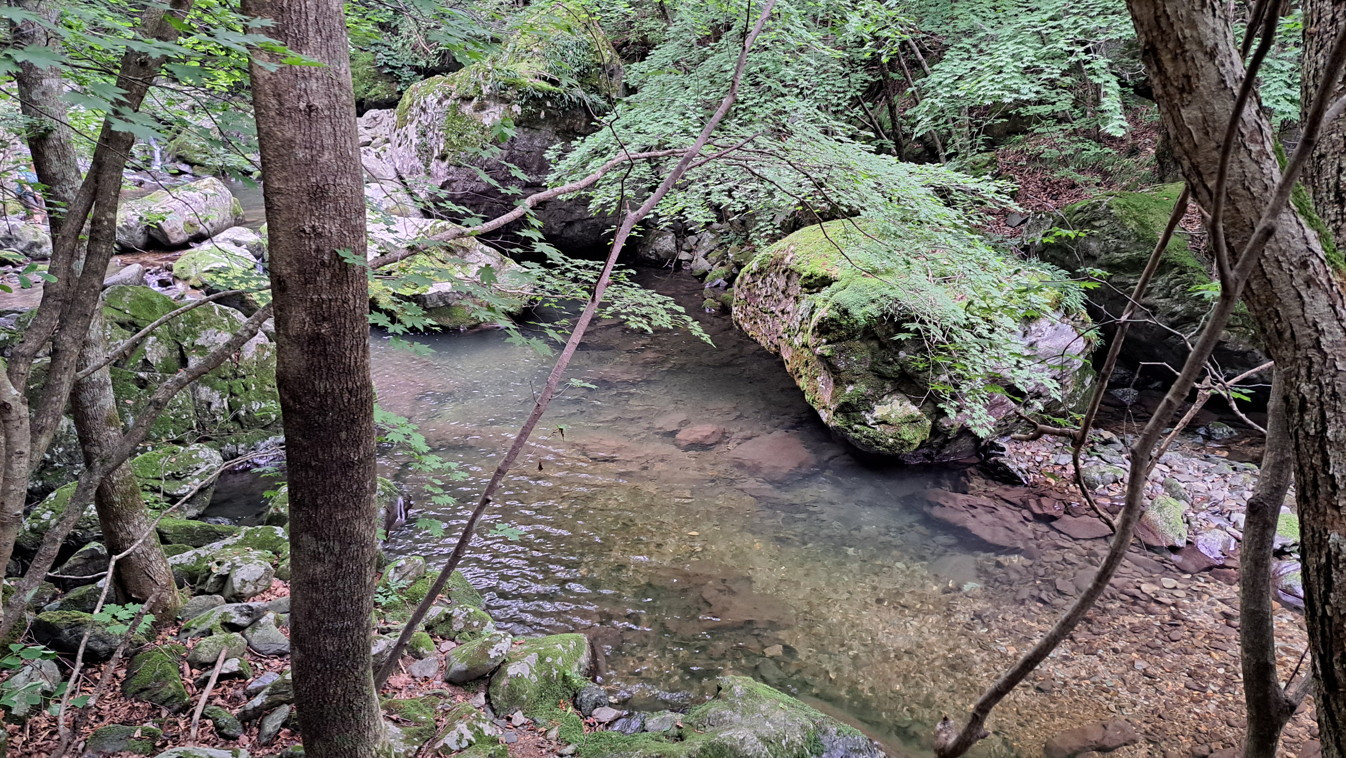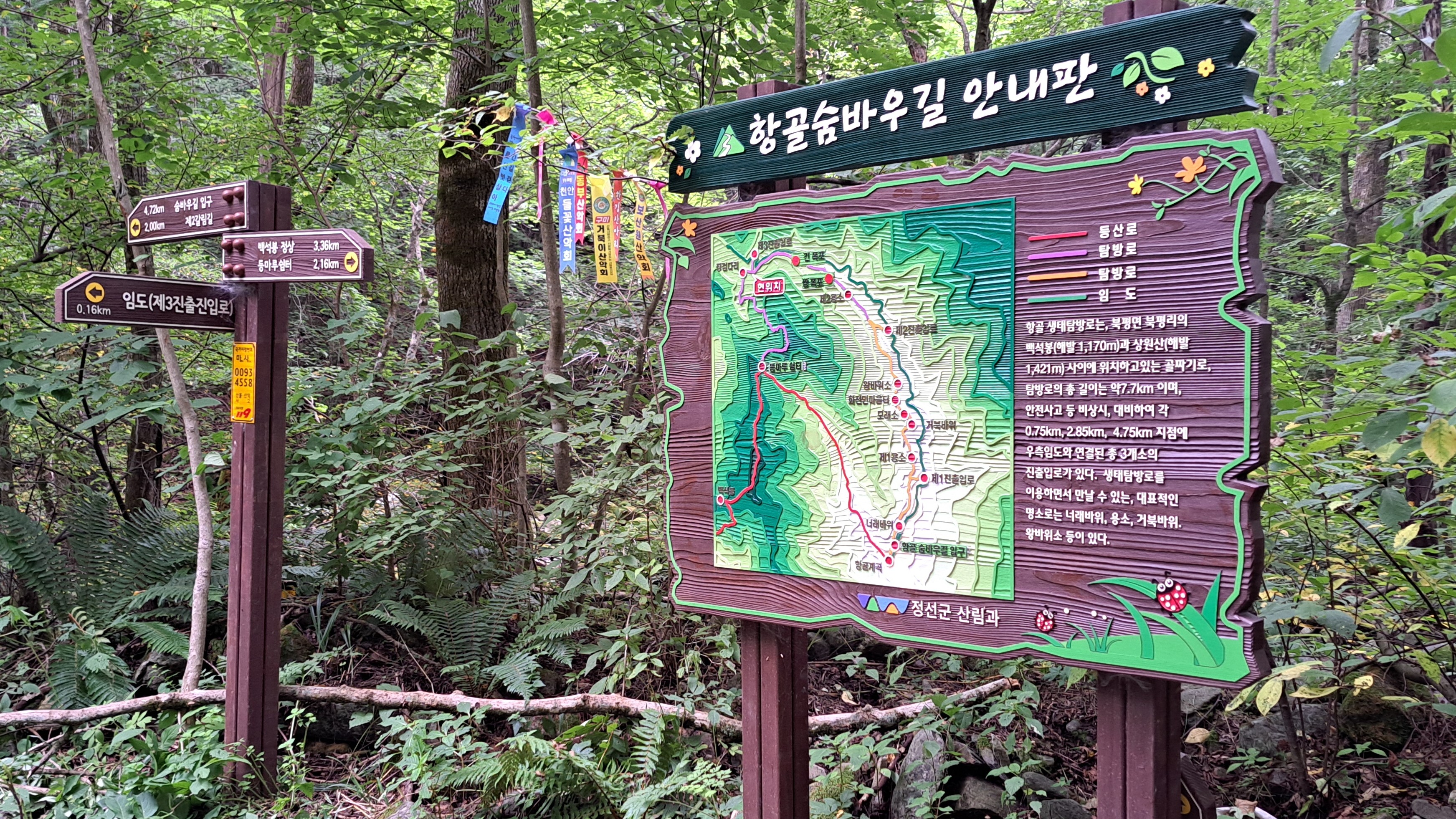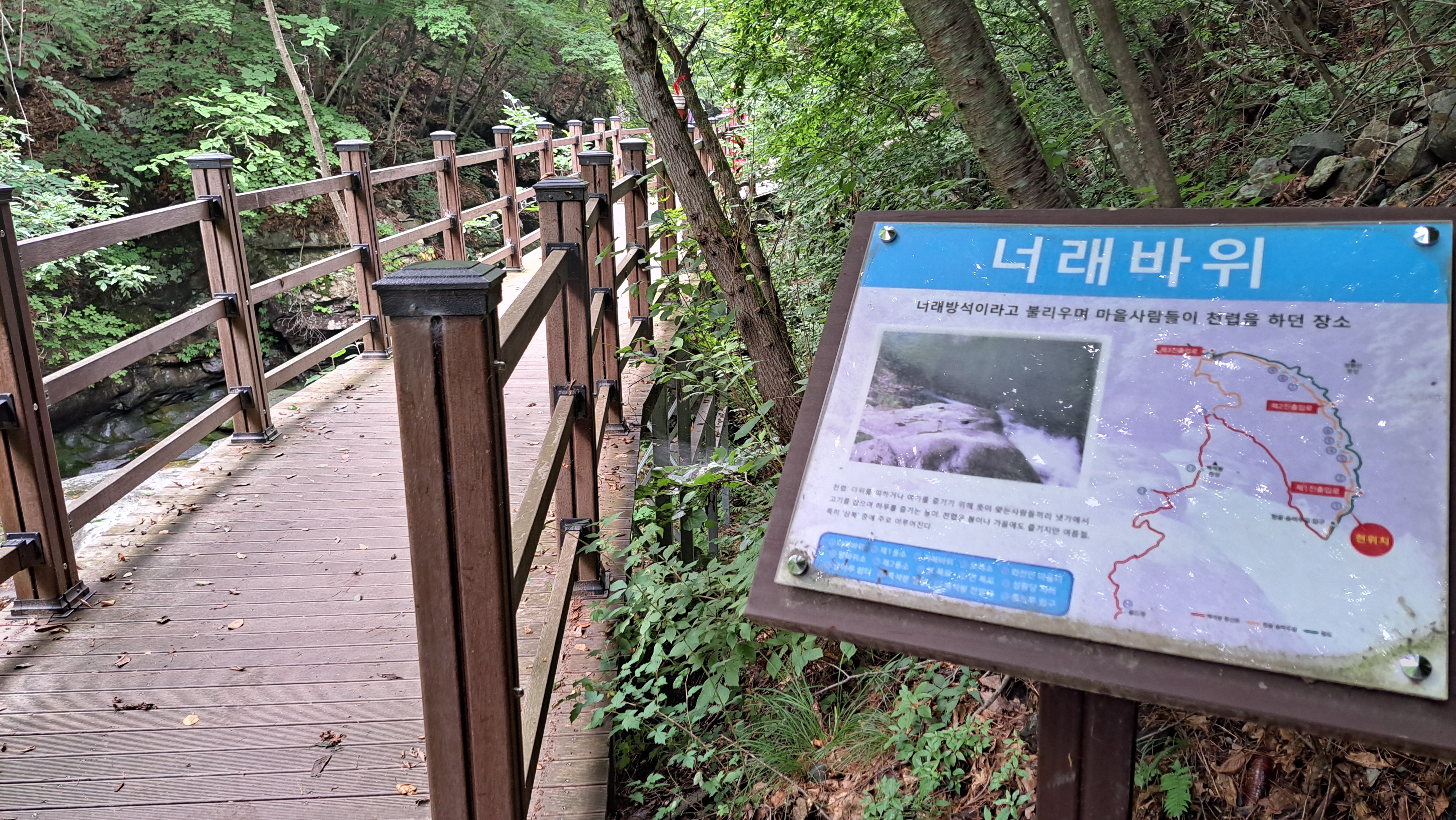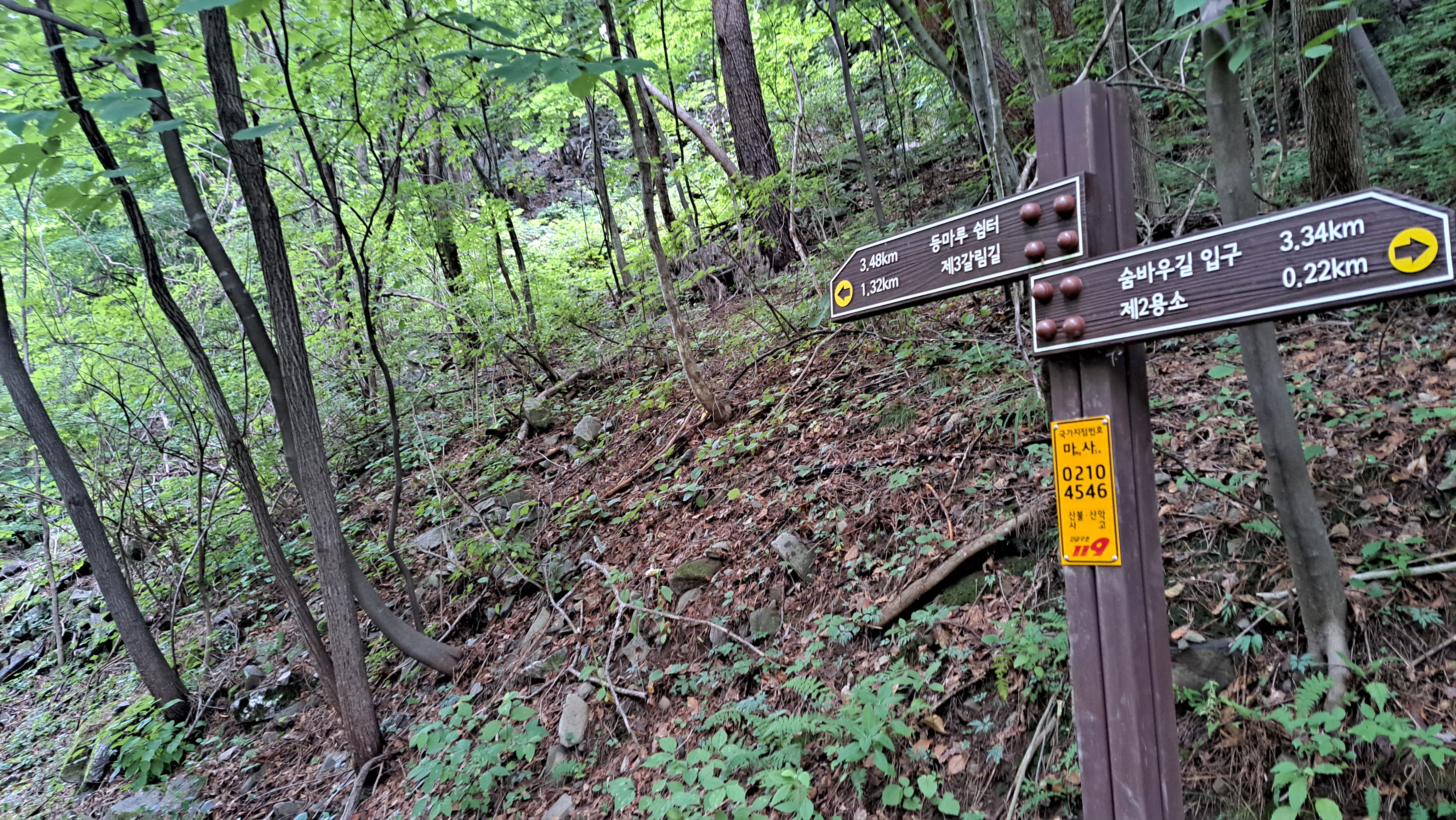 산행코스 : 항골계곡 주차장 - 너래바위 - 제1용소 - 거북바위 - 모래소 - 왕바위소 - 제2용소 - 쌍폭포 - 긴폭포 - 삼거리 - 제2진출로 임도(왕복) - 등마루쉼터 1.62키로전(왕복) - 항골계곡 주차장 (원점회귀, 왕복 13.5키로)