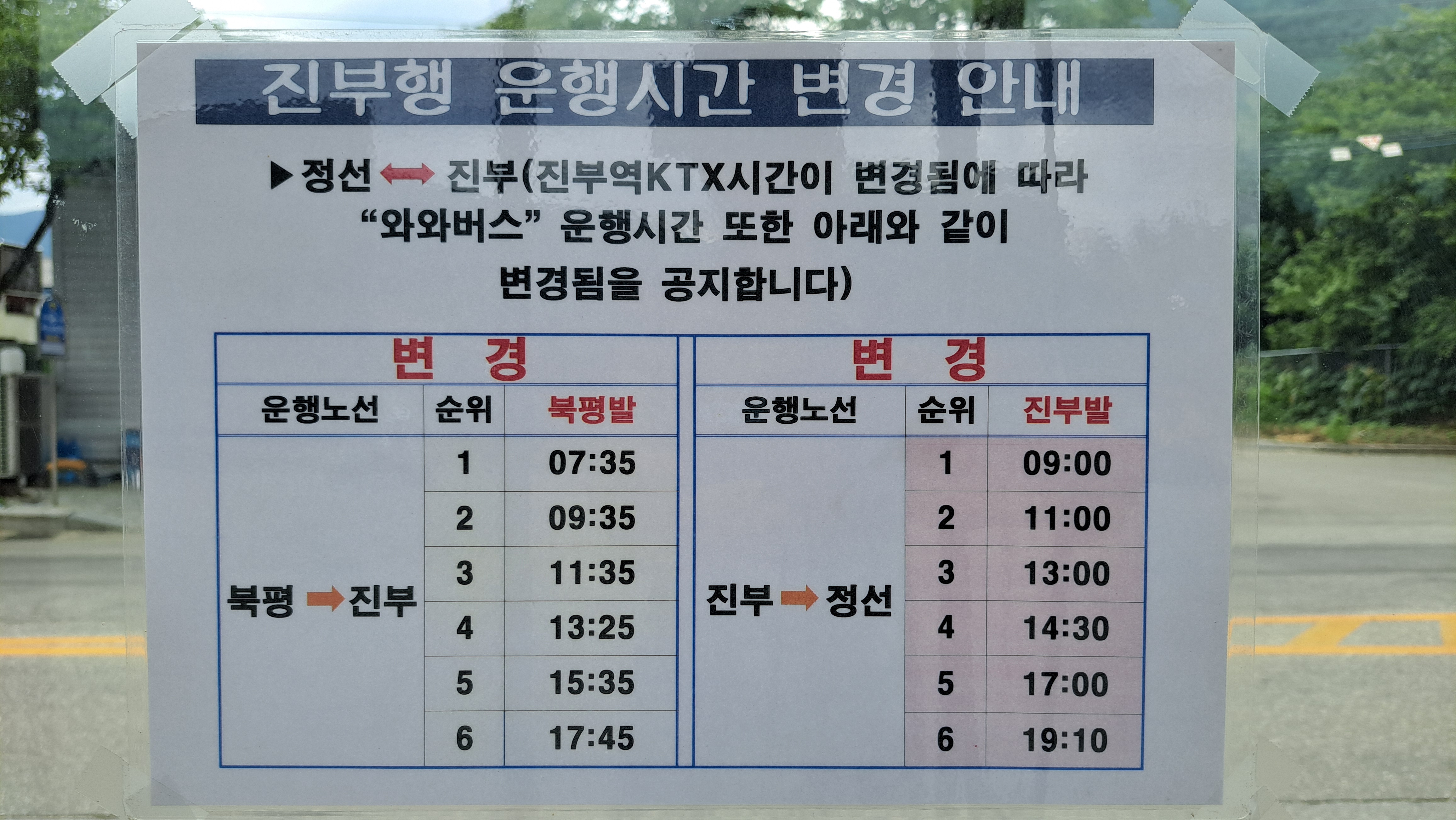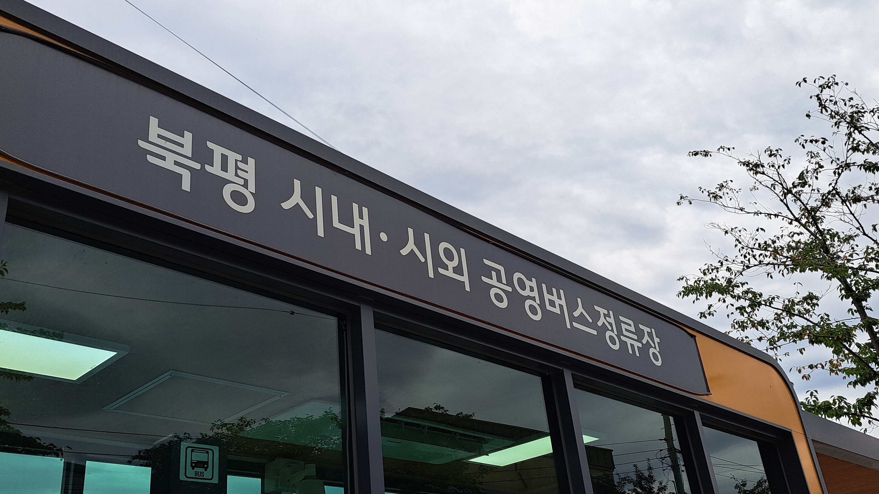 트래킹후 산악회버스로 10분쯤 이동한 북평면 버스정류장(16:00) / 이 동네에서 1시간 식사시간 갖고 서울로 올라갑니다