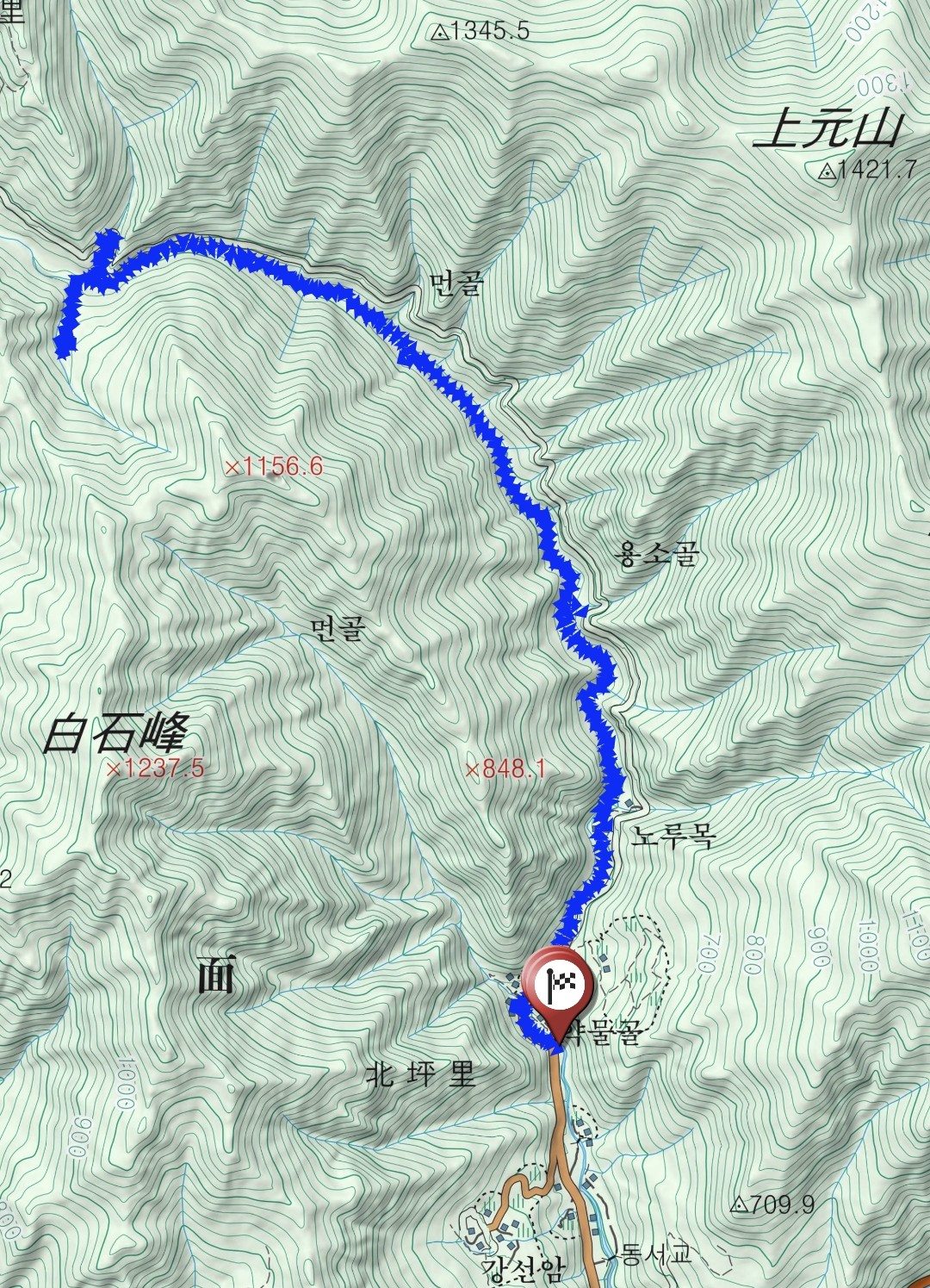 등마루쉼터 1.62키로전, 이쯤에서 돌아가고(해발 890미터)