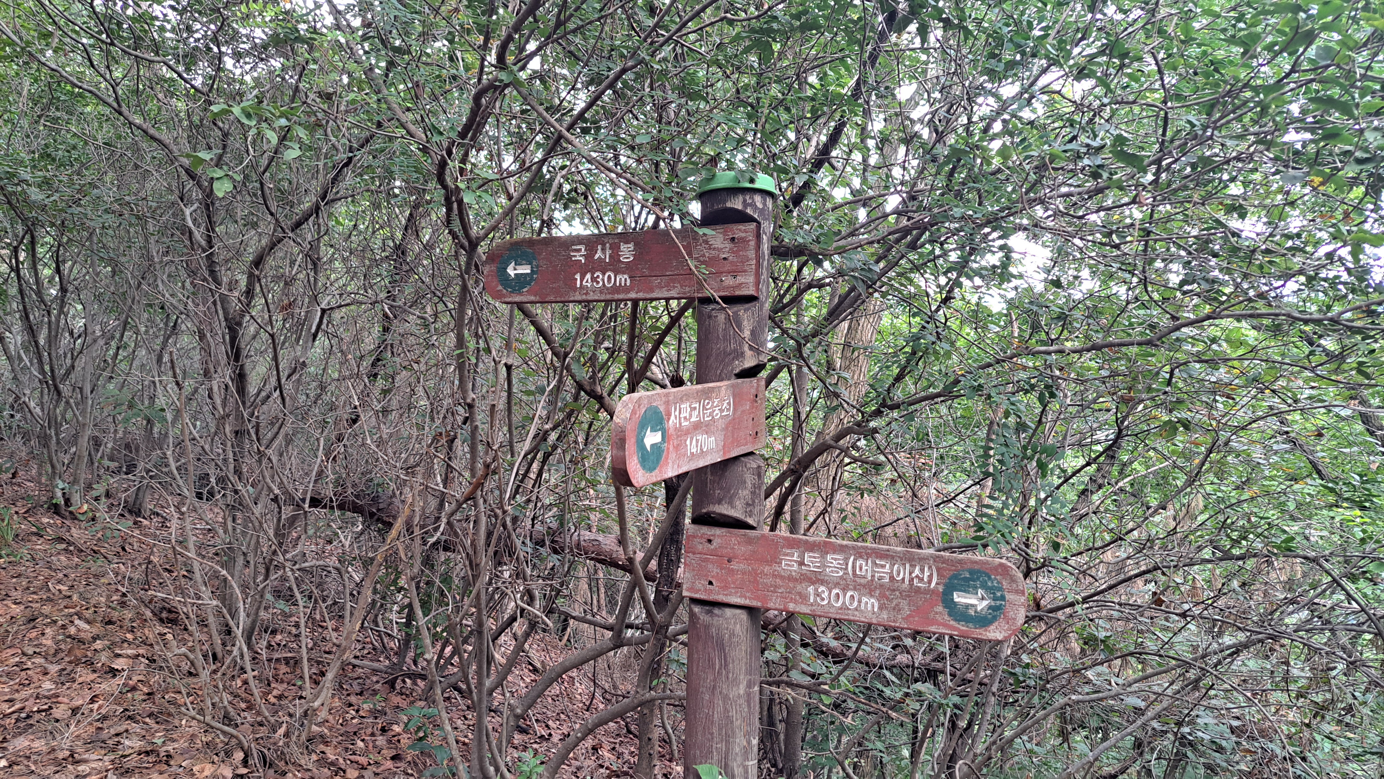 머금이산에서 금토동 갈림길로 돌아와 국사봉방향으로 15미터쯤 진행해 좌측으로 갑니다