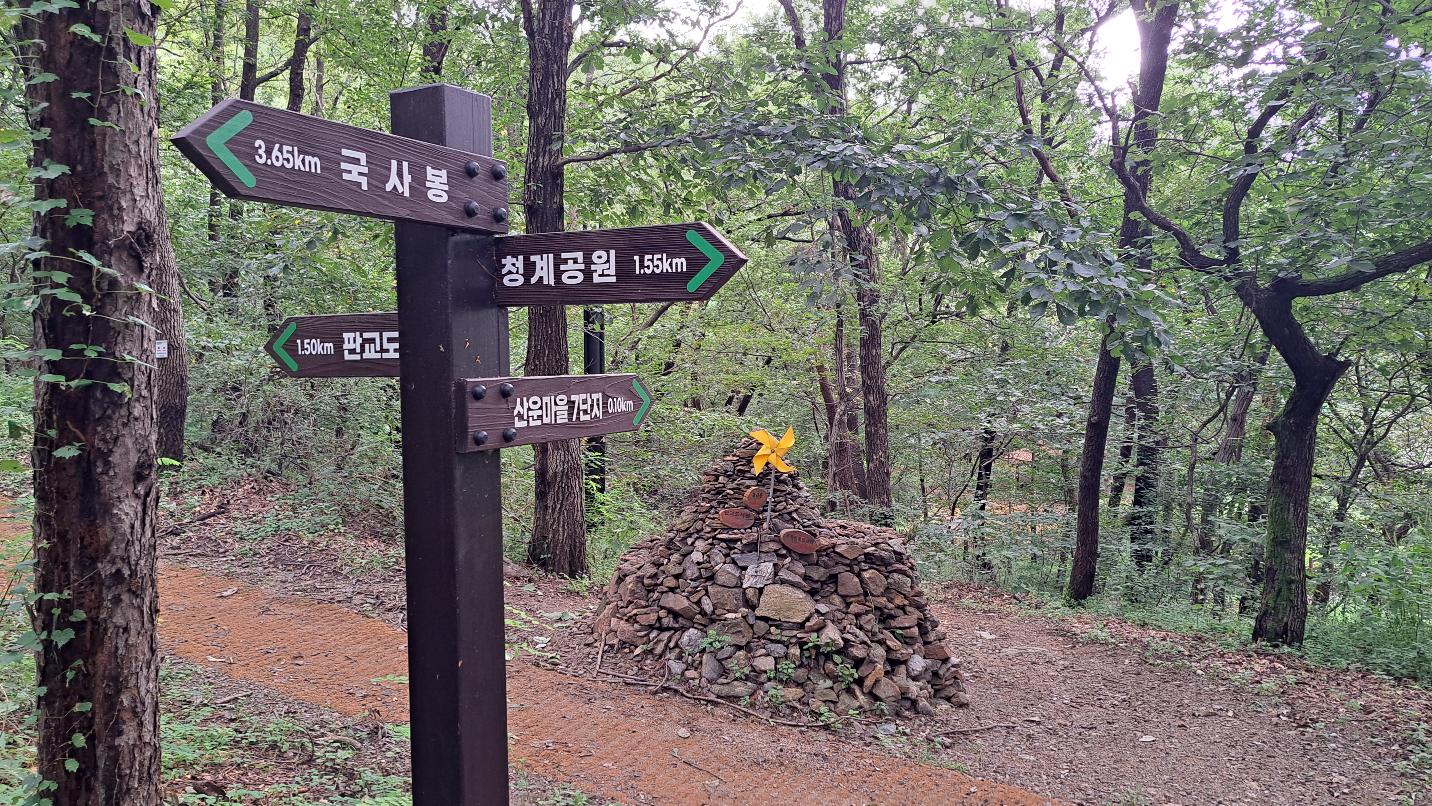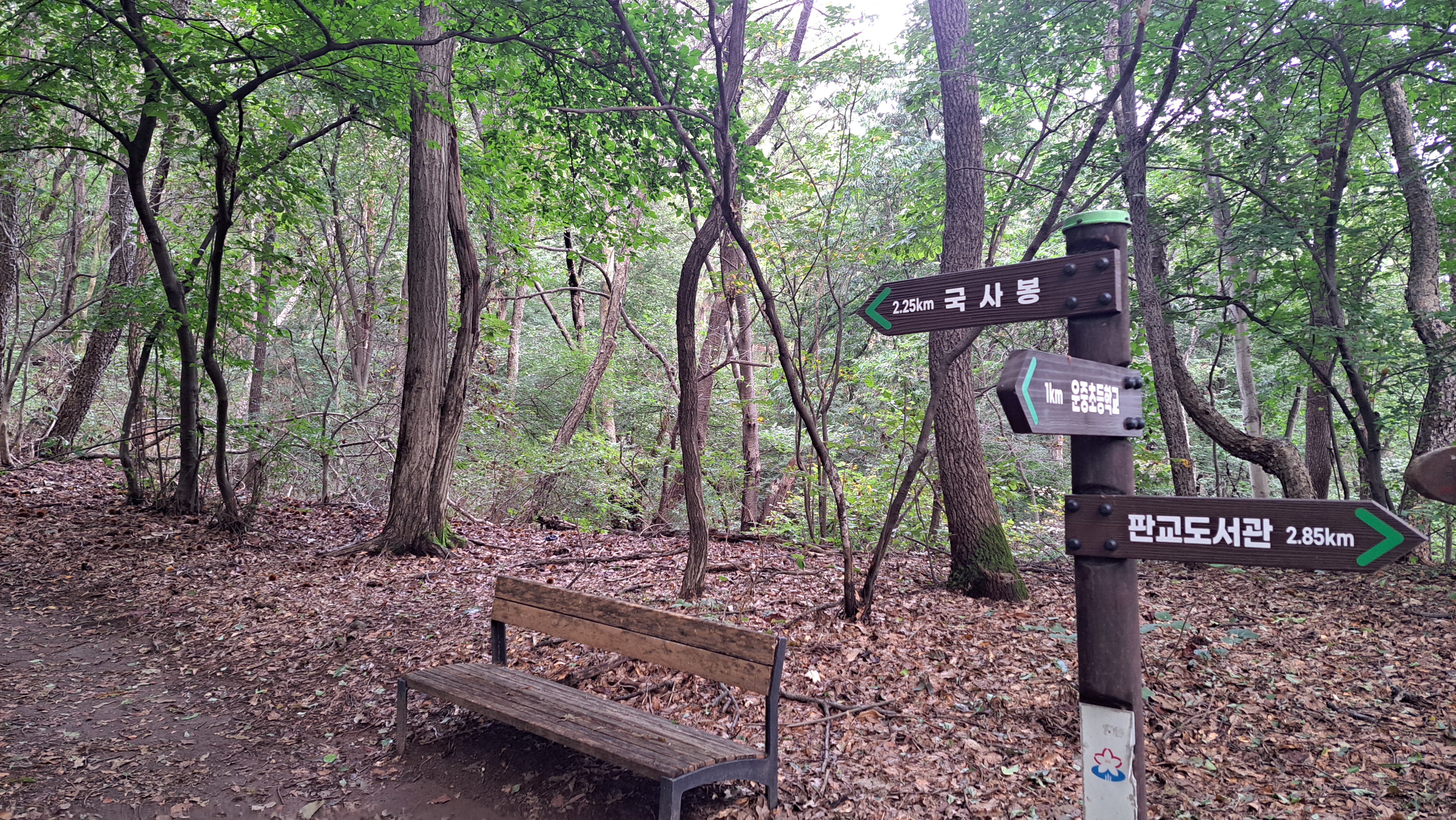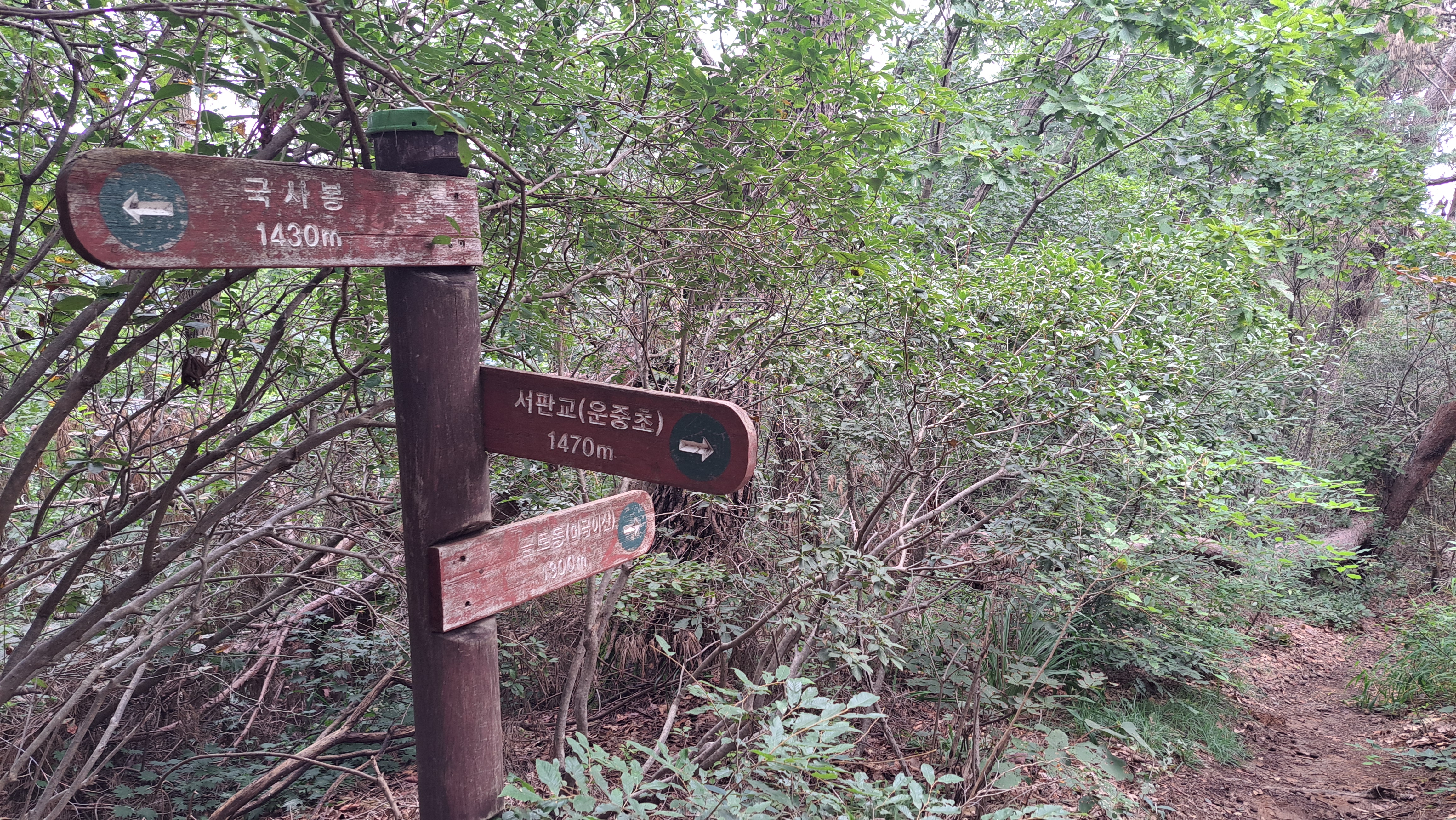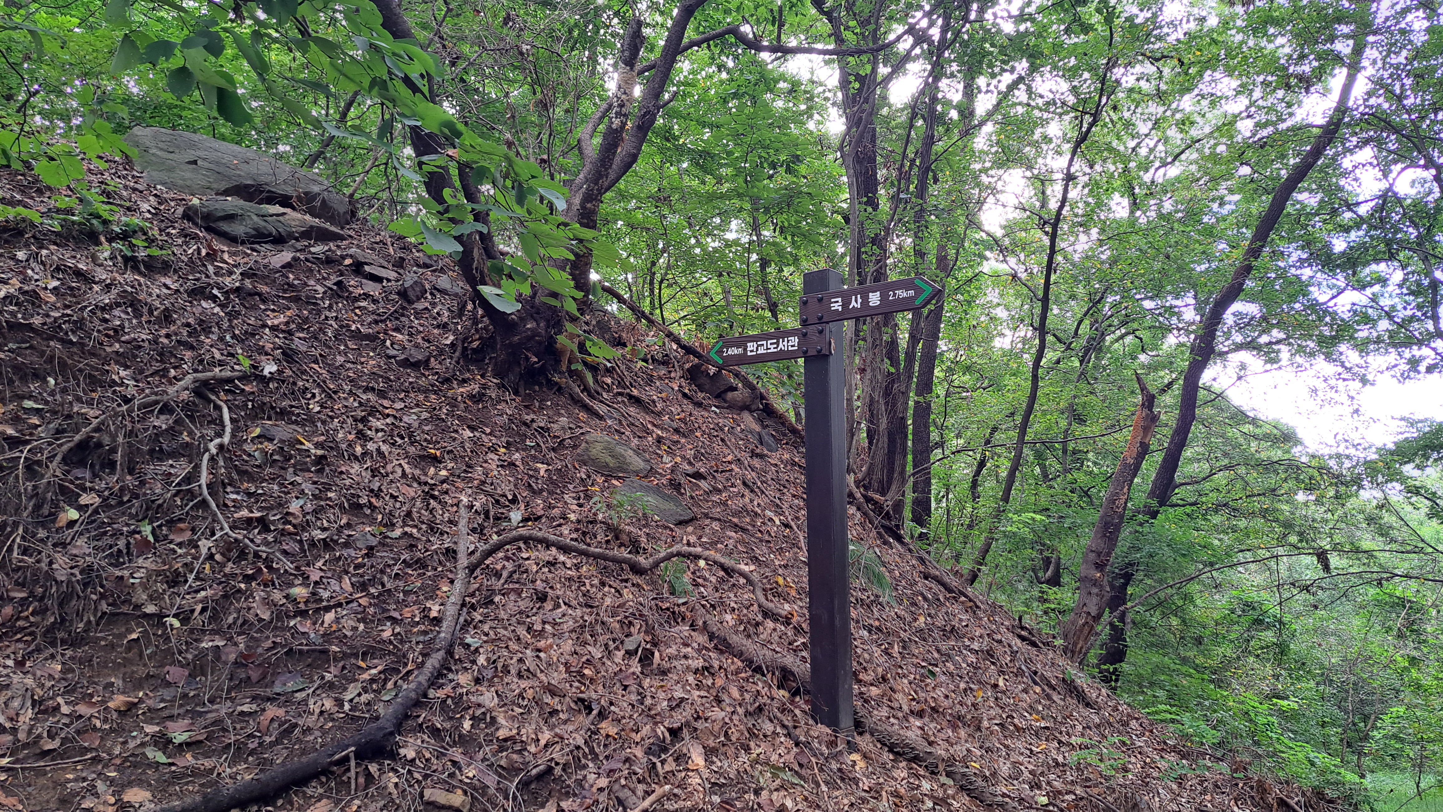 우측으로 올라가면 아까 갔던 국사봉 주능선길을 만날테고 좌측으로 갑니다