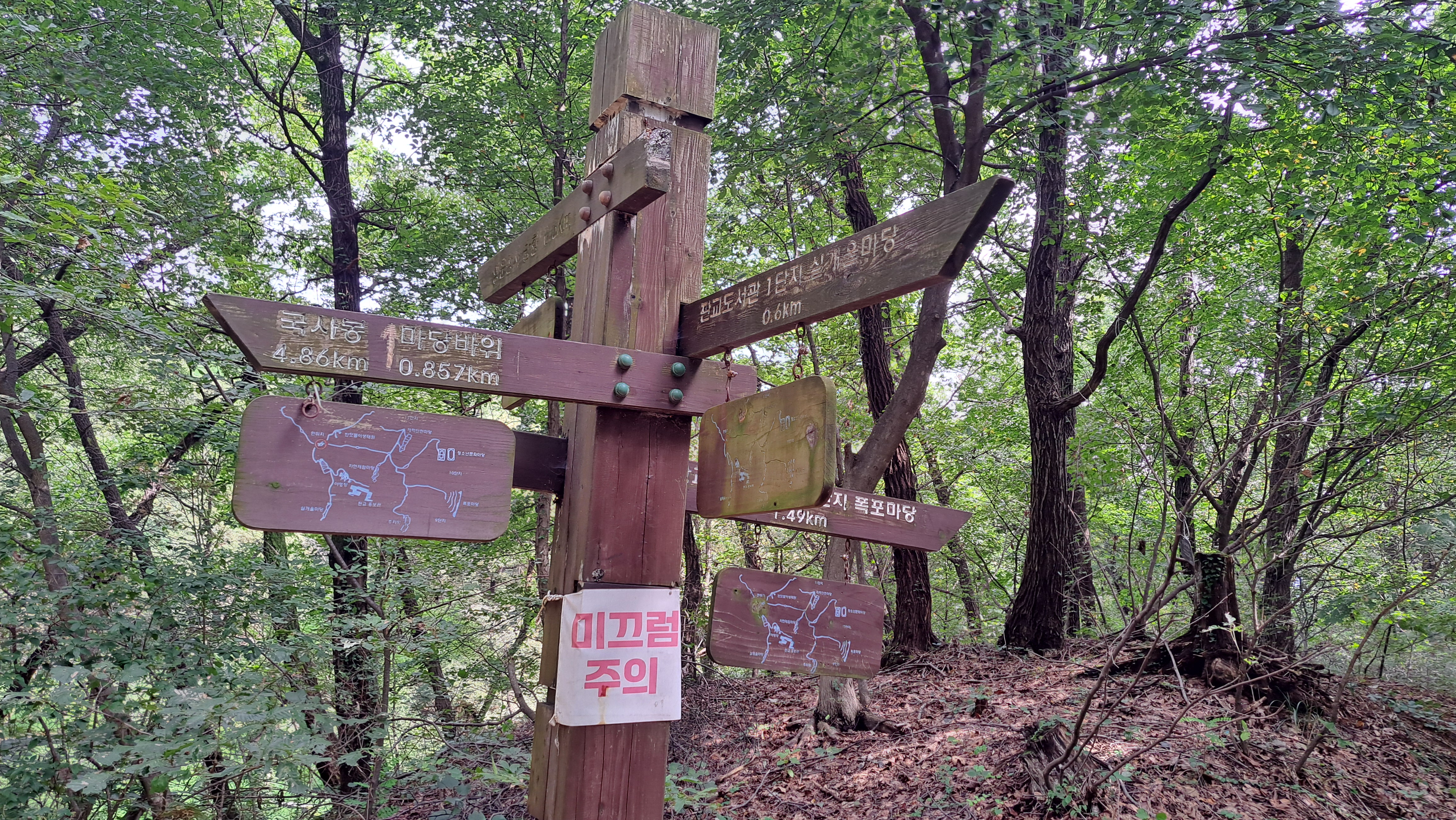 국사봉 주능선 삼거리로 다시 돌아와서 머금이산 방향으로 갑니다 (08:35)