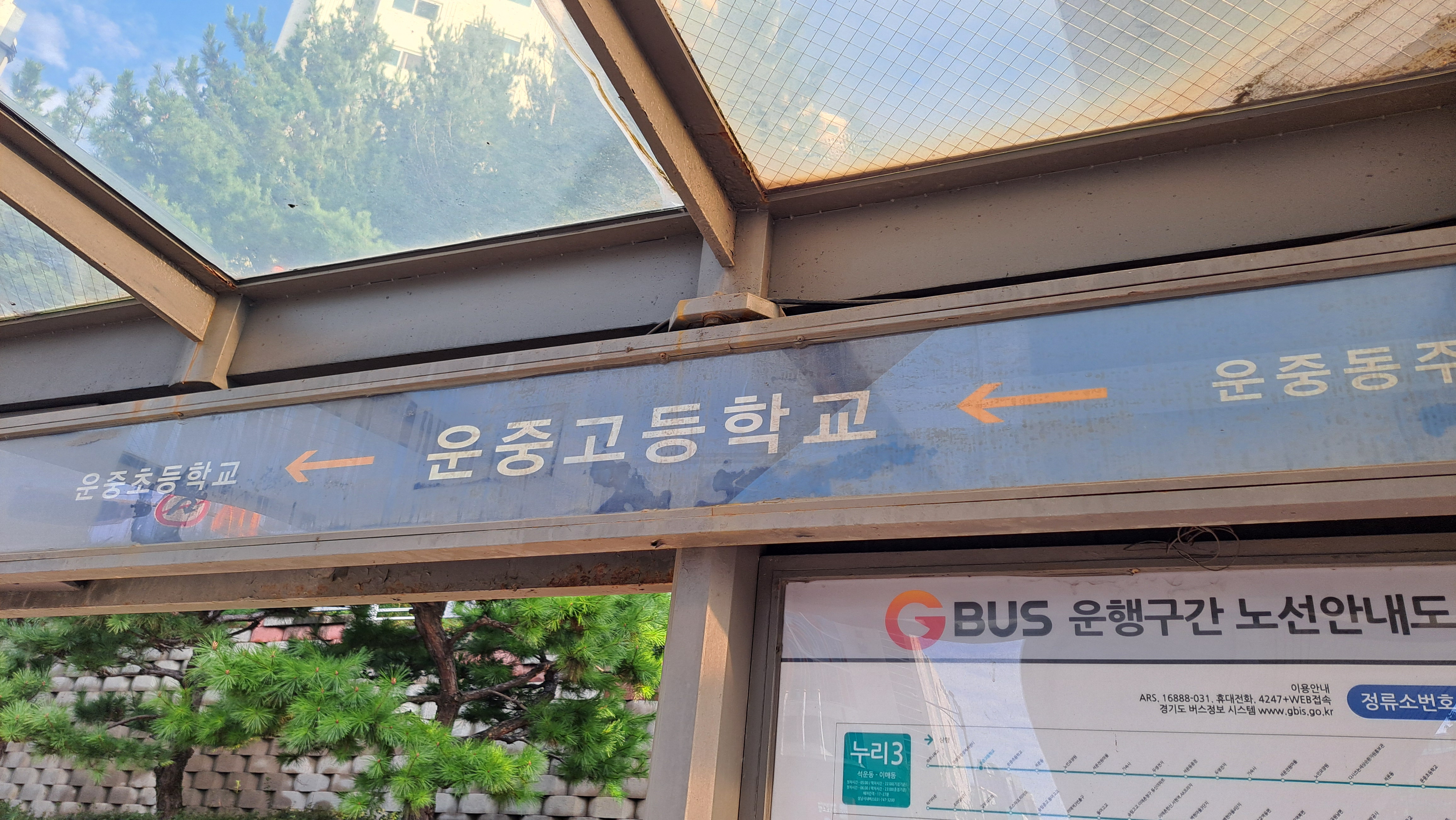 매헌 시민의숲 정류장에서 9004번 버스로 약 20분만에 도착한 운중고등학교 정류장 입니다 (07:20)